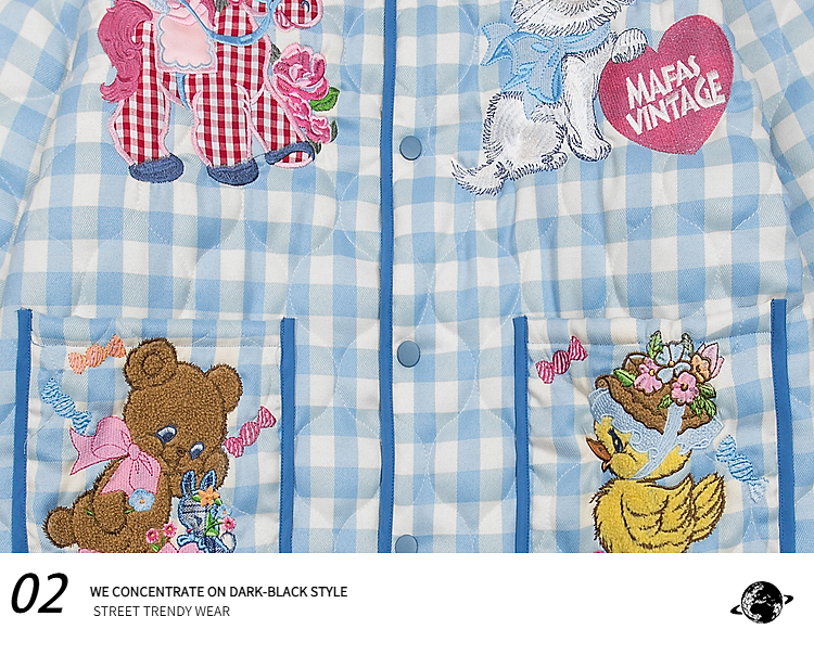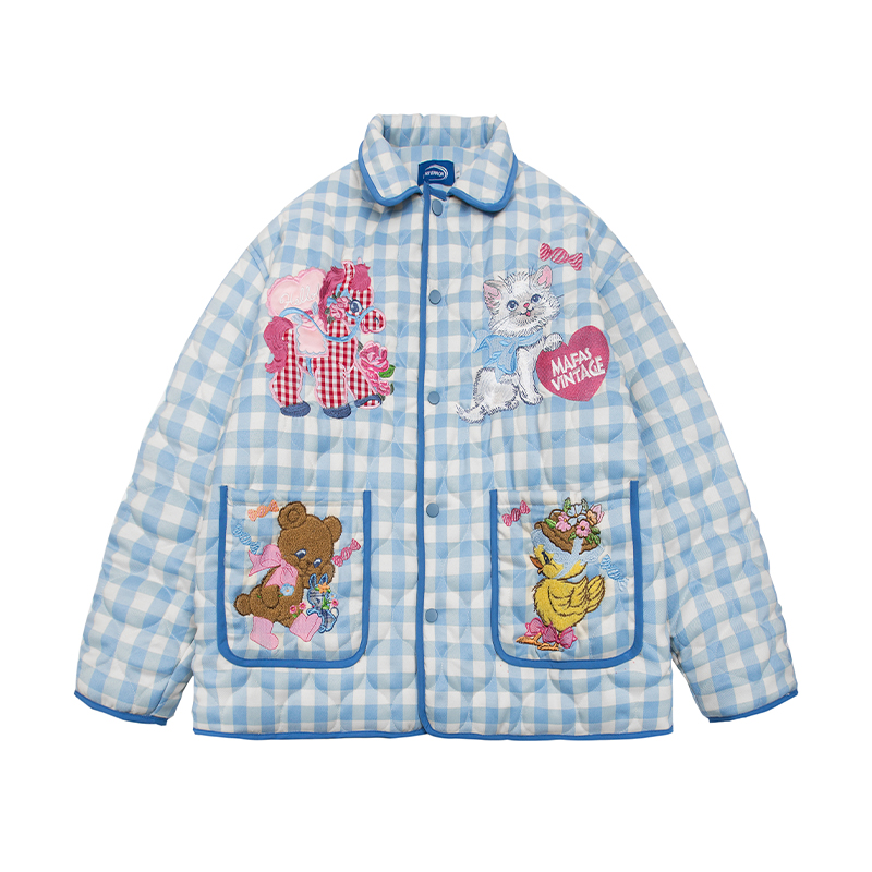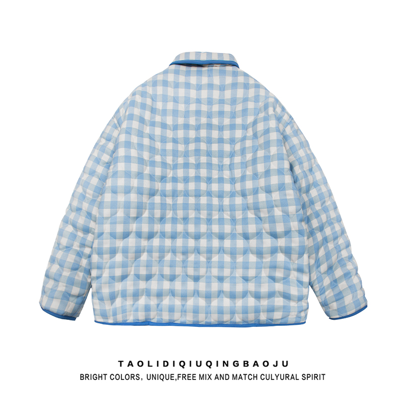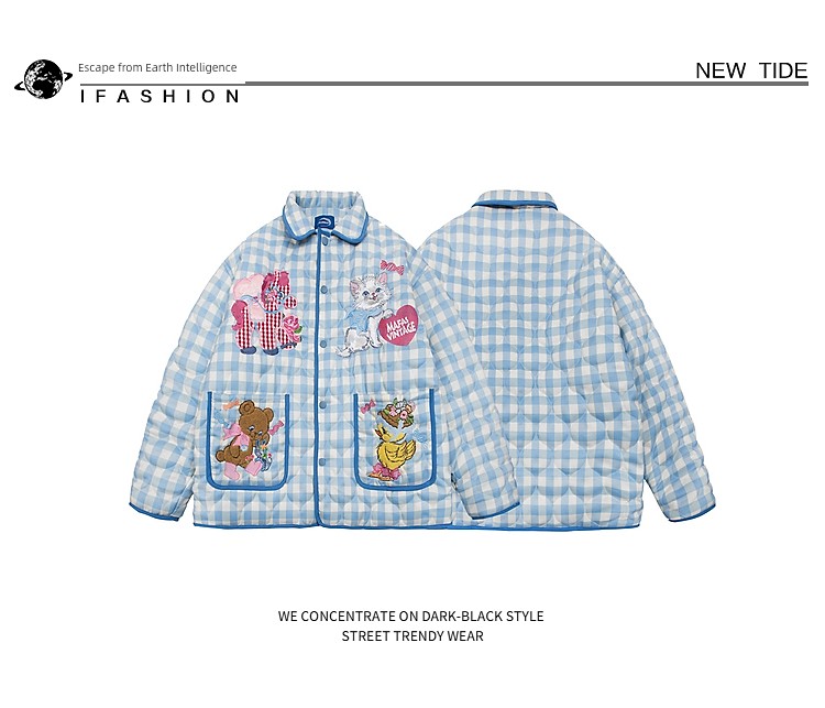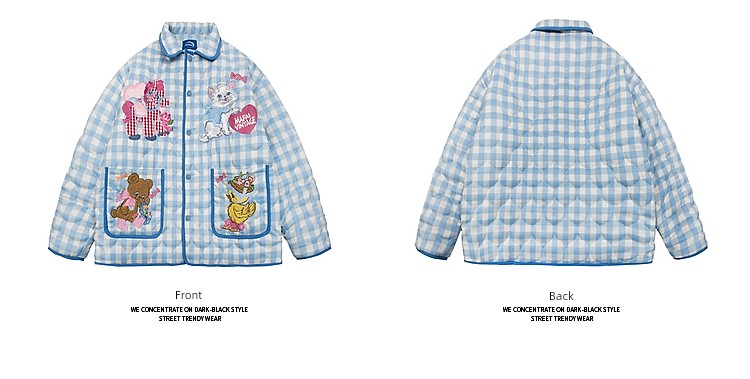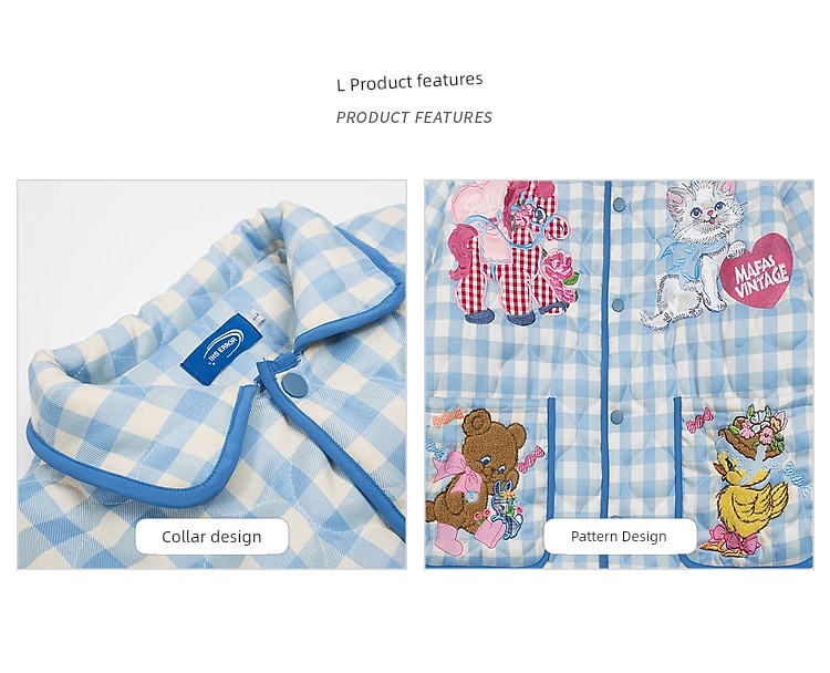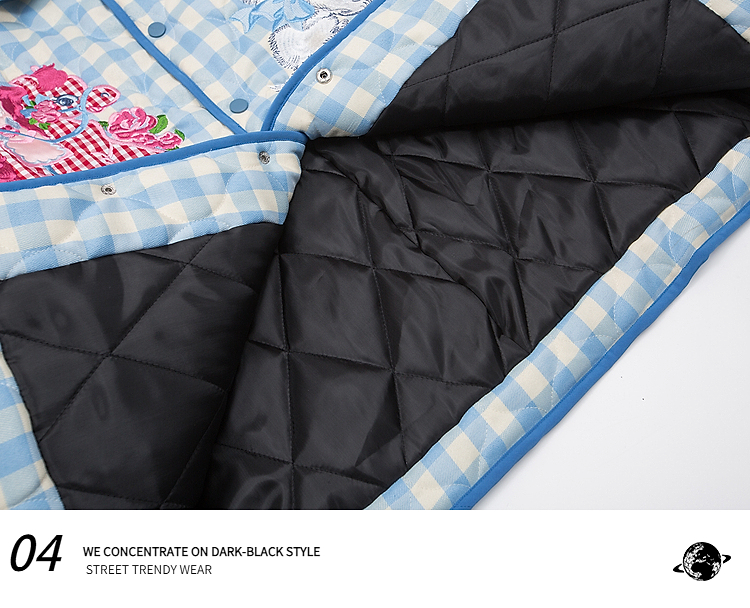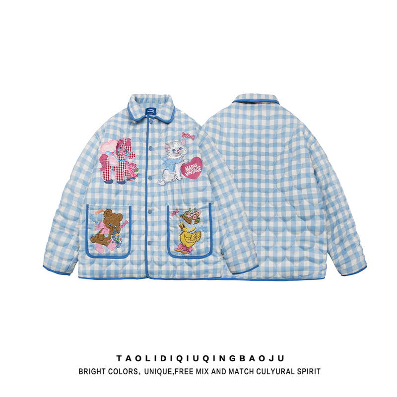 Childlike Cartoon Plaid Lapel Plaid Cotton-Padded Clothes for Women 2025 New Arrival Loose Easiest for Match Students Warm-Keeping Winter Thick Coat