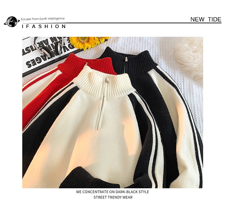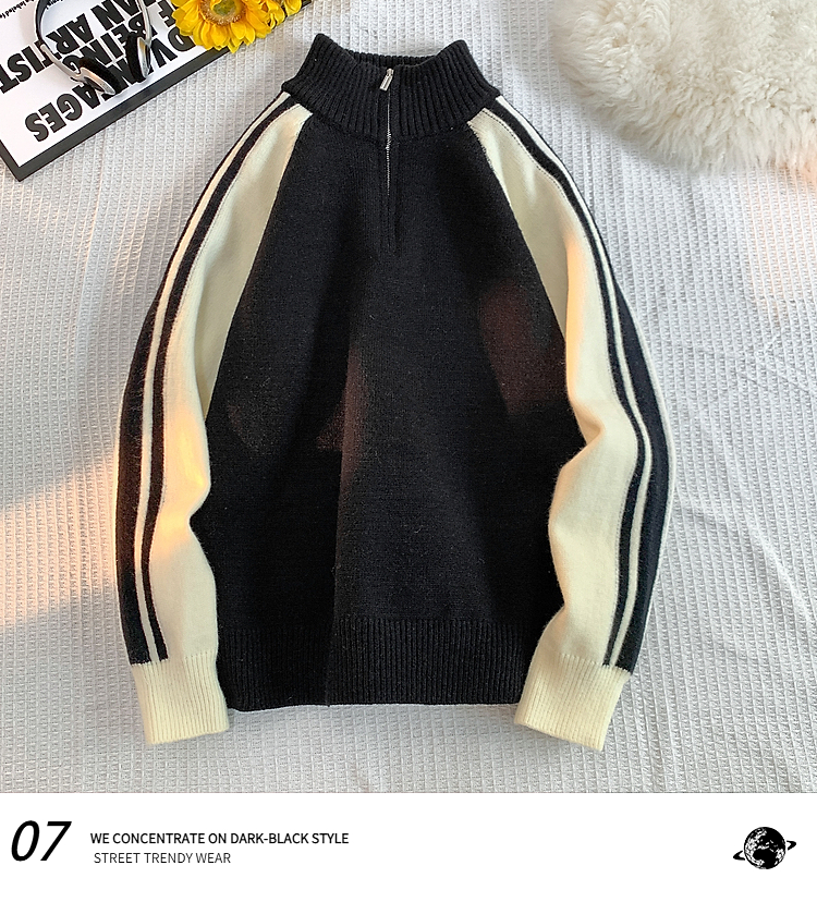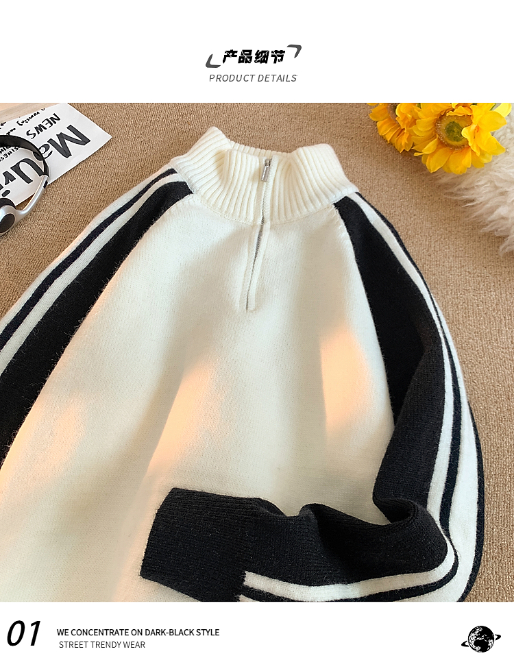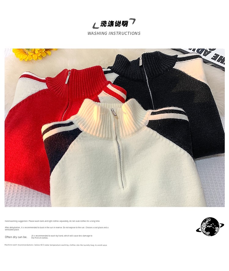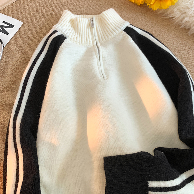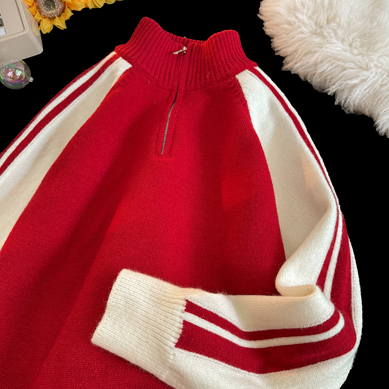 China Trendy Contrast Color Half Zipped Stand Collar Sweater Female 2025 Winter Loose Lovers Wild Comfortable Knitwear Tops