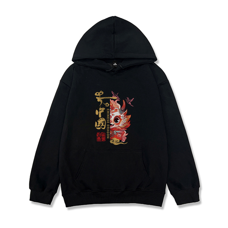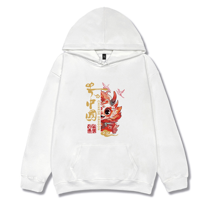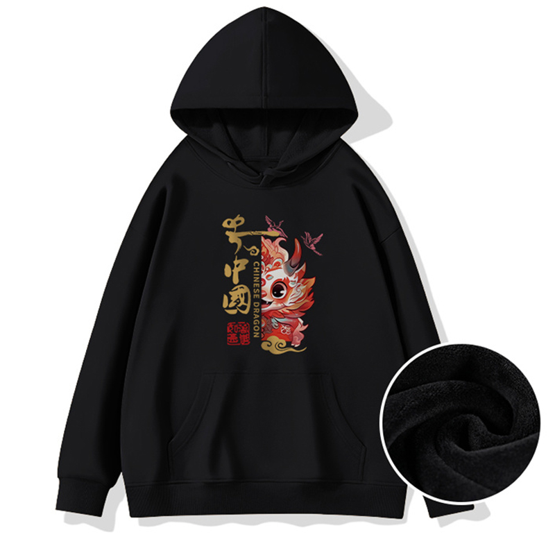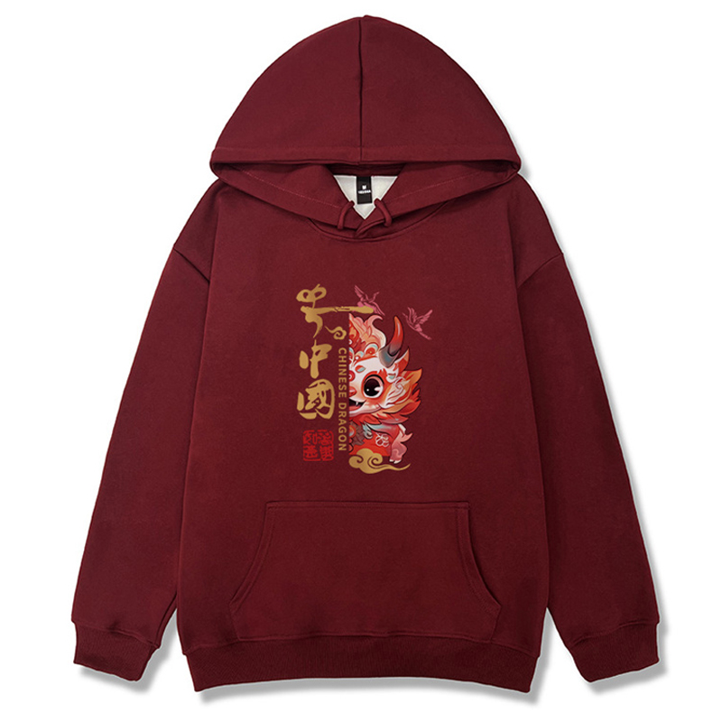 Chinese Fad Couple Clothes Red Sweater Women's Autumn and Winter Dragon Year Birth Year New Year New Year Celebration Hooded Fleece Padded Coat
