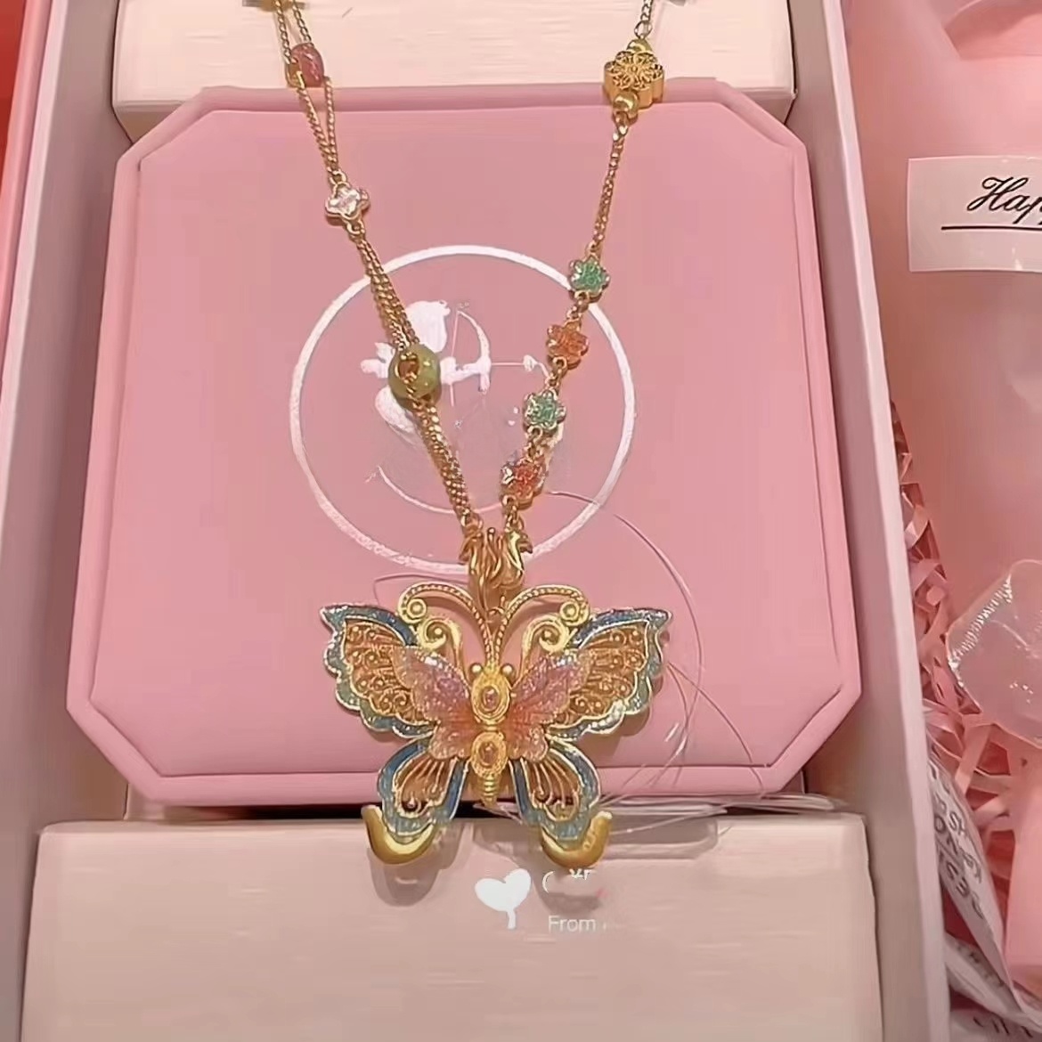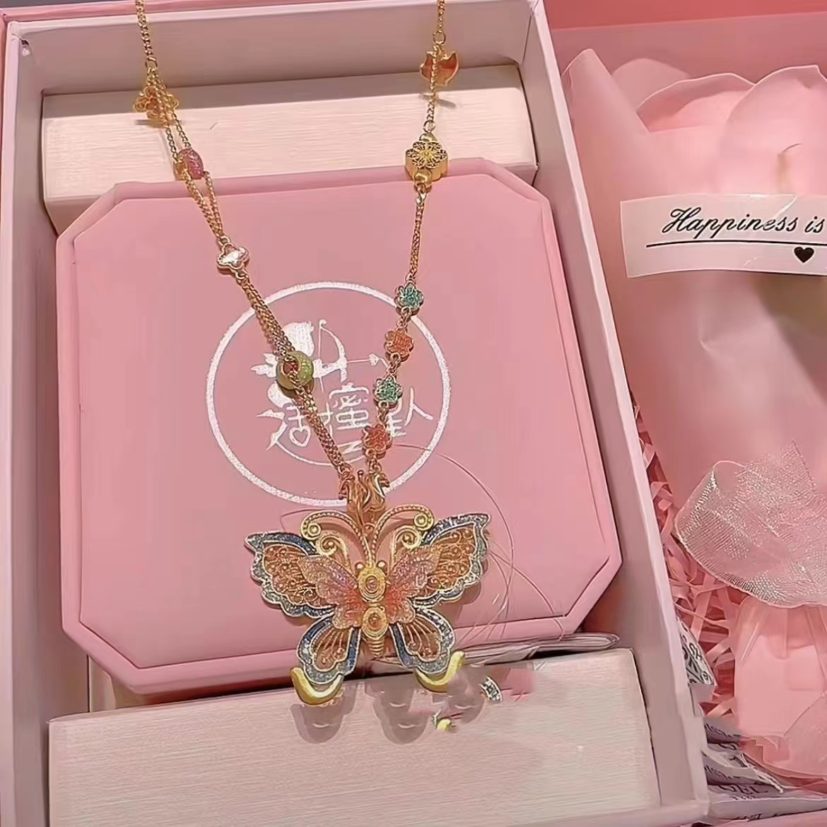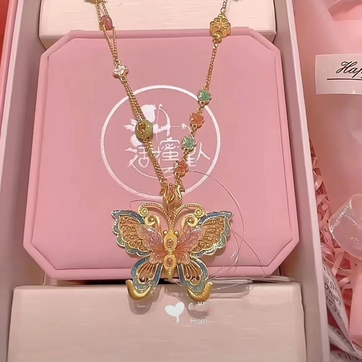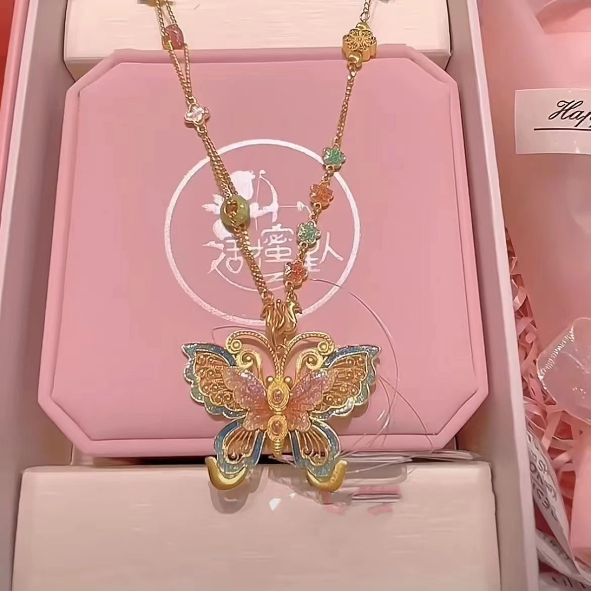Chinese Style Silk Women's Clavicle Chain Non-Collision Enamel