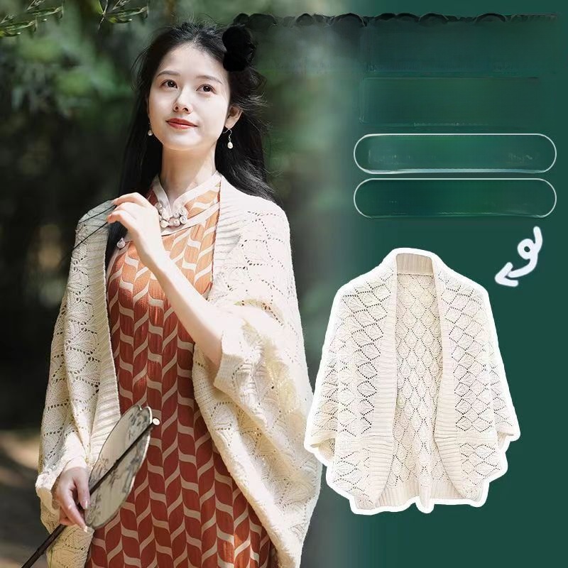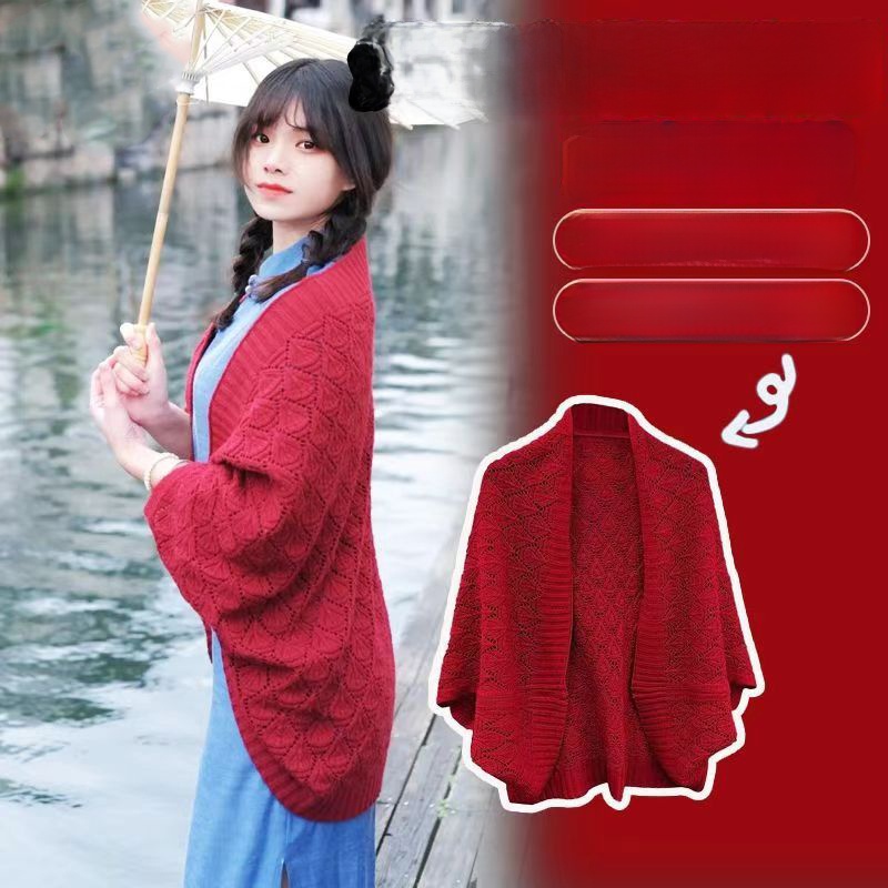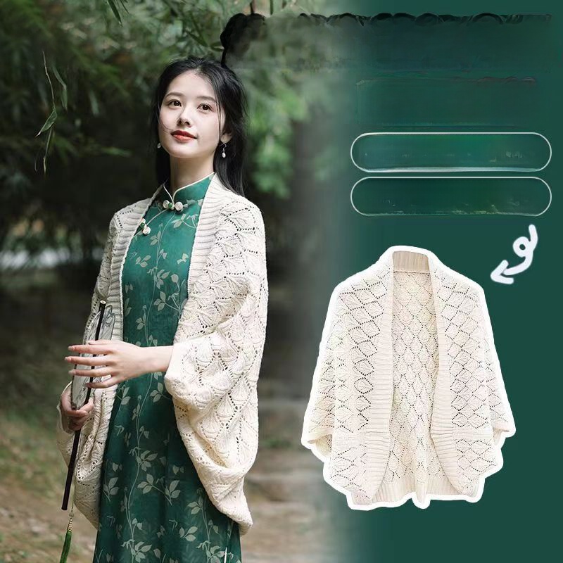 Chinese Vintage Cheongsam Shawl Outer Match Fashion Female Cut Out Knitting Artsy Spring and Autumn Coat Elegant National Style Cardigan