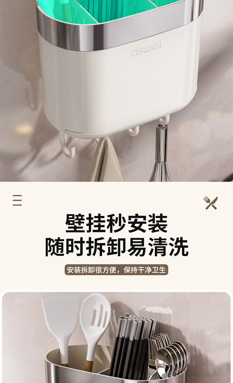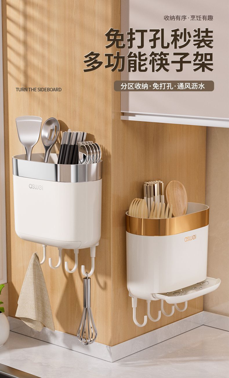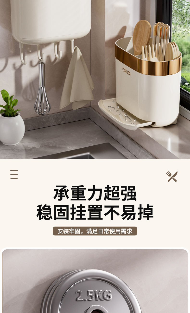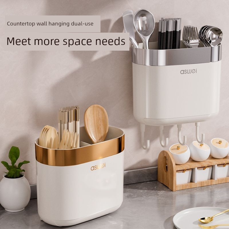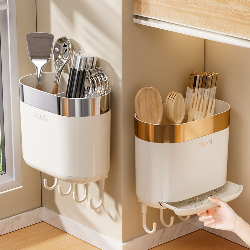 Chopsticks Storage Box Wall-Mounted Tube Kitchen Spoon Storage Rack Fast Cage Draining Gear New Arrival For Home Punch-Free