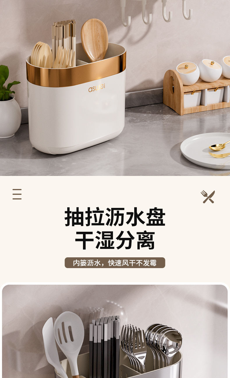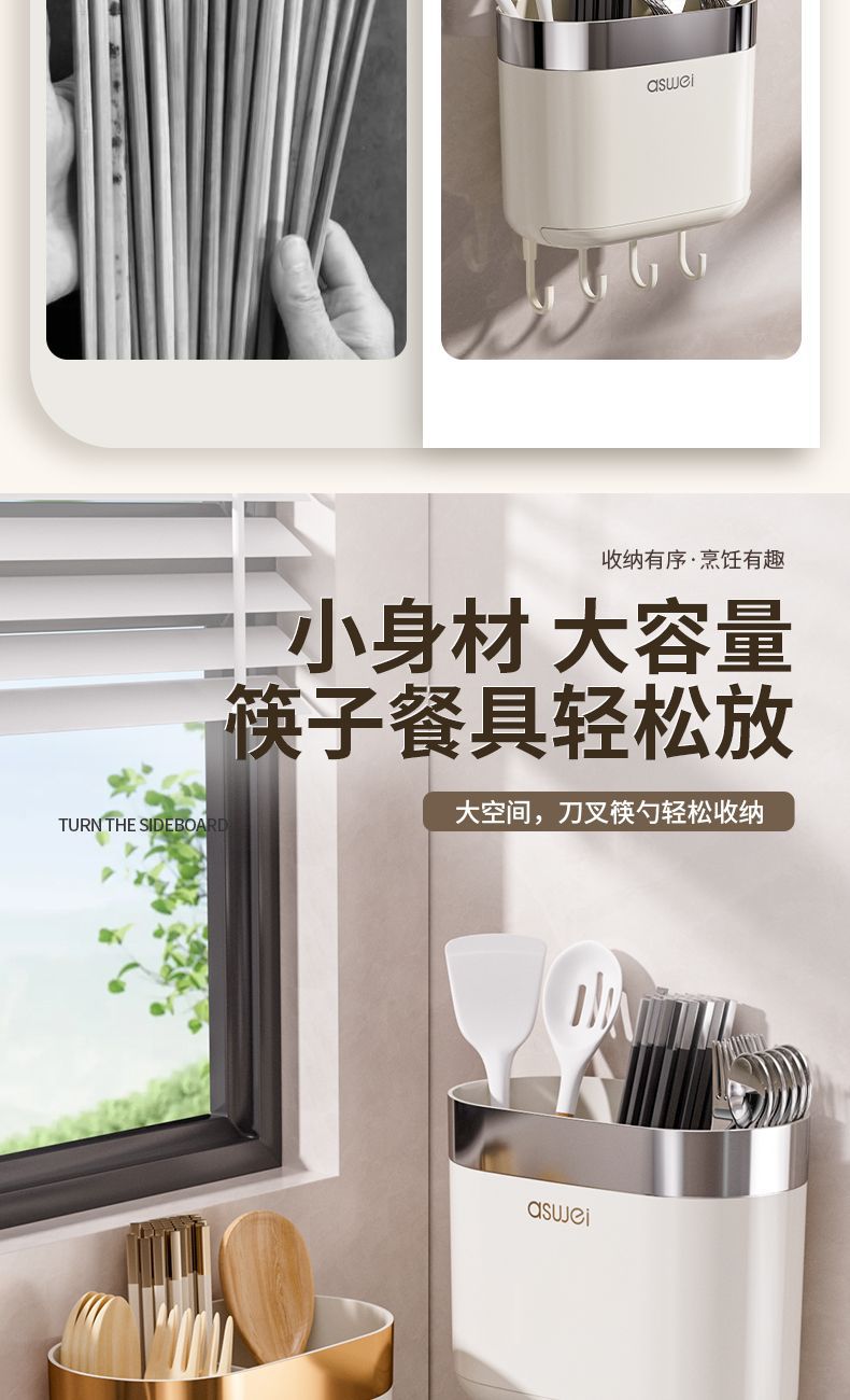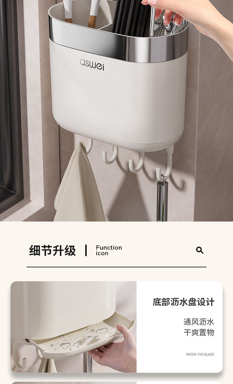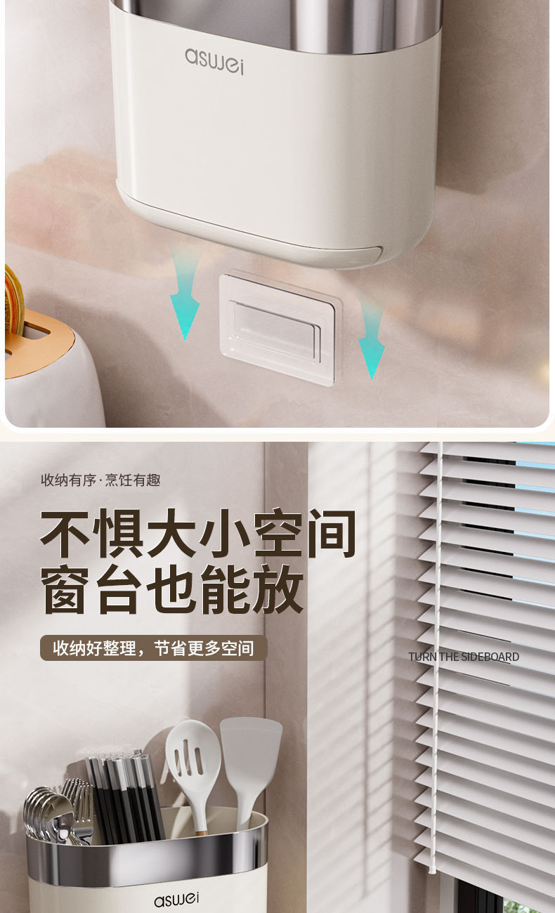 Chopsticks Storage Box Wall-Mounted Tube Kitchen Spoon Storage Rack Fast Cage Draining Gear New Arrival For Home Punch-Free