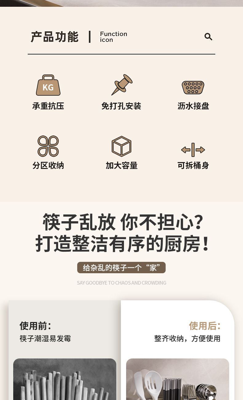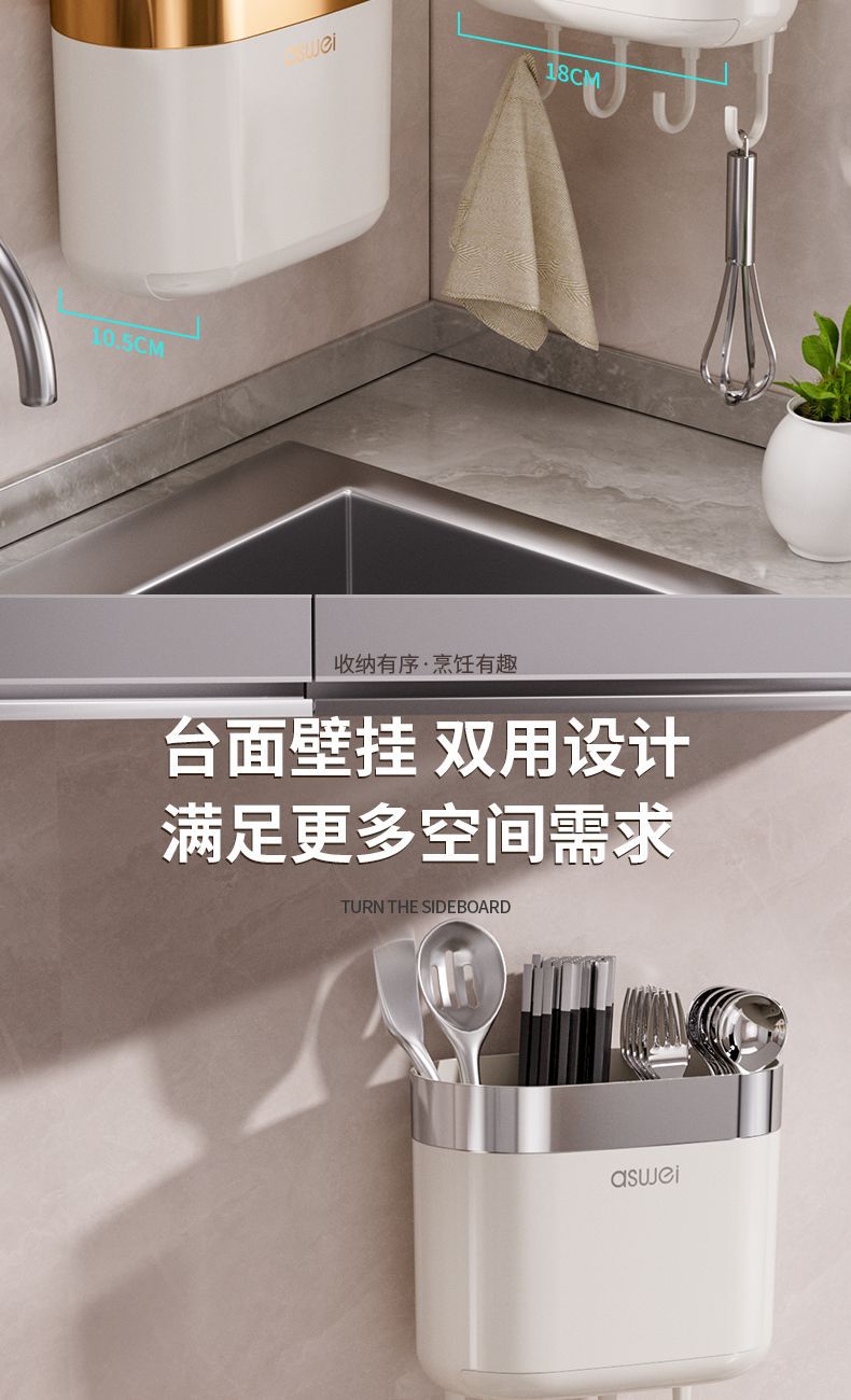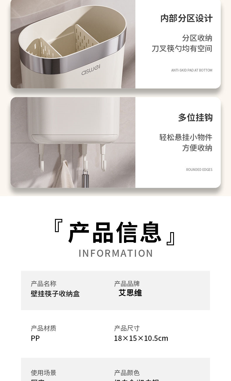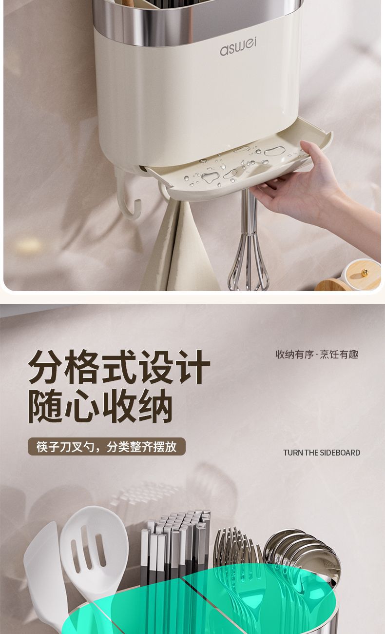Chopsticks Storage Box Wall-Mounted Tube Kitchen Spoon Storage Rack Fast Cage Draining Gear New Arrival For Home Punch-Free
