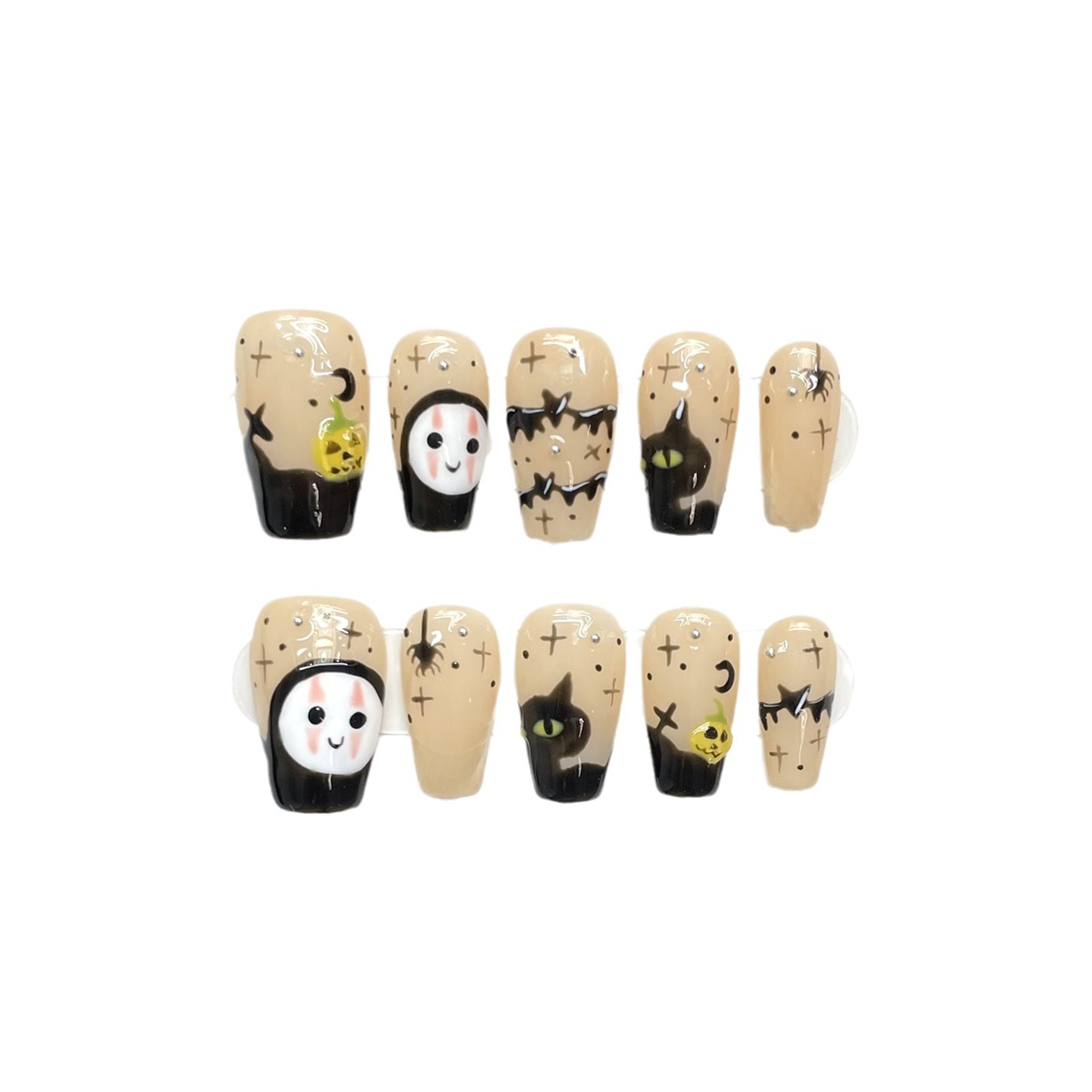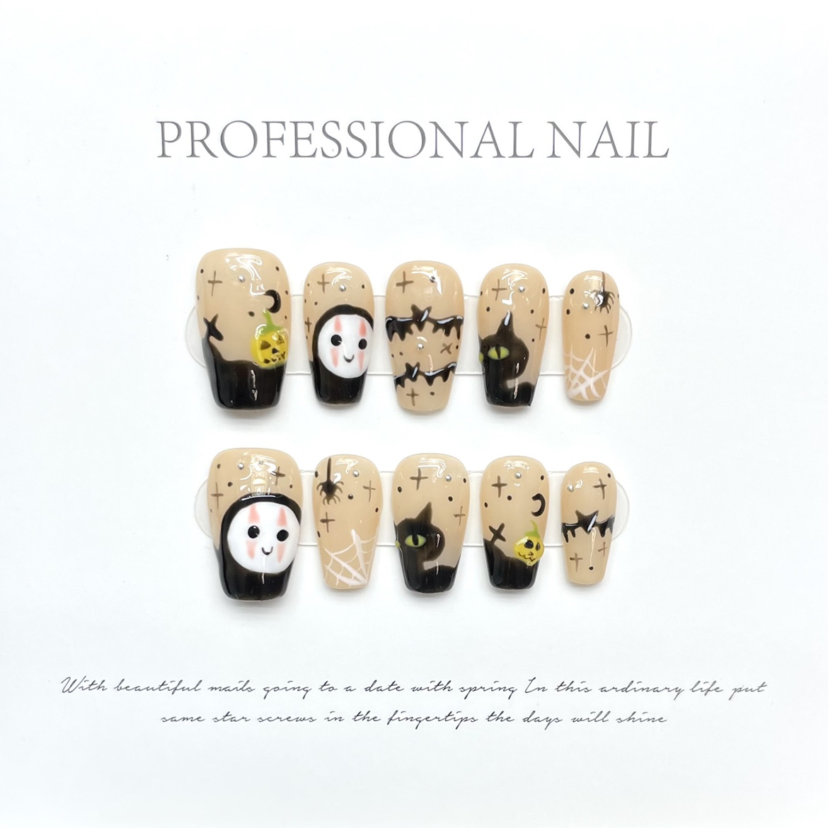 Christmas Funny No Face Man Pumpkin Hand-Painted Short Student Patch Finished Handmade Wear Nail Nail Stickers