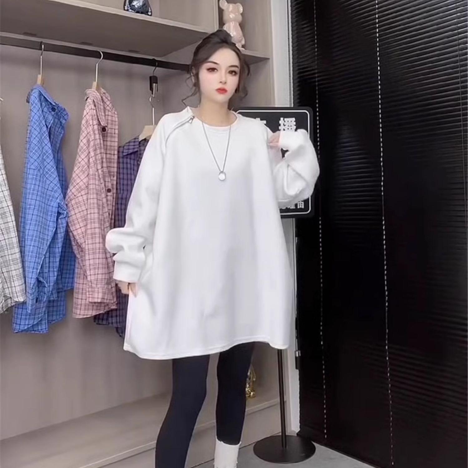 Chubby Girl Plus Size Autumn/Winter Fashion Zip-Up Fleece-Lined Hoodie - Loose Mid-Length Top