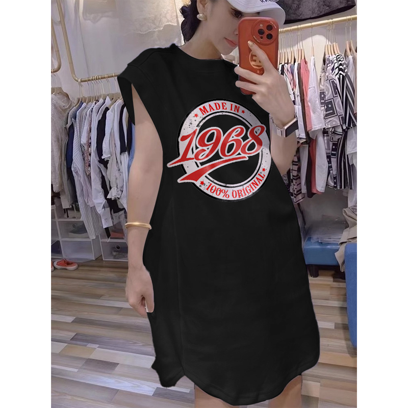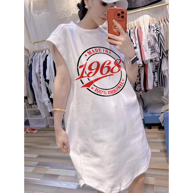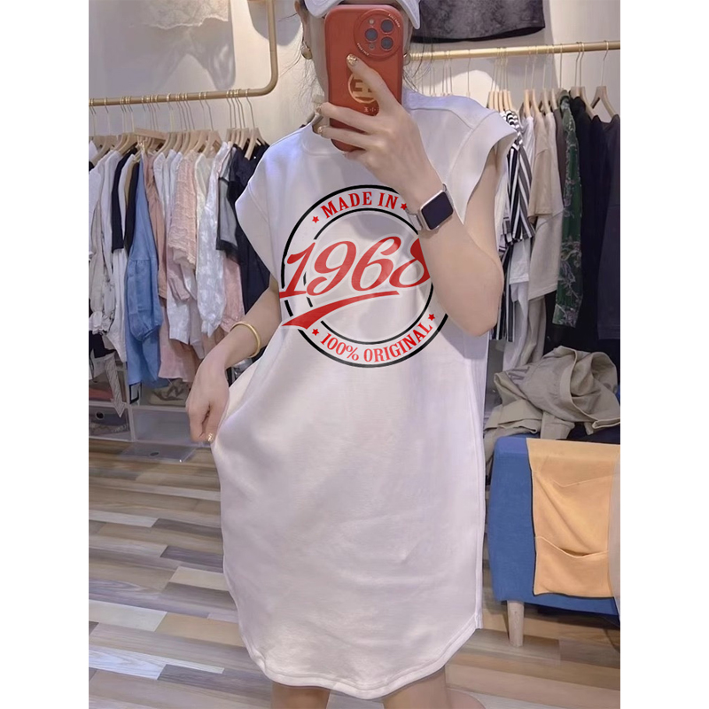 Chubby Girl 1.00 Kg-150.00 kg Plus Size Summer New Arrival Letter Print Sleeveless T-shirt Skirt Casual Loose Fashionable Vest Skirt