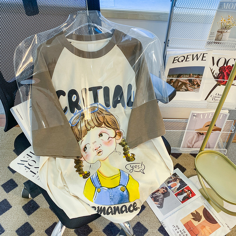 Chubby Girl 1.00 Kg-150.00 Kg Pure Cotton Loose Sports Short Sleeve Women's Summer 2024 Mid Length Long Length Raglan Sleeve round Neck Plus Size T-Shirt Tide