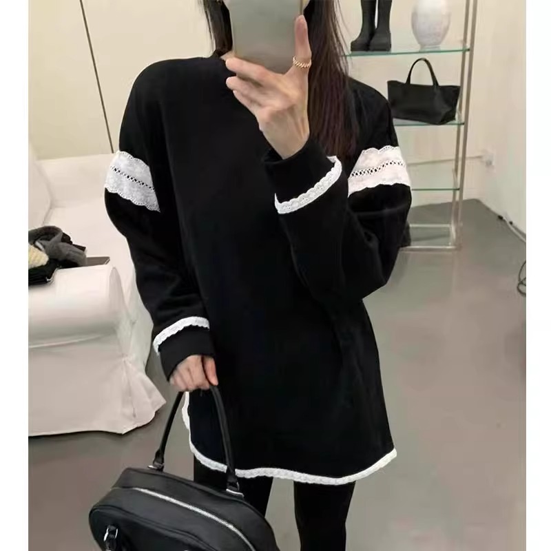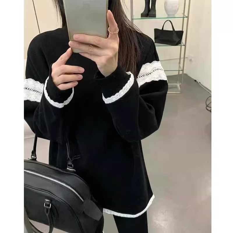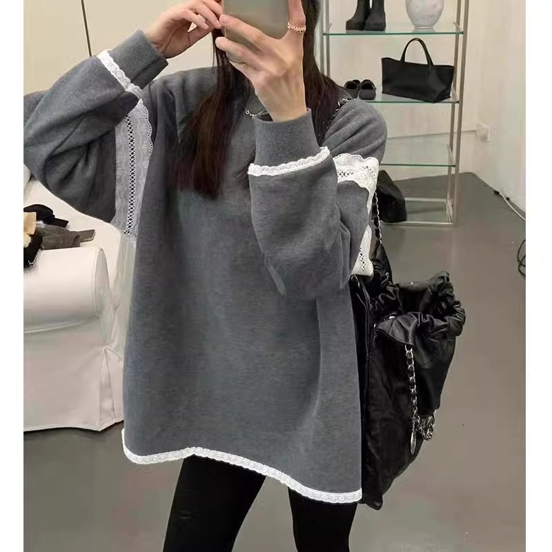 Chubby Girl Designer Lace Stitching Fleece-Lined Thickened Hoodie - Autumn/Winter Loose Pullover Trendy Top