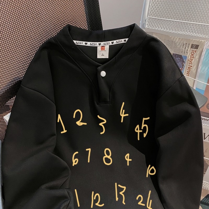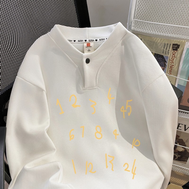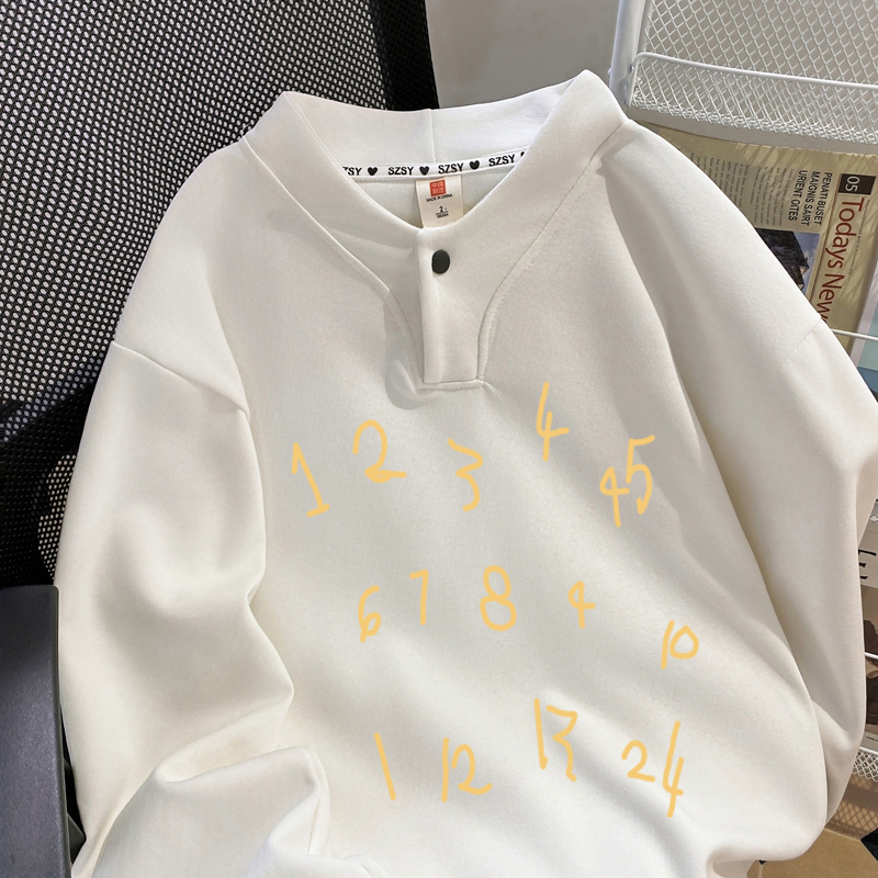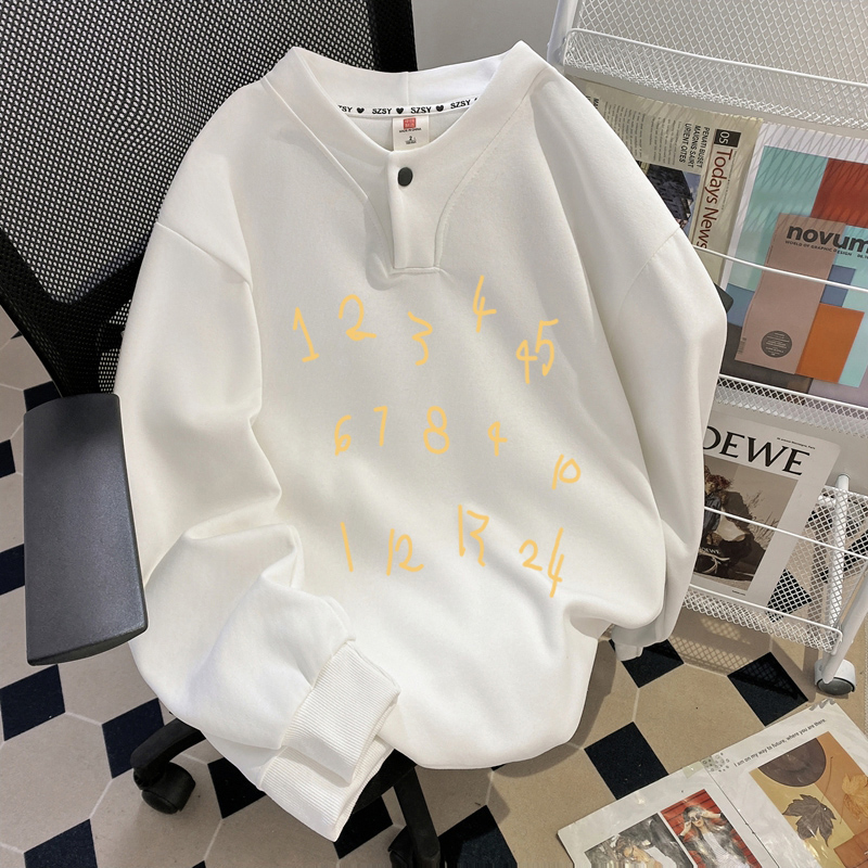 Chubby Girl Extra Large 1.00 Kg-150.00 kg Sweet Button Design Sense Hoodie Women Fashion Number Print Harajuku Style Top