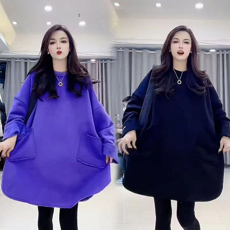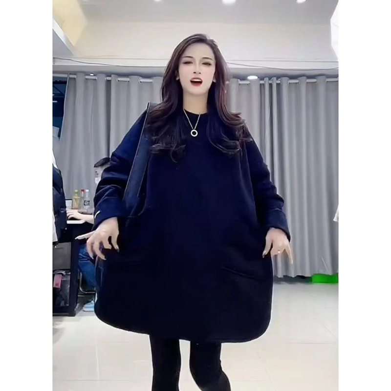 Chubby Girl Extra Large 150.00kg European Goods Winter New Fleece-lined Pocket Design Mid-Length White Cover Meat Sweater Dress
