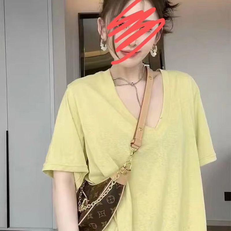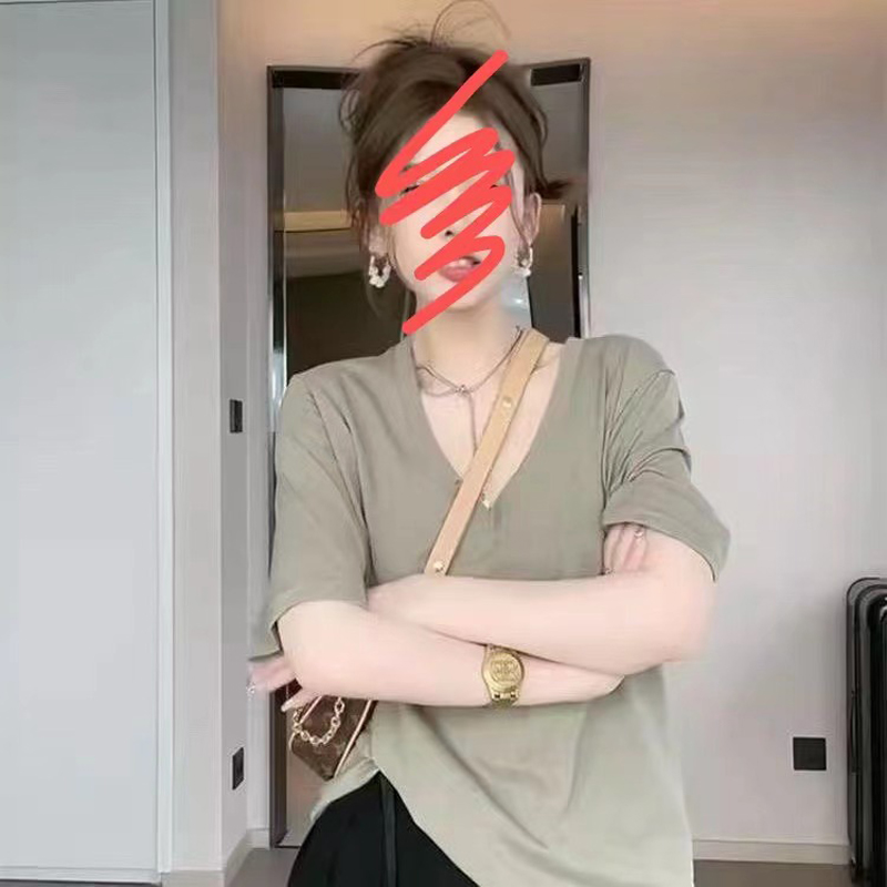 Chubby Girl Extra Large Size 1.00 Kg-150.00 kg Idle Style V Neck Pure Color Short Sleeve T-shirt Female Summer Loose Casual Fat Hiding Top