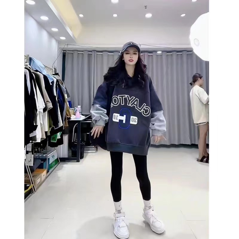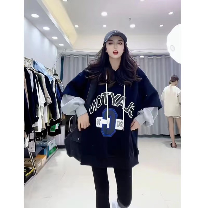 Chubby Girl Extra Large Size 150.00kg Fake Two-Piece Patchwork Sweater Female Fall and Winter Loose Velvet Thickened Mid Length Long Length Tops