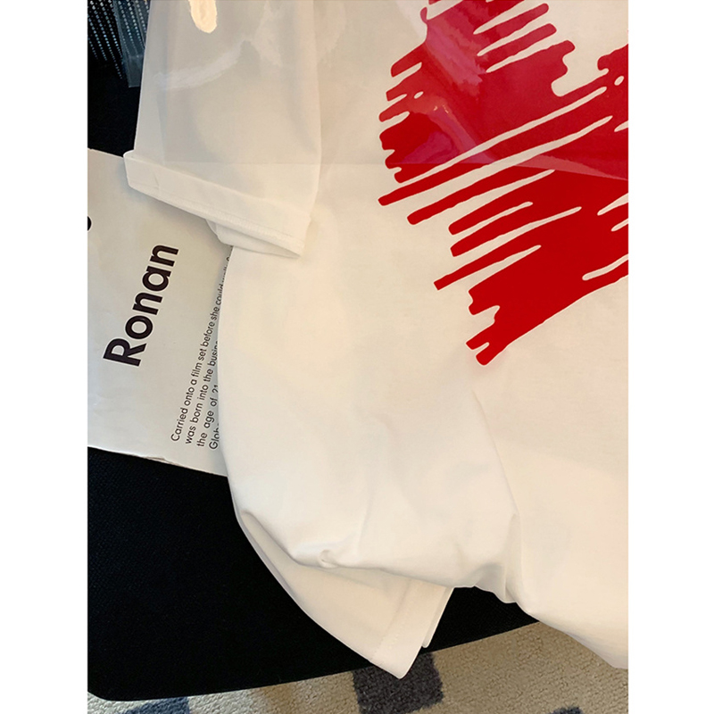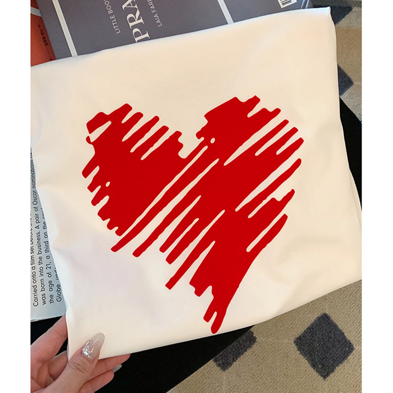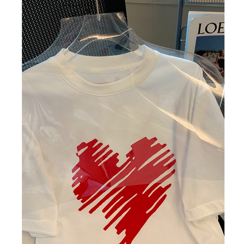 Chubby Girl Plus Size 1.00 Kg-150.00 kg Summer Cotton Short Sleeve T-shirt Female Loose All-Matching Slimming White Heart Printing Tops