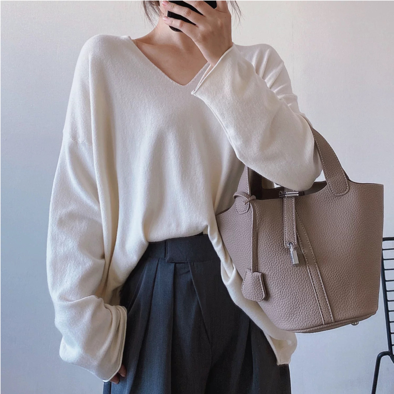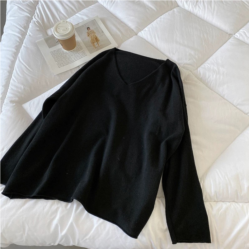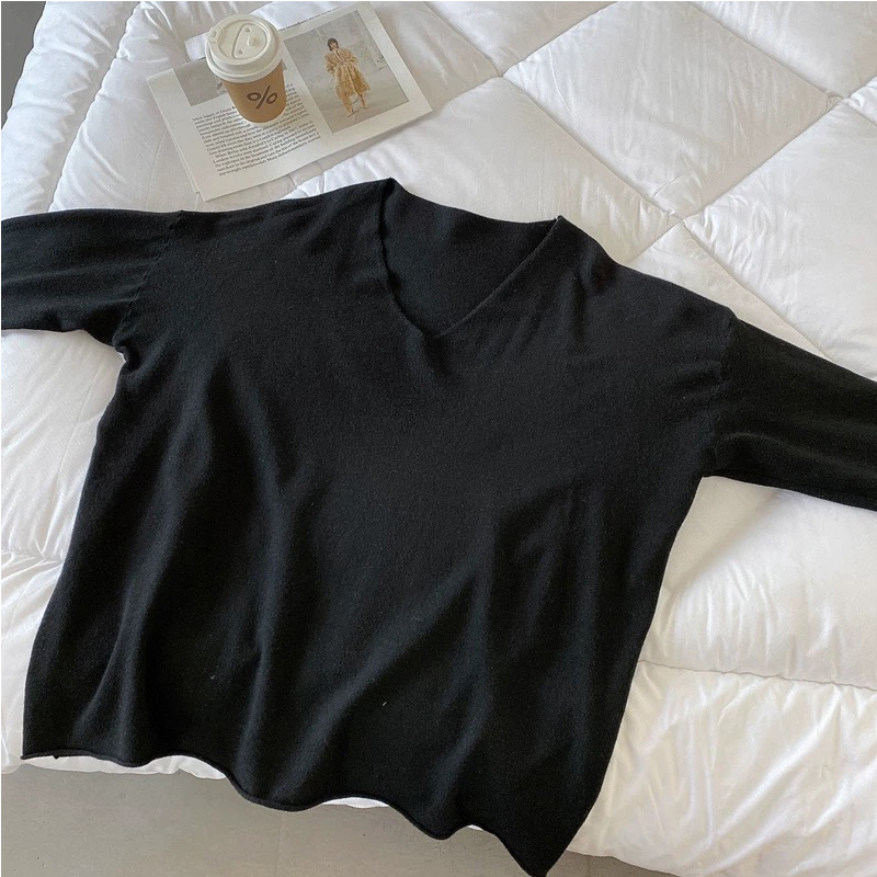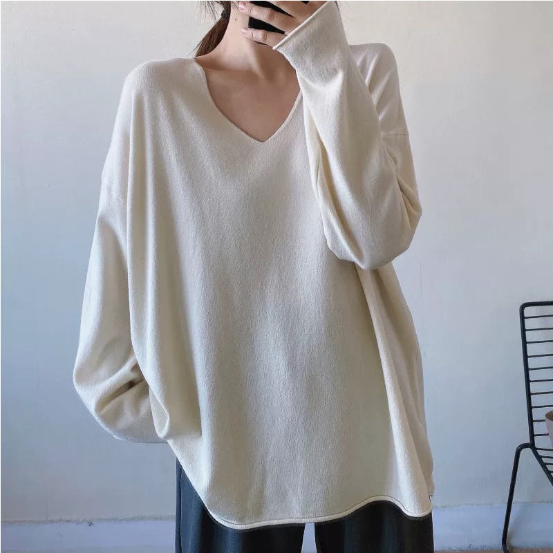 Chubby Girl Plus Size Easiest for Match V-neck Sweater Women's Spring and Autumn Loose 1.00 Kg-150.00 kg Slim Looking Bottoming Shirt Tops Ins Fashion