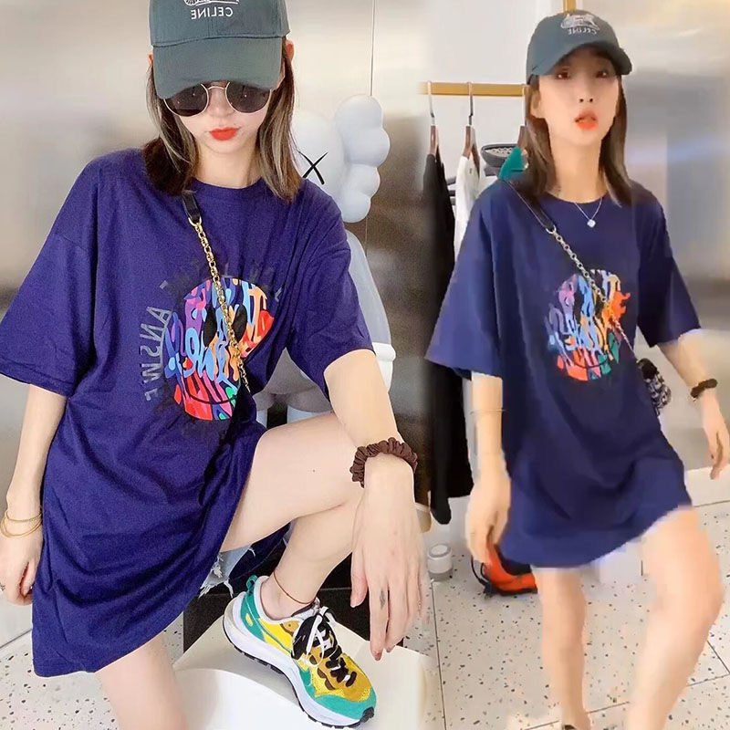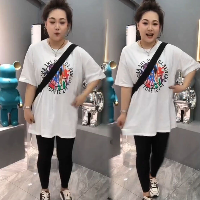 Chubby Girl Plus Size Summer Mid Length Long Length Dress Women's New Arrival K-style Pocket Casual Sports Elegant Short Sleeve T-shirt Skirt