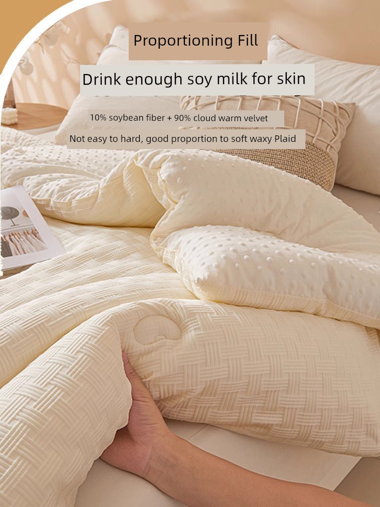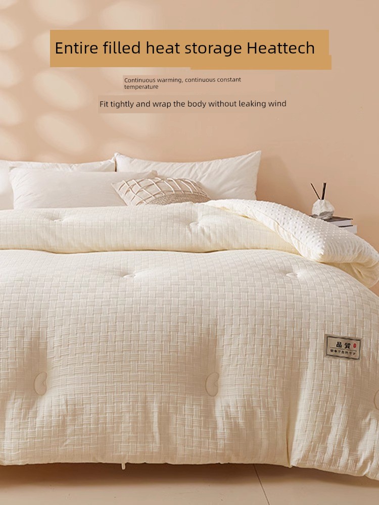 Class A Soybean Fiber Quilt Winter Duvet Insert Thickened Heattech Quilt for Spring and Autumn plus Student Dormitory Single Quit All Year Round Neutral 4