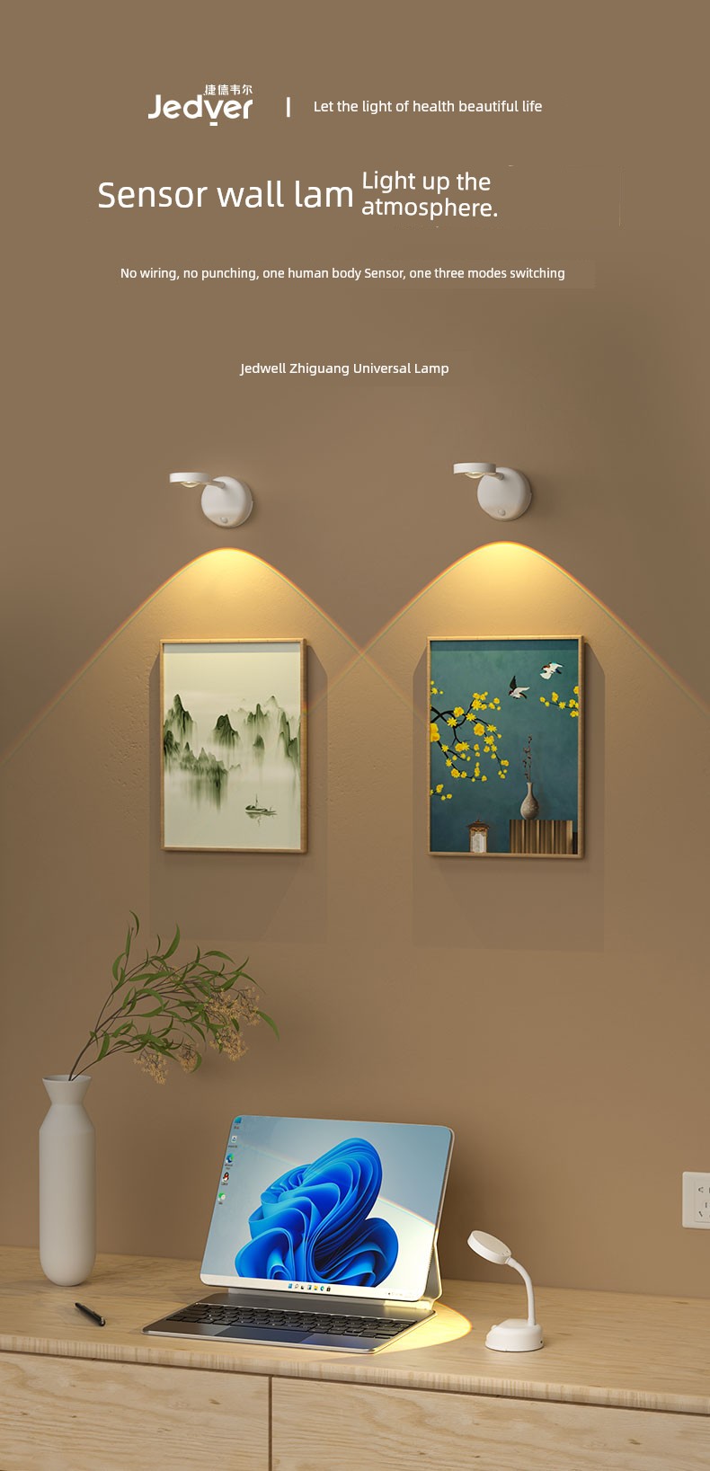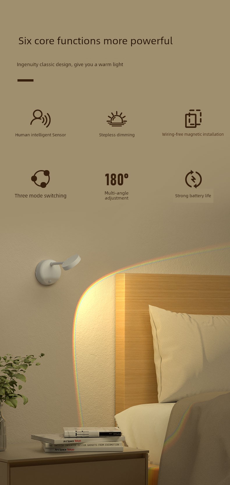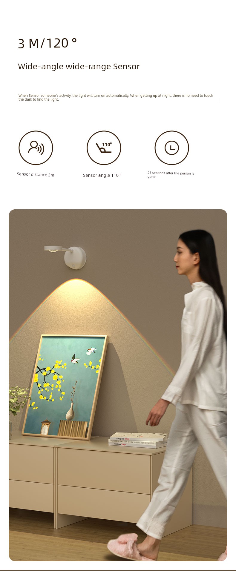Classy Atmosphere Mural Spotlight Wireless Punch-Free Background Wall Charging Wall Washer Induction Lamp People Come to Light