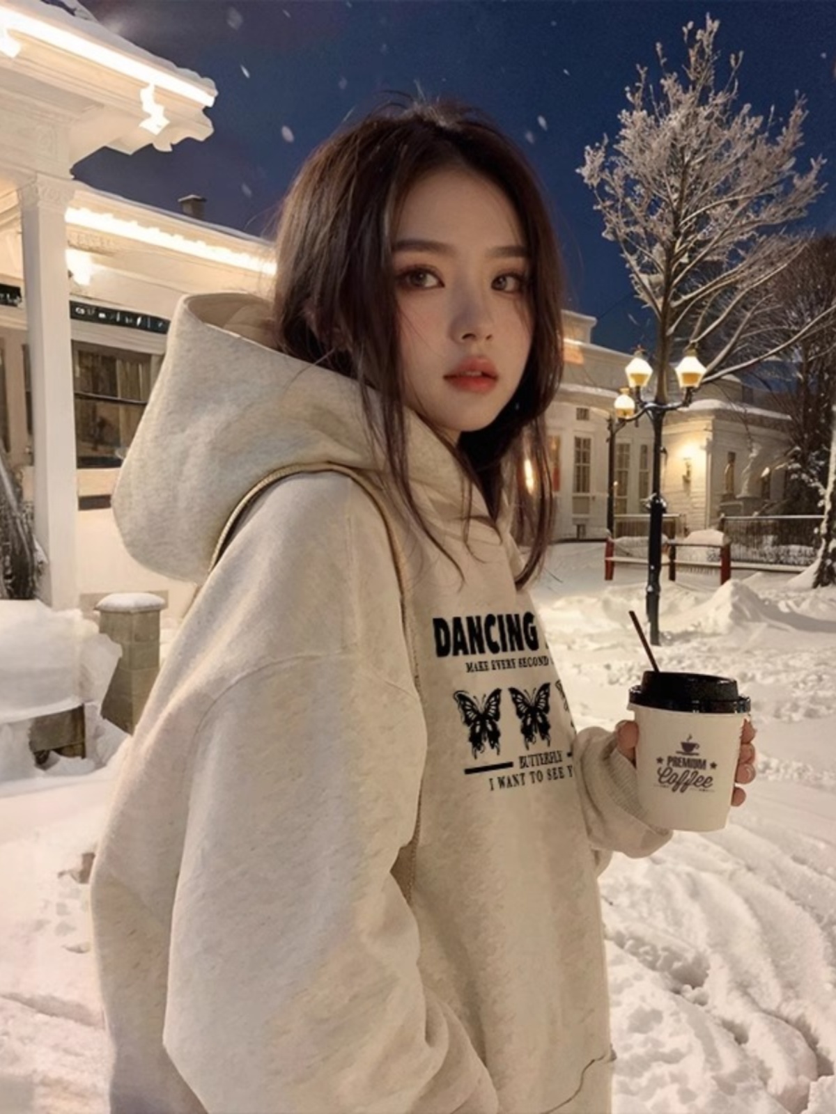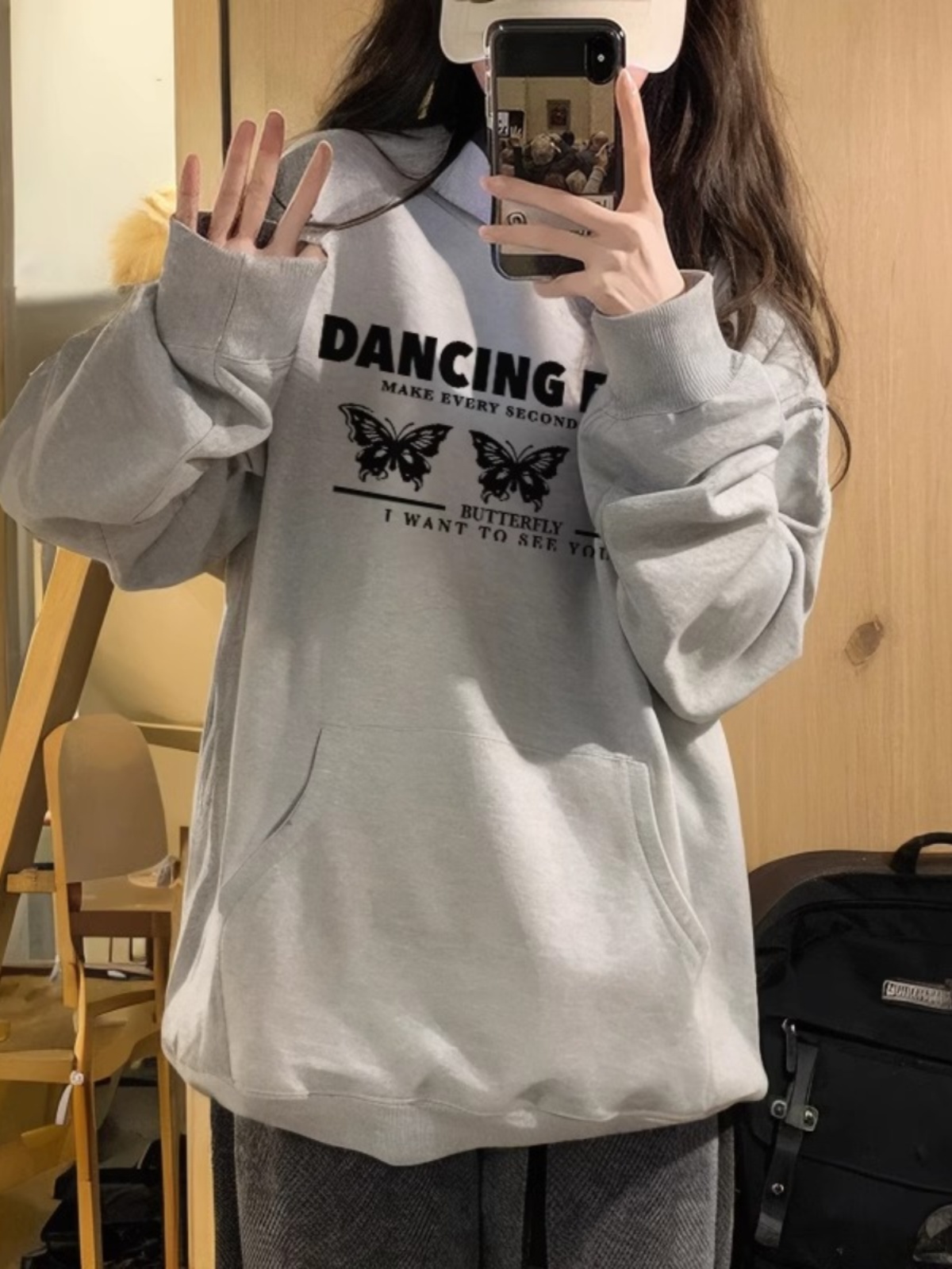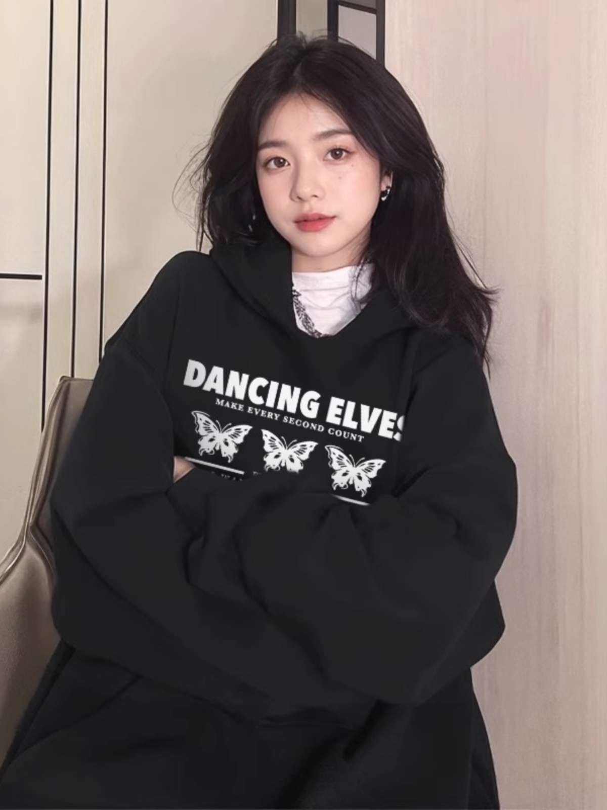 Classy Fleece-lined Thickened Sweater Hooded Women's Spring and Autumn 2025 New Arrival Best Selling Dark Blue Korean Style Lazy Style Top