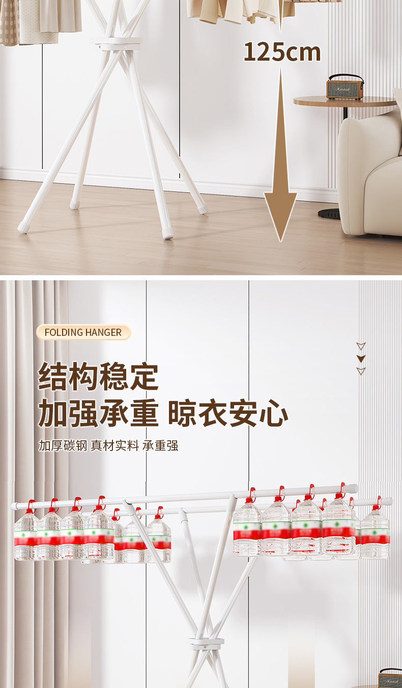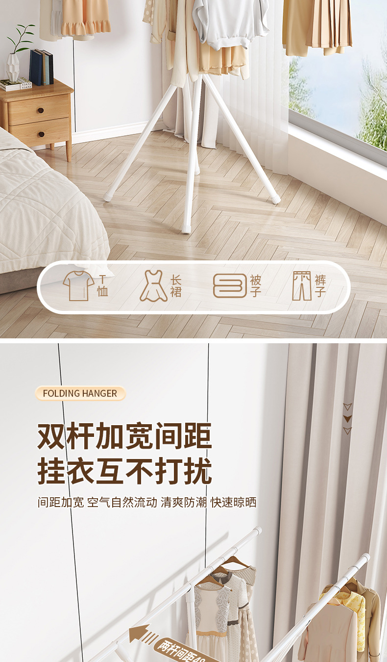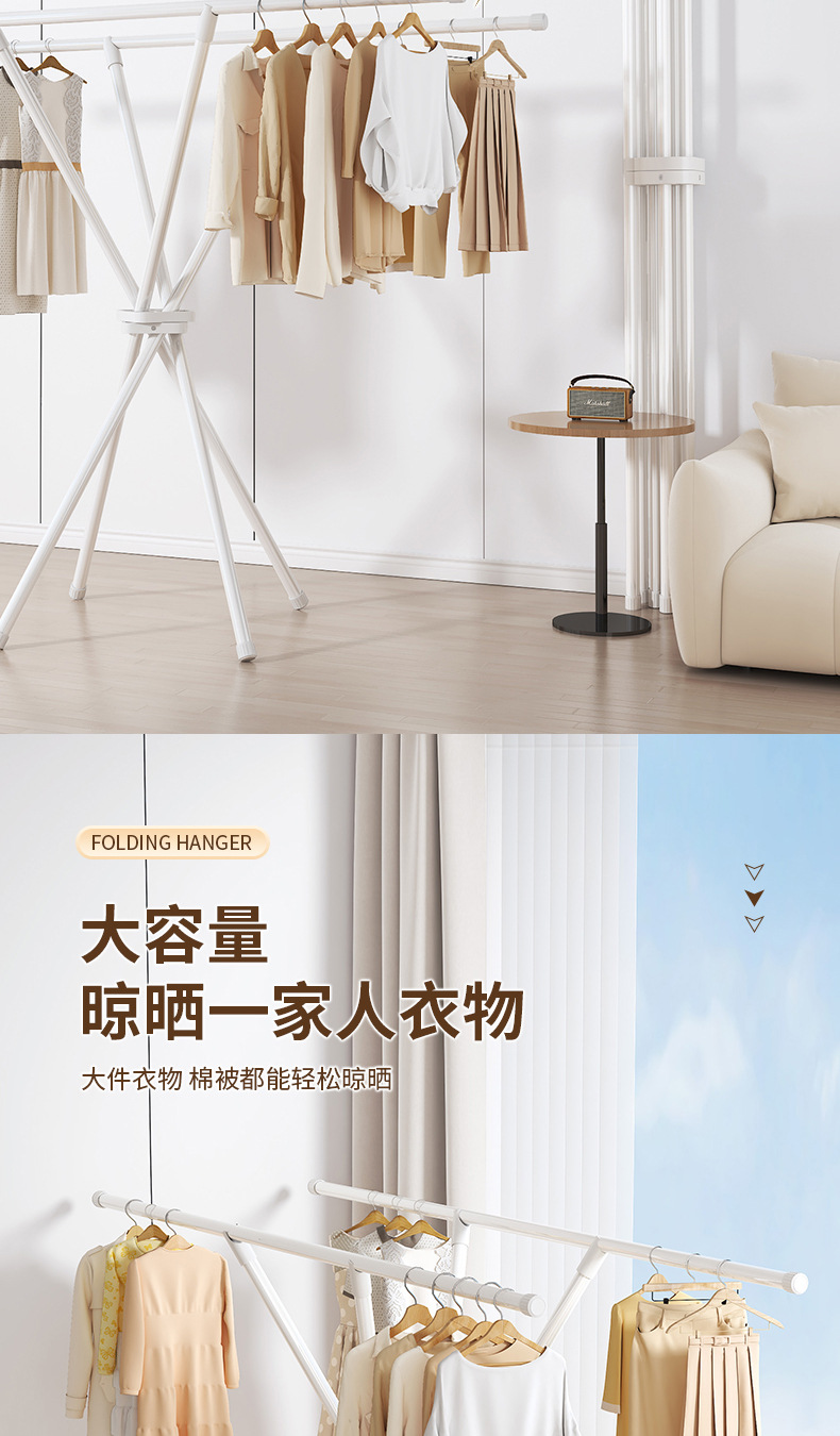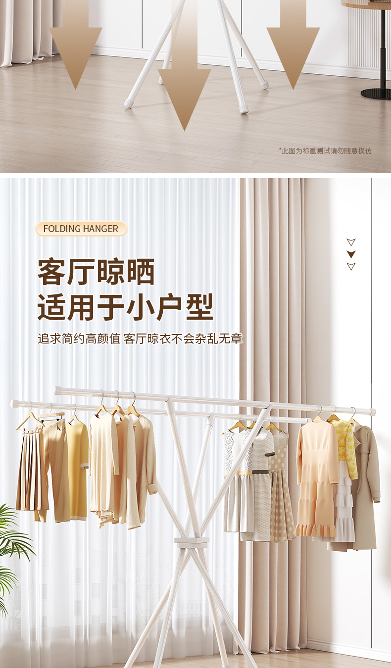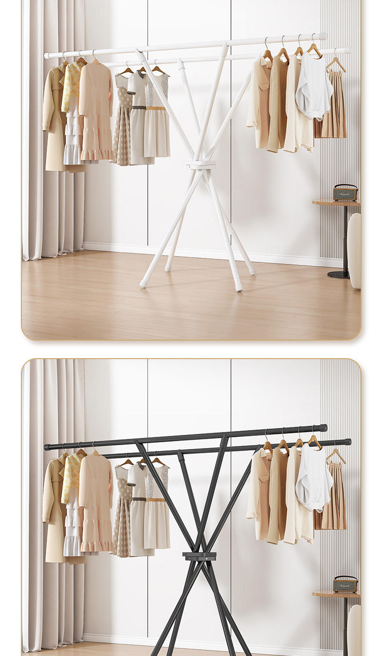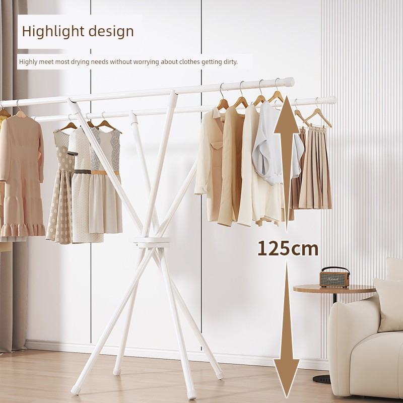 Clothes Hanger Floor Folding Thickening Bolding Air Clothes Shelf For Home Indoor Balcony Simple Retractable Hanger