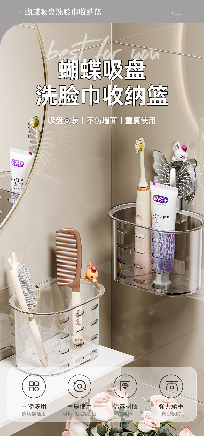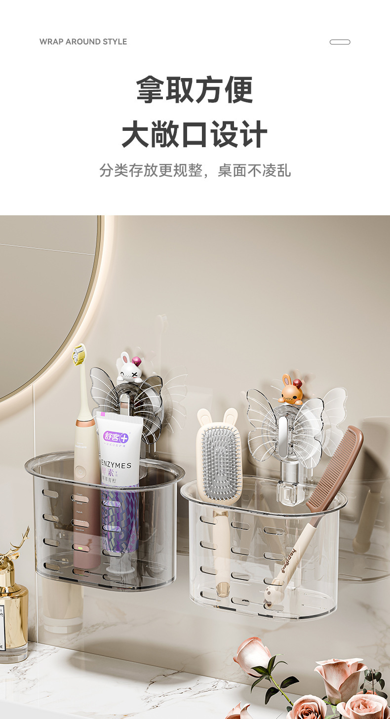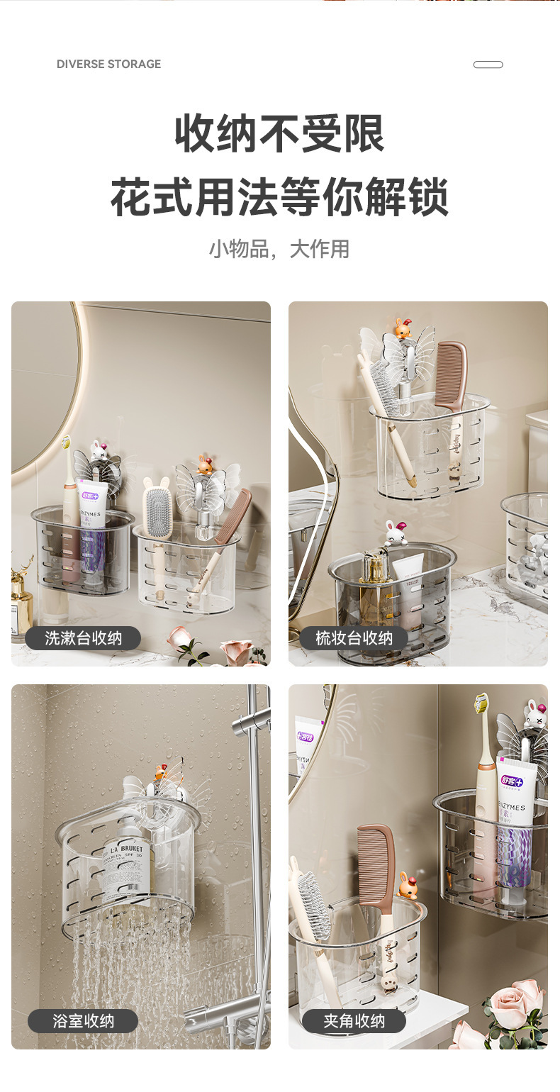 Comb Storage Rack Bathroom Vanity Shaver Sucker Hanging Basket Bathroom Punch-Free Toothpaste Toothbrush Rack