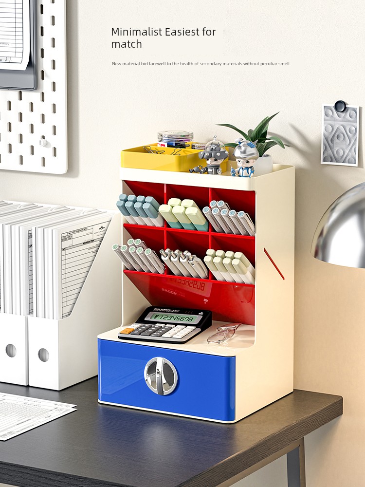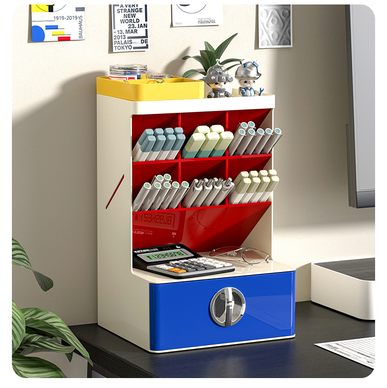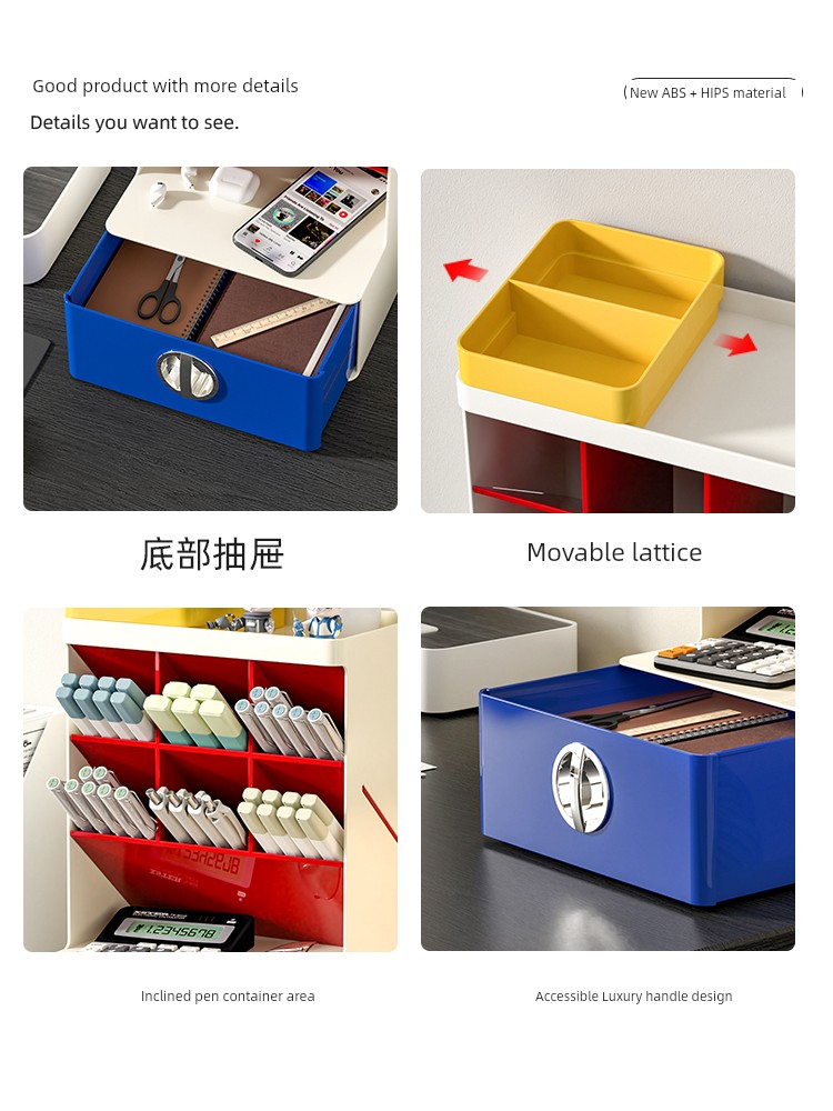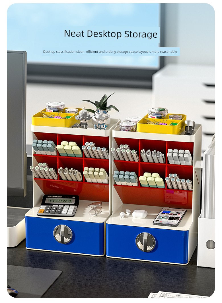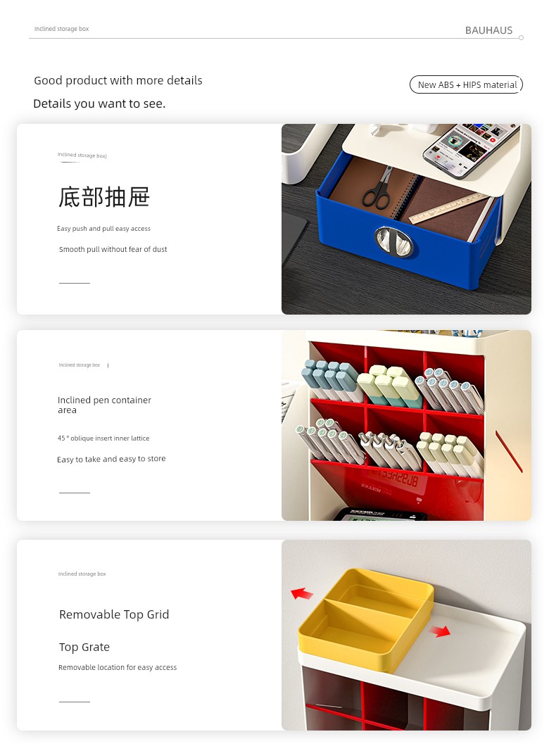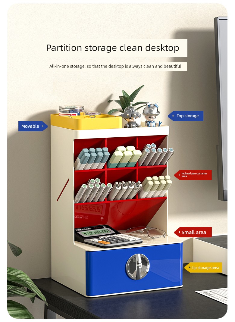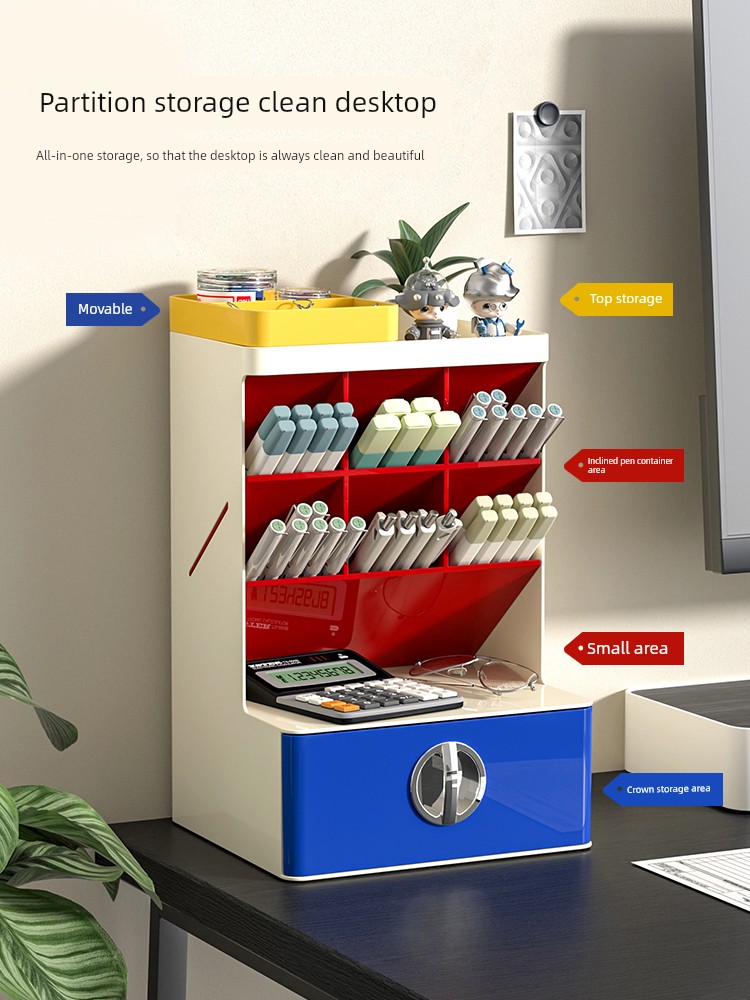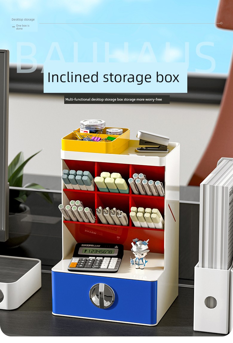 Contrast Color Oblique Insert Storage Box Desktop Drawer Student Office Desk Large Capacity Storage Rack Multifunctional Pen Holder