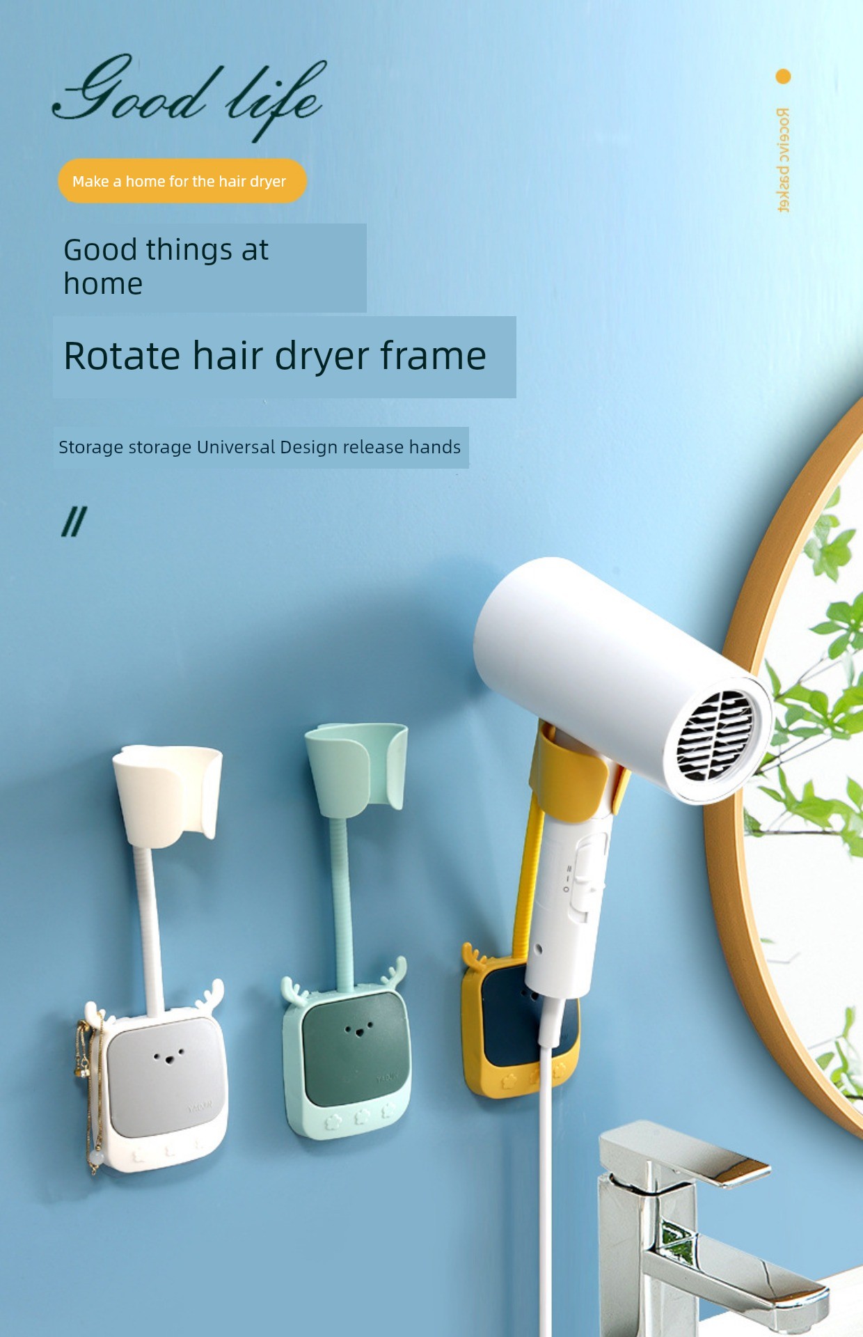 Contrast Color Punch-Free Lazy Hands Hair Dryer Rack