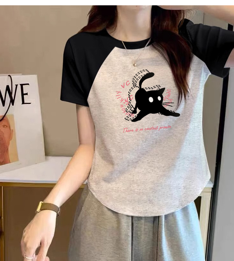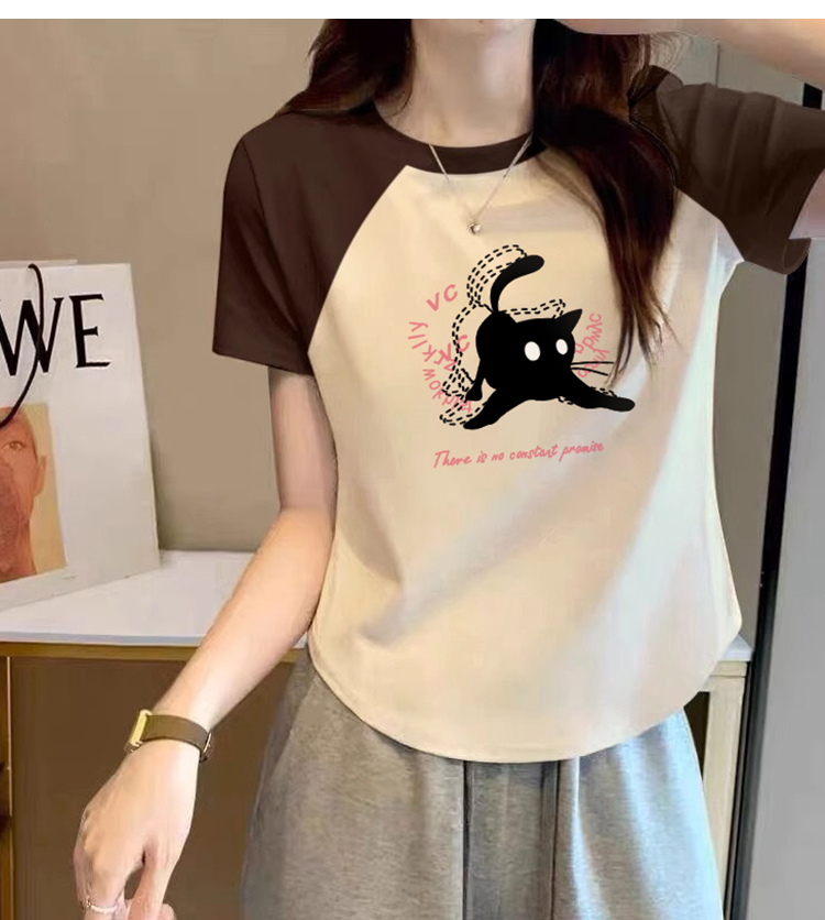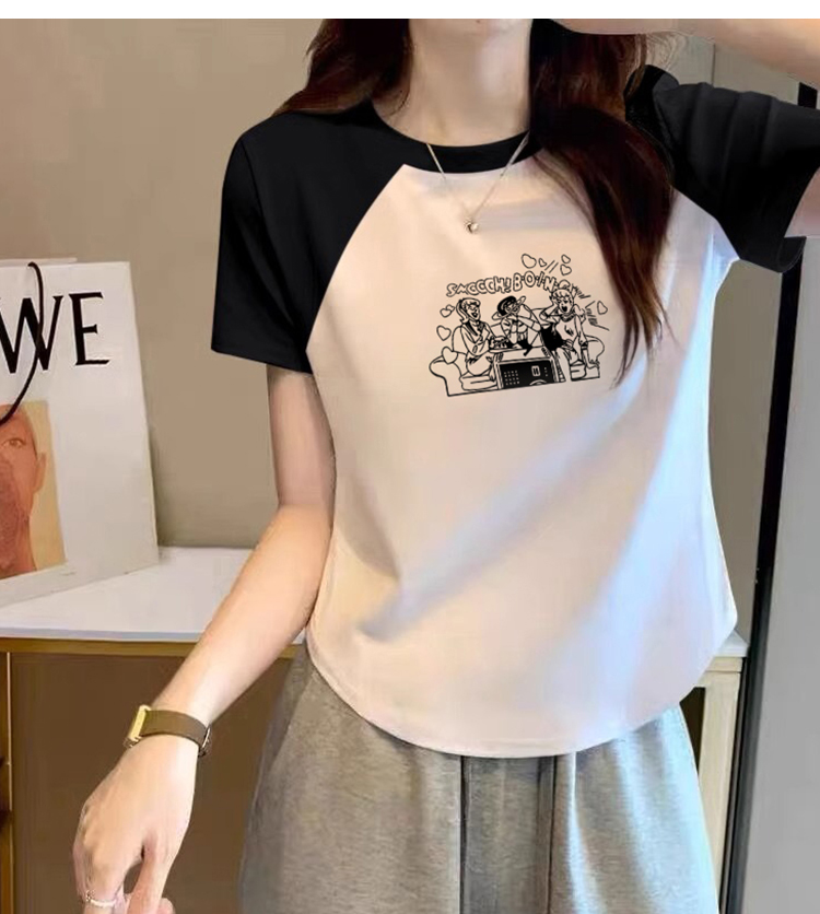 Contrast Color Short Sleeve T-Shirt Women's Summer K-style Tide Wide Loose Shoulder round Neck Half Sleeve Ladies T-shirt Pure Cotton Short Tops