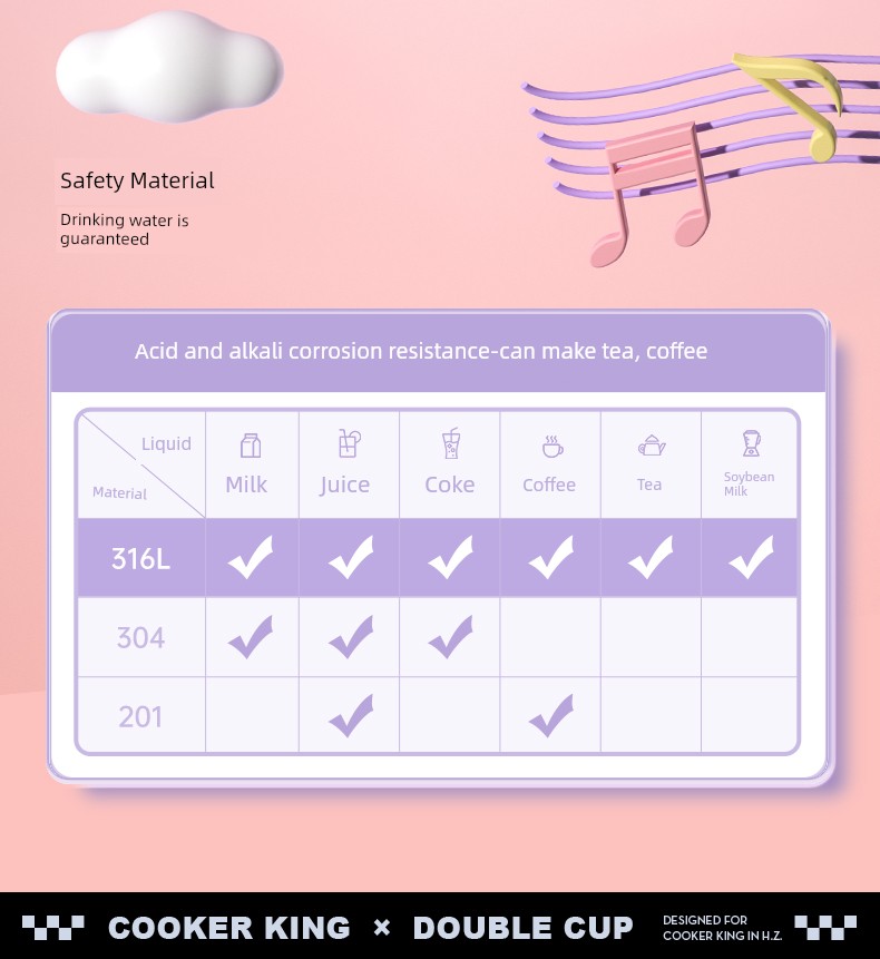 Cooker King 316L Stainless Steel Straw Vacuum Cup with Lid