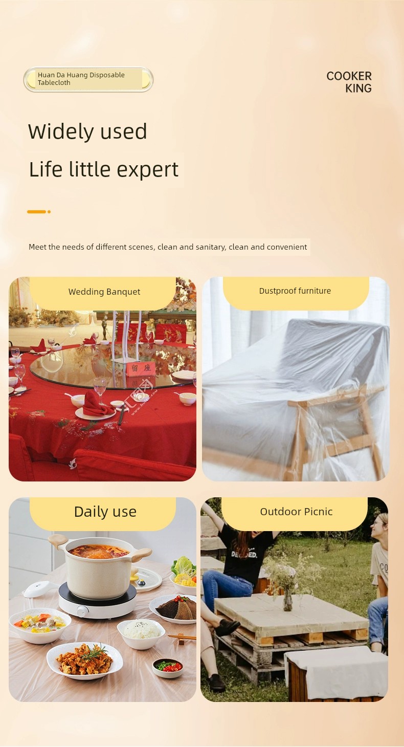 Cooker King Disposable Tablecloth Thickened Waterproof Tablecloth Rectangular Plastic Film Round Table Home Use and Commercial Use Picnic