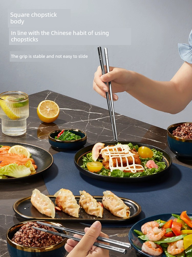Cooker King Stainless Steel Chopsticks 304 Suit For Home Kuaizi Oven Mitts Family Accessible Luxury Tools Metal Chopsticks Tableware