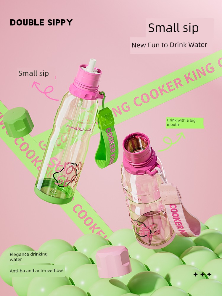 Cooker King Water Cup Good-looking Plastic Portable Cute Summer New Arrival Tumbler Female Student Fitness Sports Drop-Resistant
