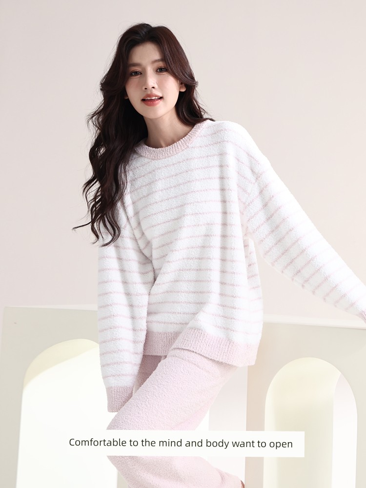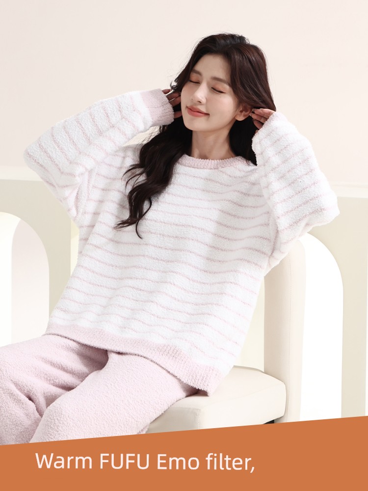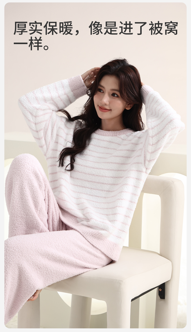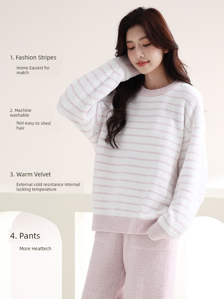 Coral Fleece Pajamas Women's Autumn and Winter Fleece-lined Thickened 2024 New Half Velvet High-Grade Home Wear Can Be Worn outside