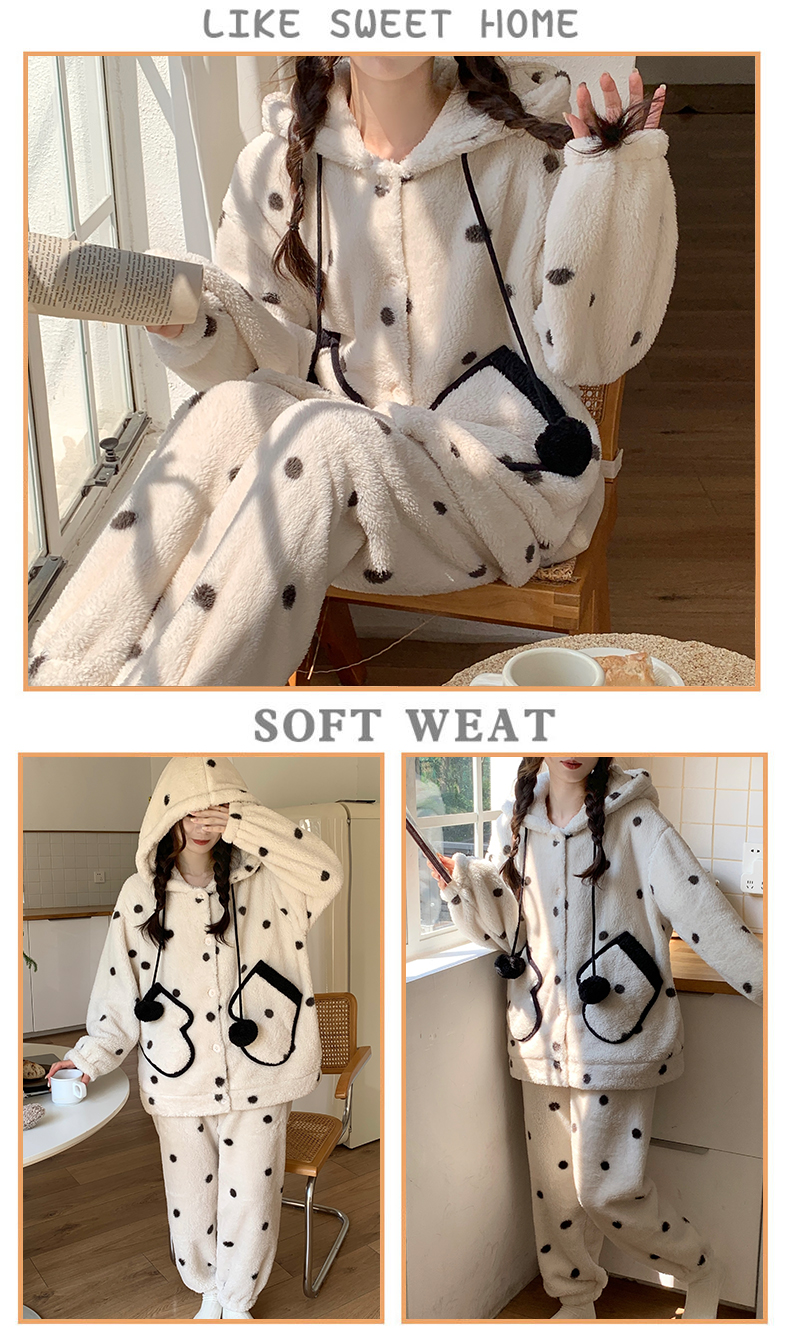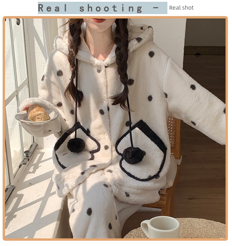 Coral Fleece Pajamas Women's Winter Three-Layer Quilted 2024 New Autumn and Winter Thickened Fleece-lined Flannel Home Wear