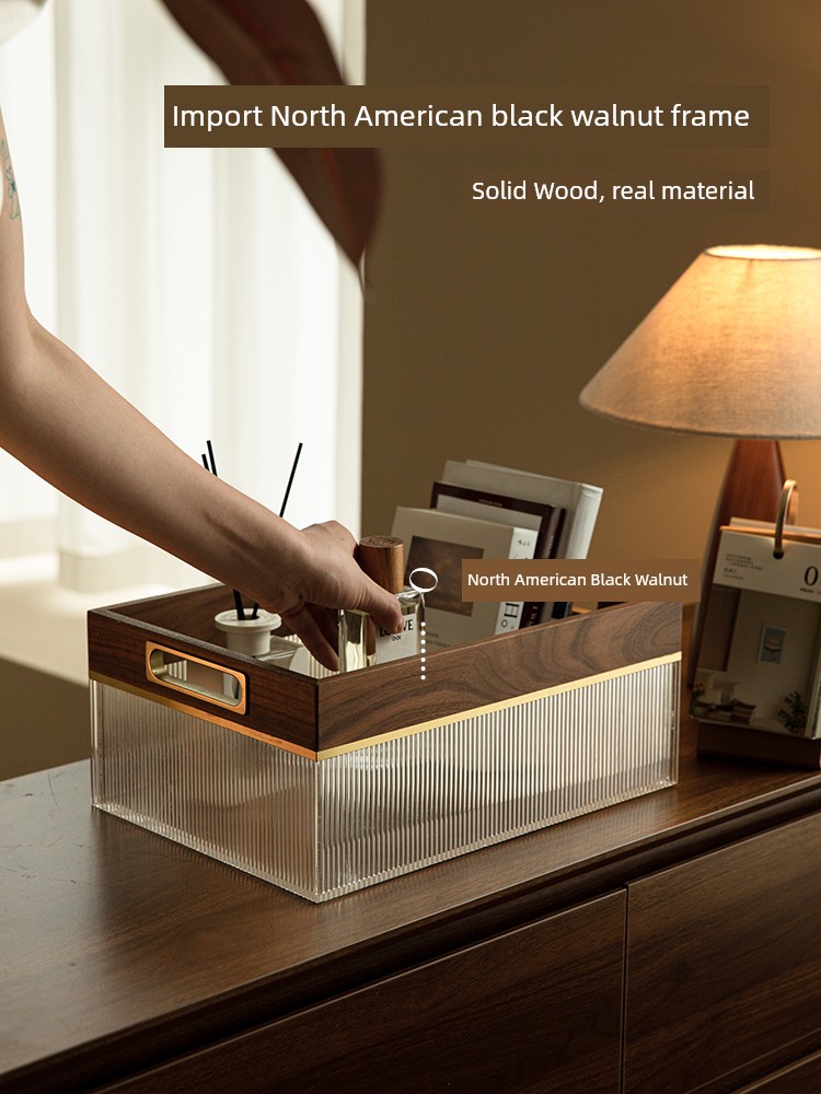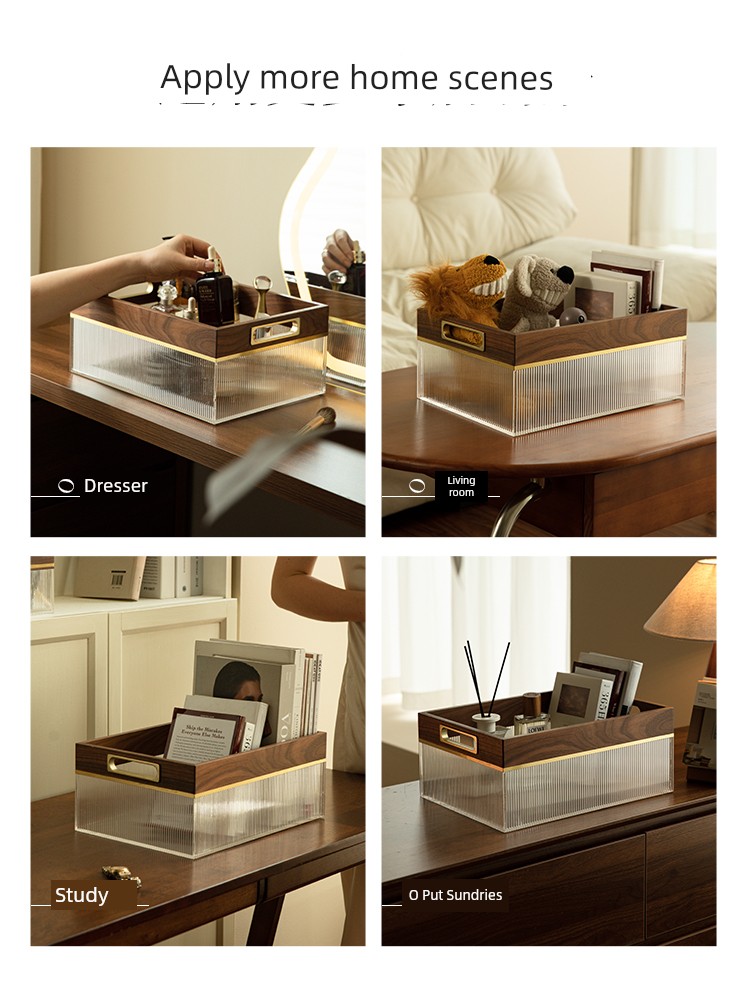 Cosmetics Storage Box Desktop Fancy Wooden Skin Care Products Perfume Lipstick Dressing Table Transparent Jewelry Storage Basket