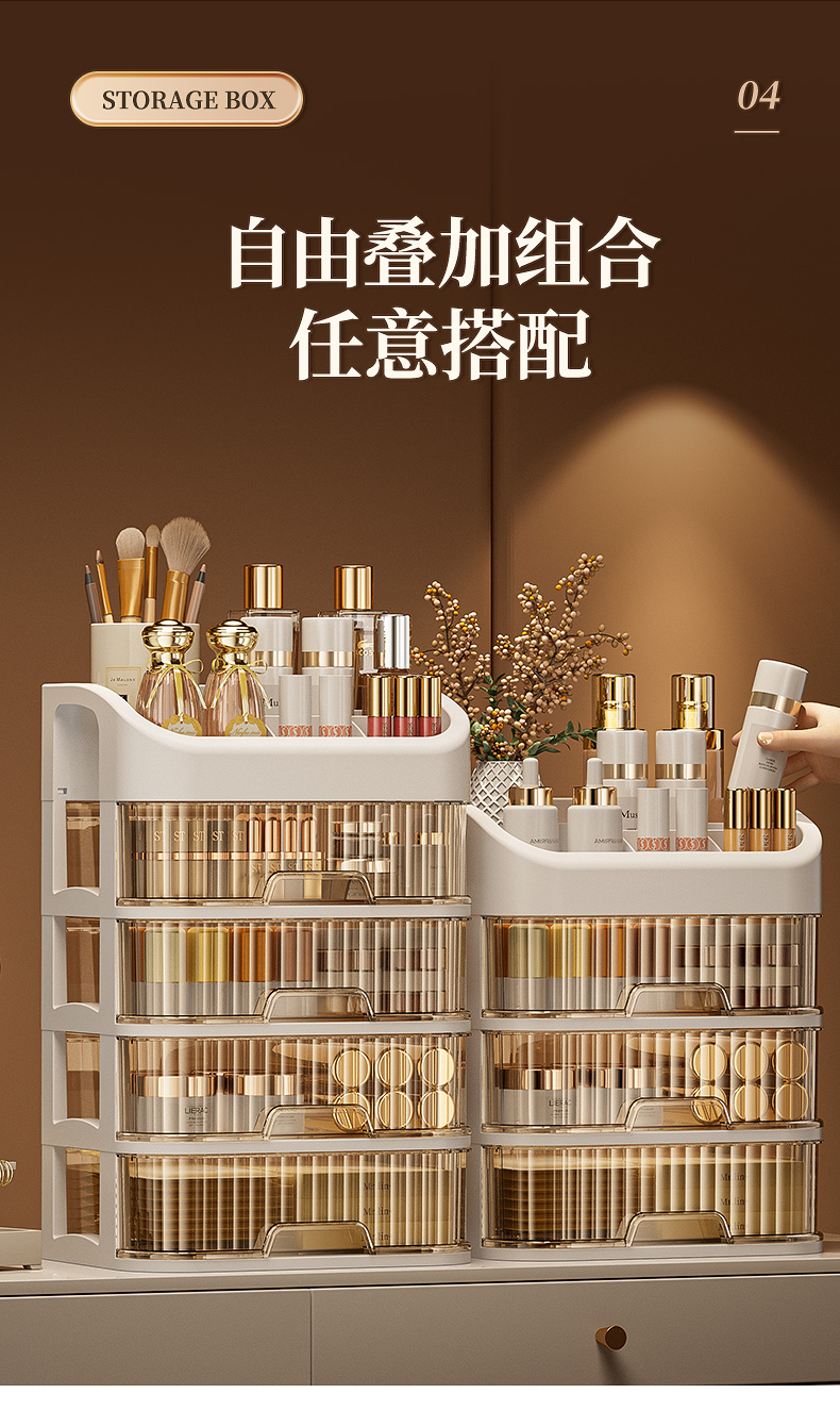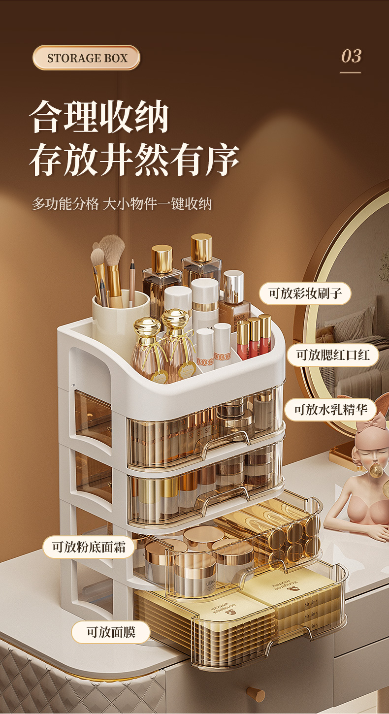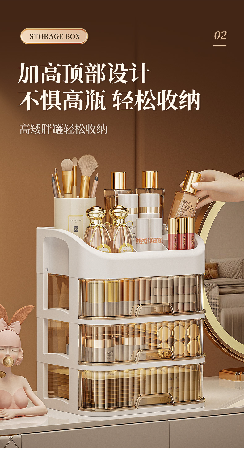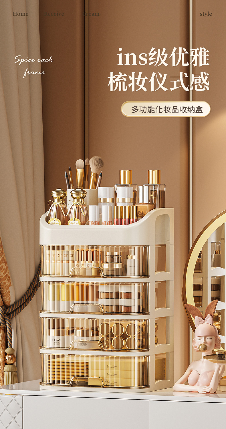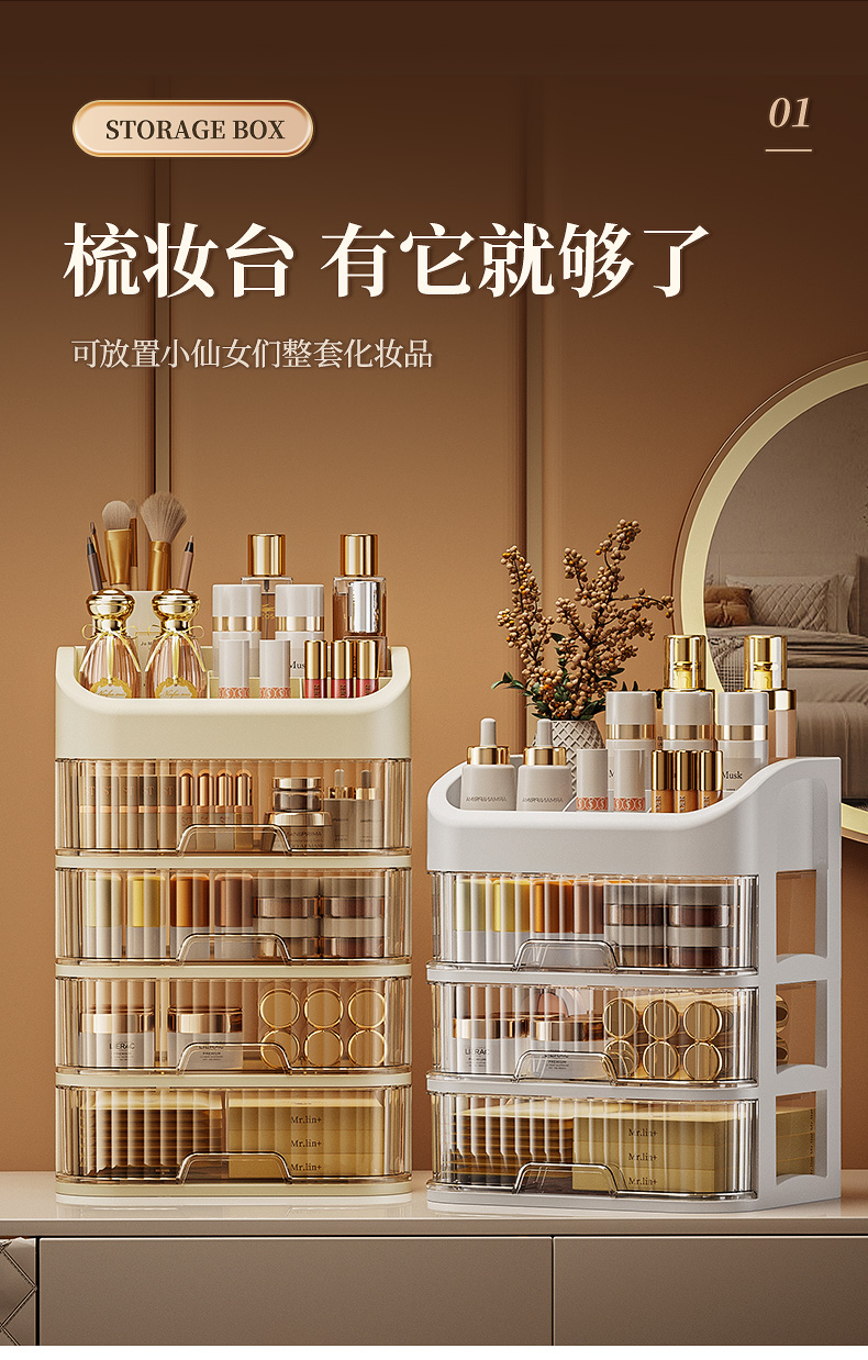 Cosmetics Storage Box Dressing Table Storage Rack Desktop Skin Care Products Drawer Divider Transparent Organizing Box Fancy
