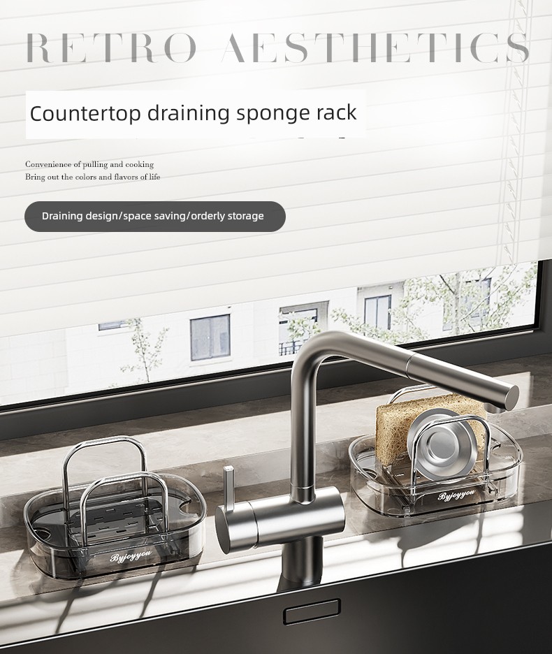 Countertop Draining Sponge Rack Rag Rack Kitchen Punch-Free Wall-Mounted Towel Kitchen Supplies Storage Rack