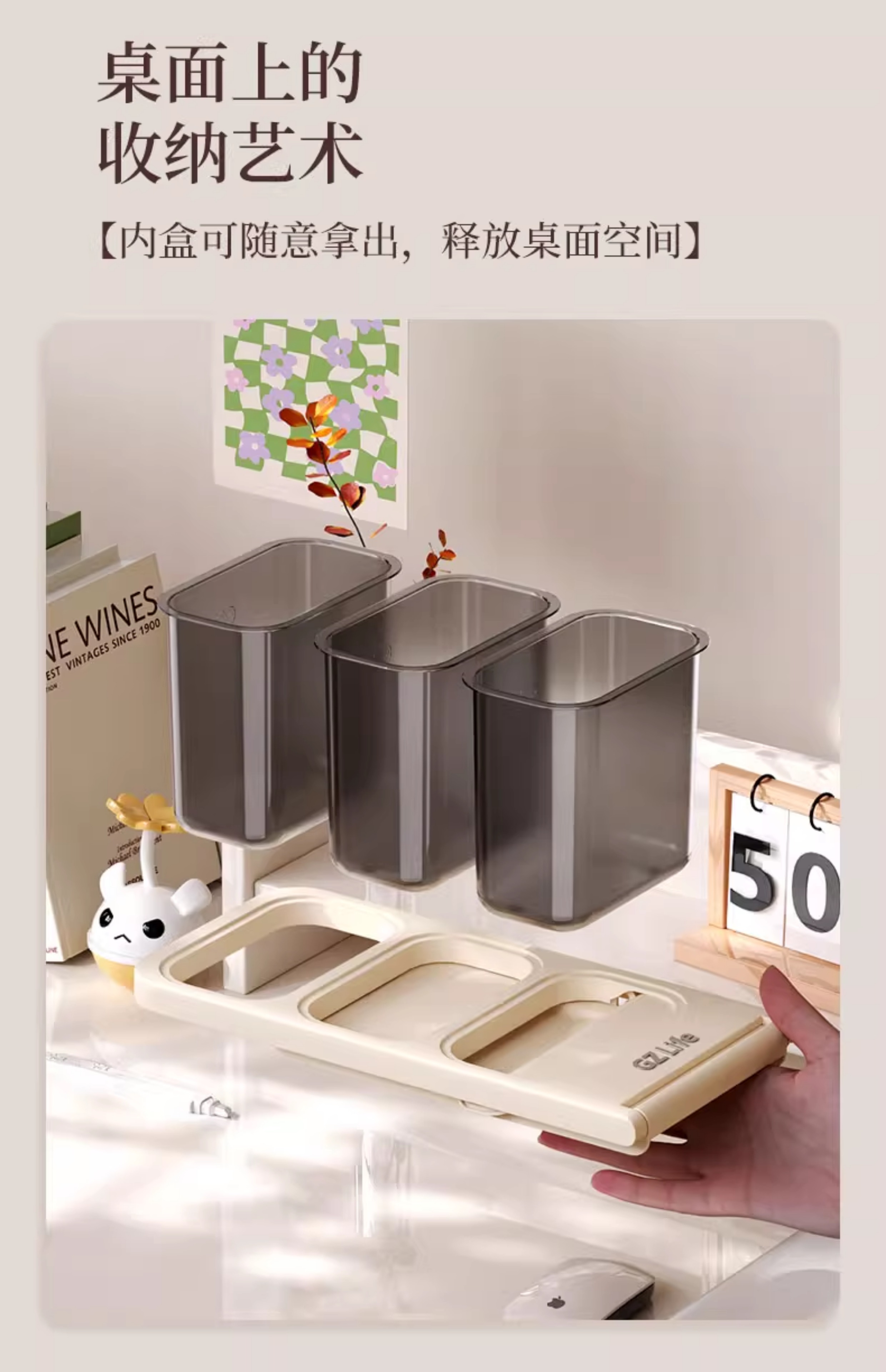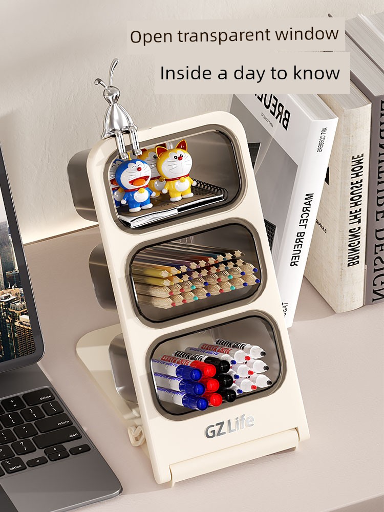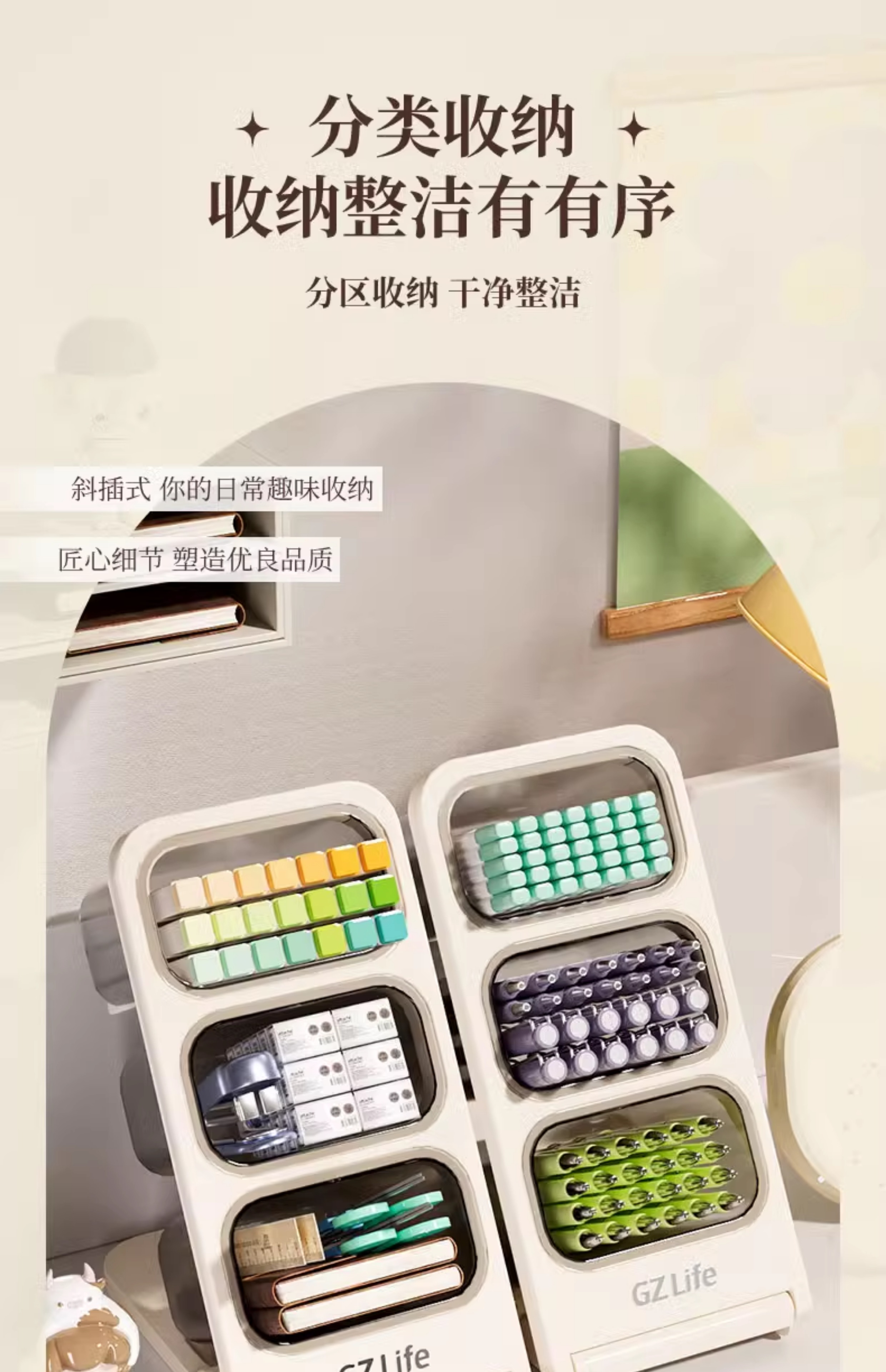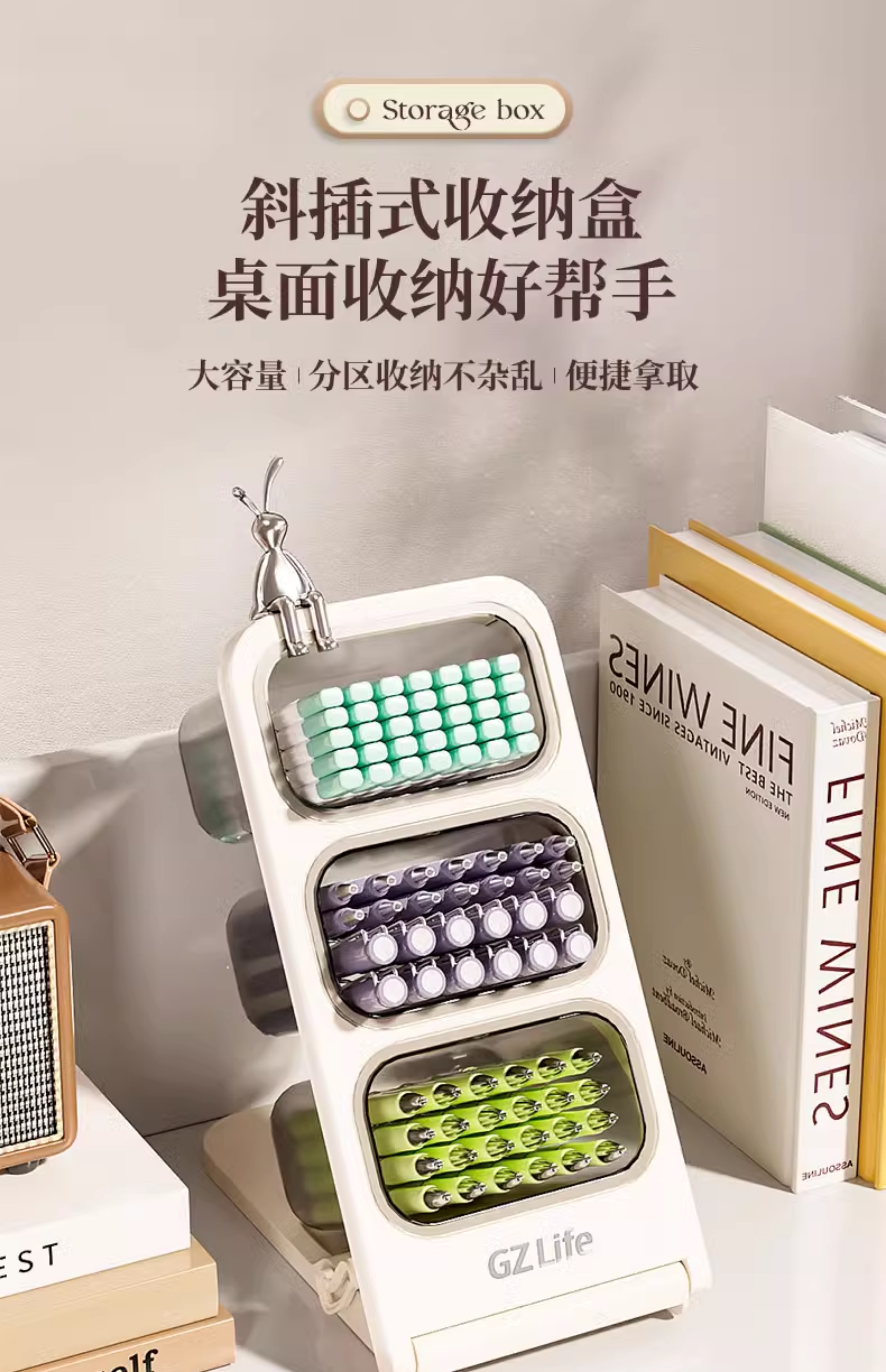 Cream Oblique Insertion Storage Box Large Capacity Desktop Multifunctional Creative Cute Good-looking Accessible Luxury Fancy Pencil Case