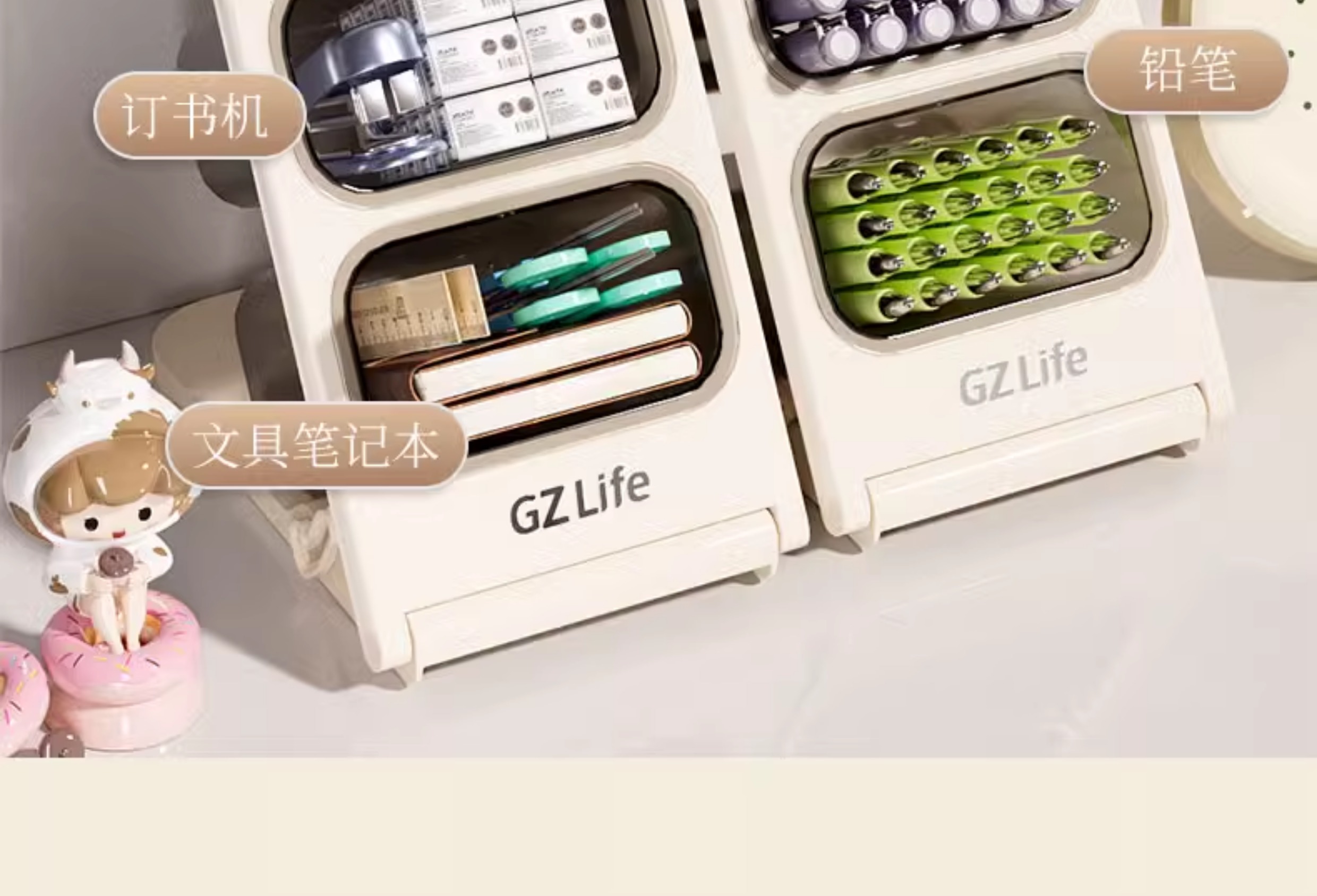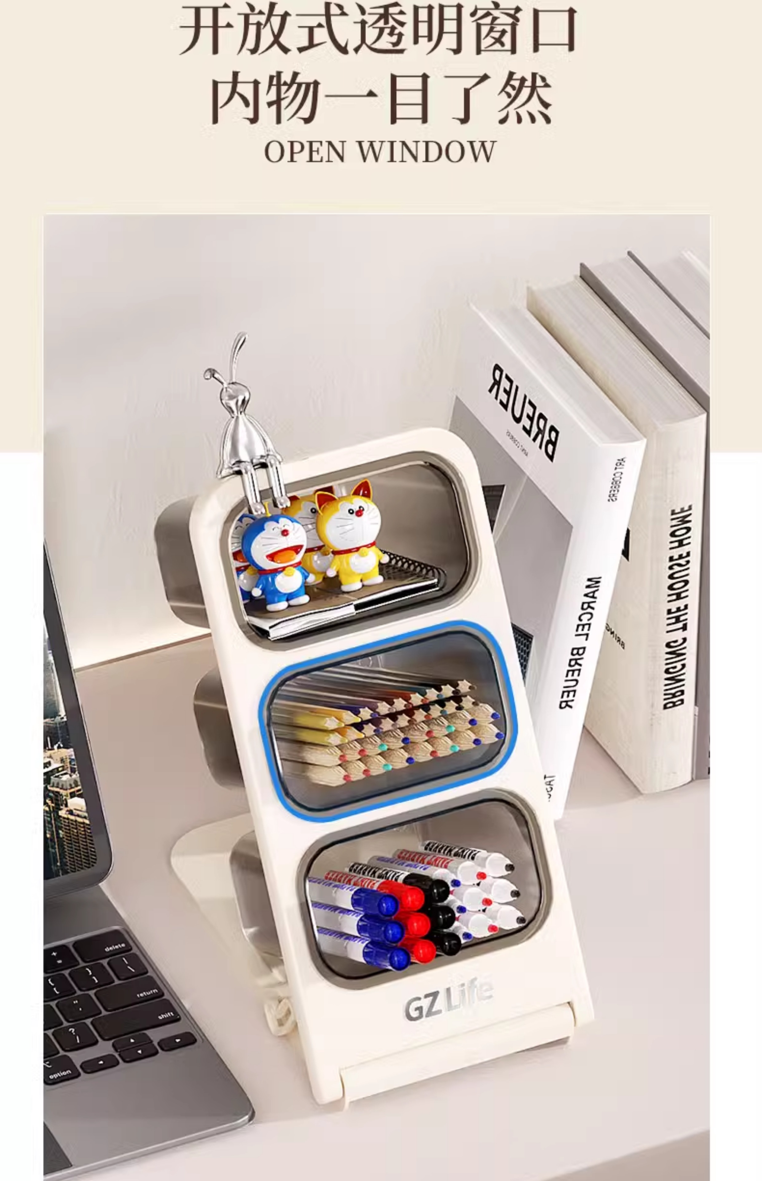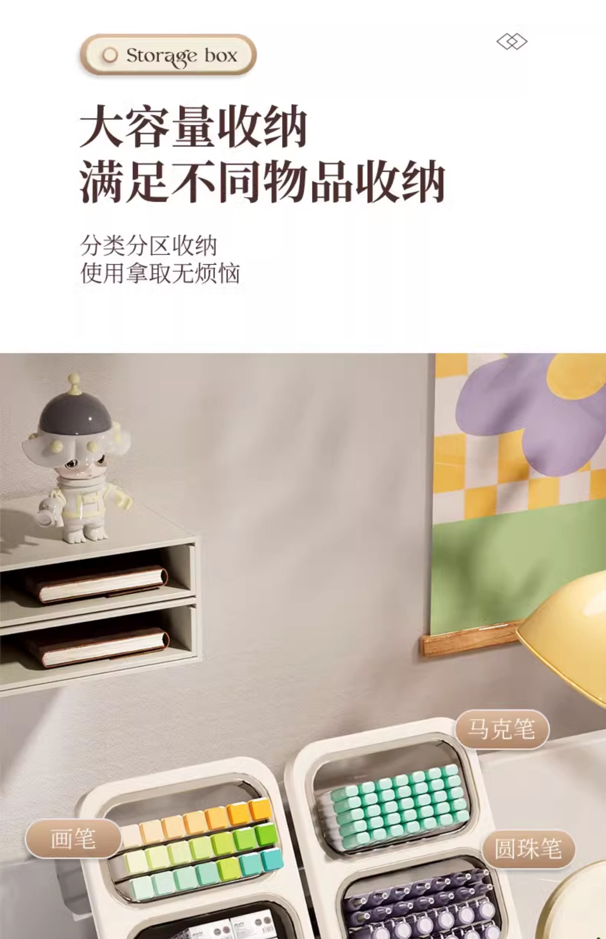 Cream Oblique Insertion Storage Box Large Capacity Desktop Multifunctional Creative Cute Good-looking Accessible Luxury Fancy Pencil Case