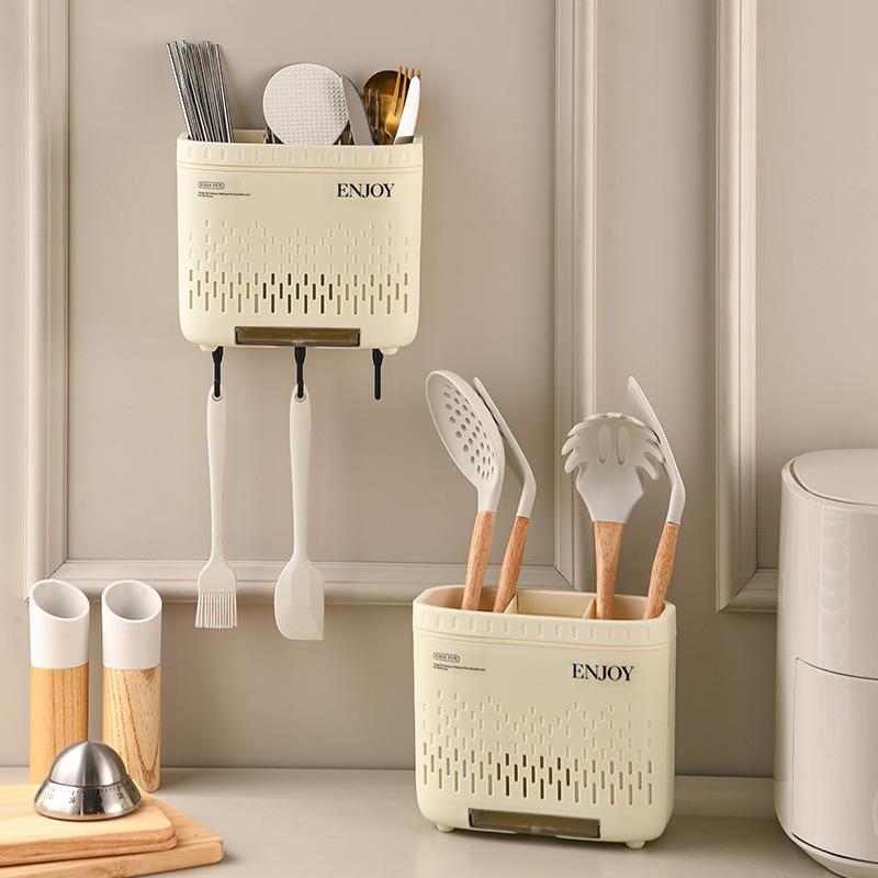 Cream Style Chopsticks Holder Storage Rack Home Wall-Mounted Chopsticks Basket Chopsticks Cage Chopsticks Spoon Dustproof Cover Storage Box Kitchen
