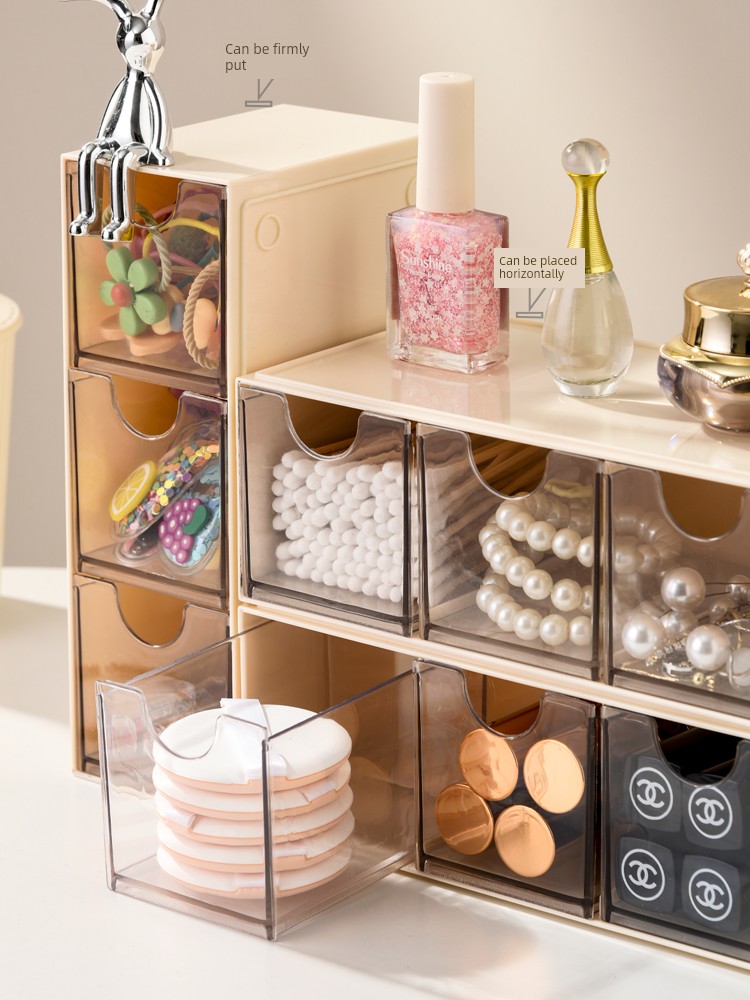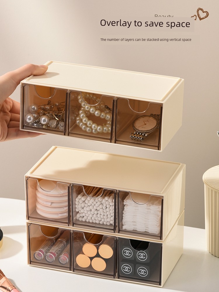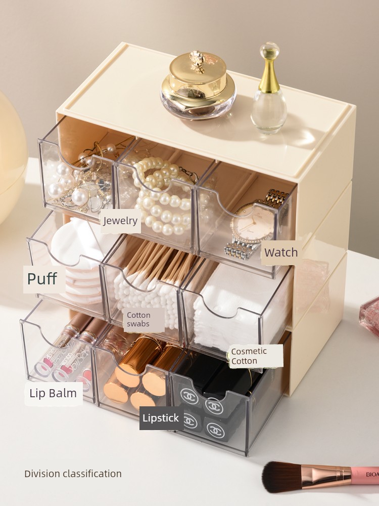 Cream Style Desktop Storage Box Drawer Dressing Table Dust-Proof Storage Rack Acrylic Office Clutter Organizing Box