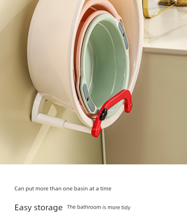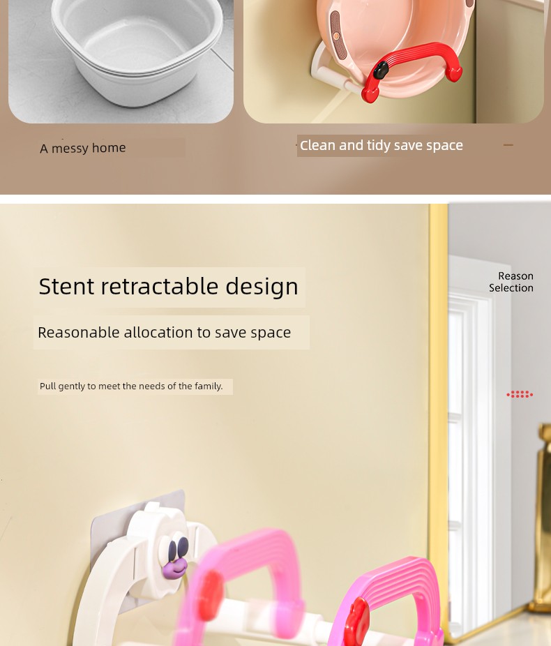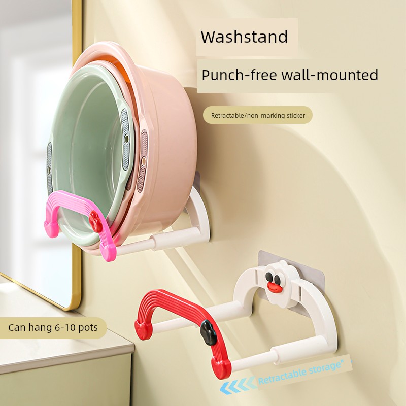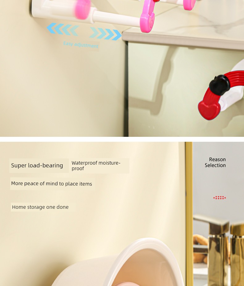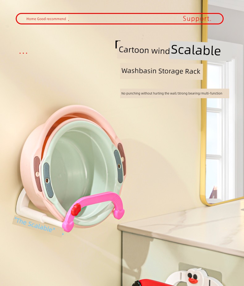 Cream Wall-Mounted Retractable Washstand Punch-Free Bathroom Washbasin Storage Rack Bathroom Storage Rack Rack