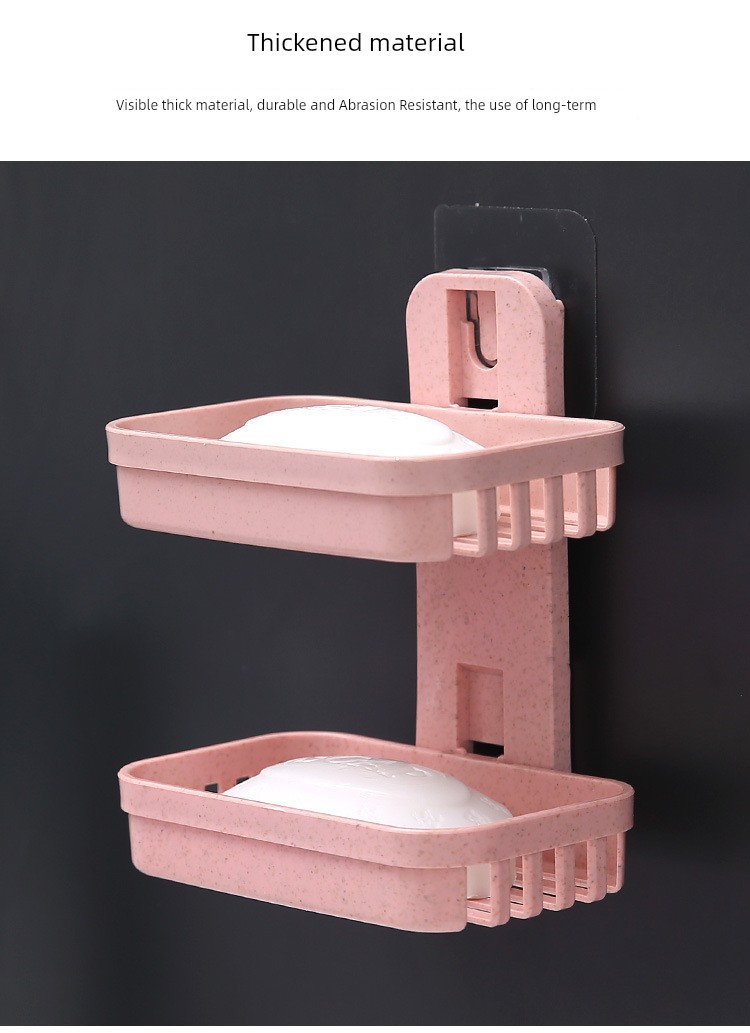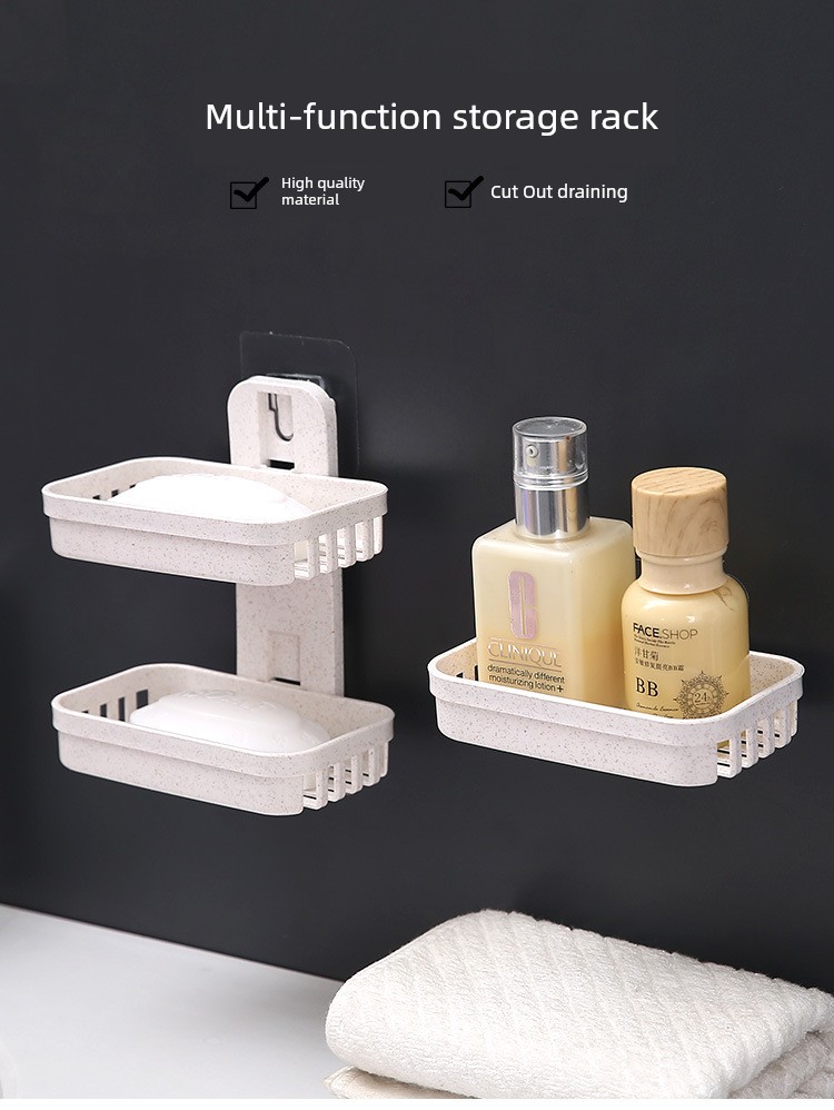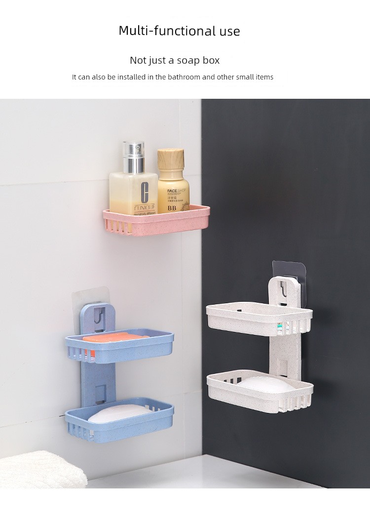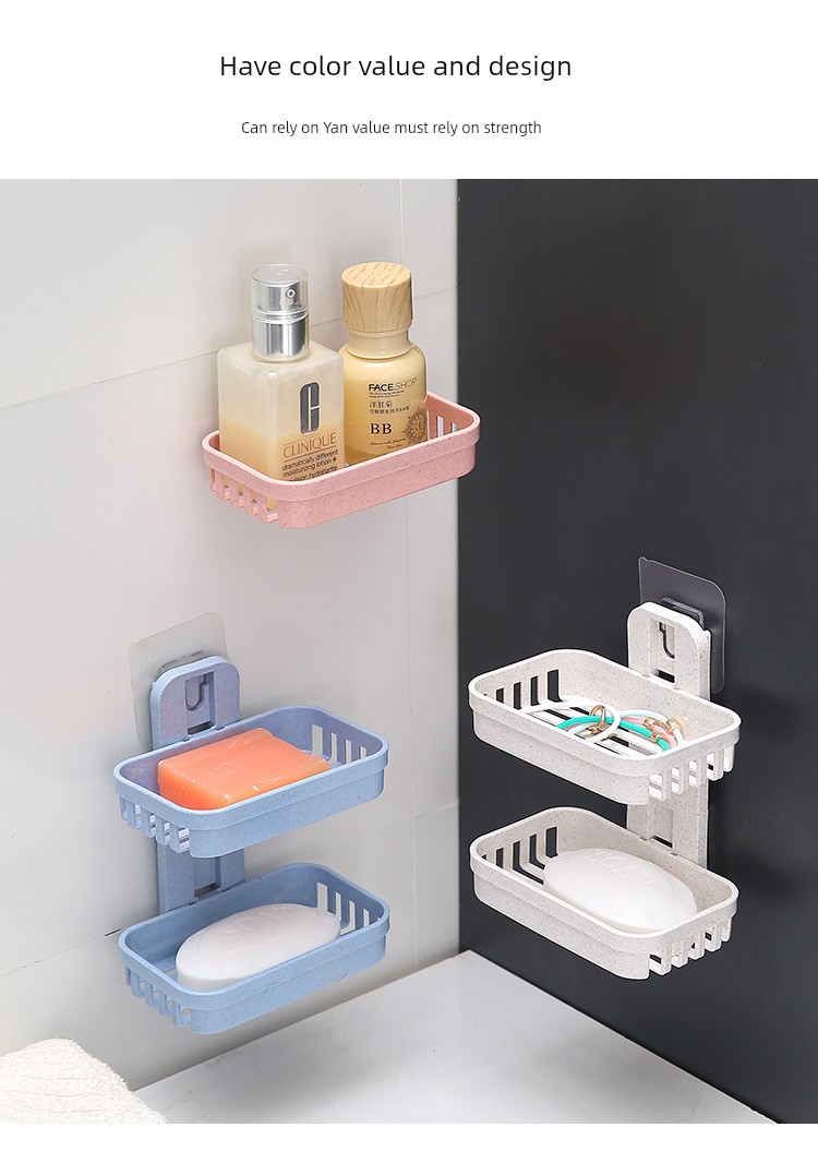 Creative Punch-Free Soap Dish Bathroom Draining Wall-Mounted Soap Box Bathroom Storage Rack Suction Cup Double Layers Soap Holder