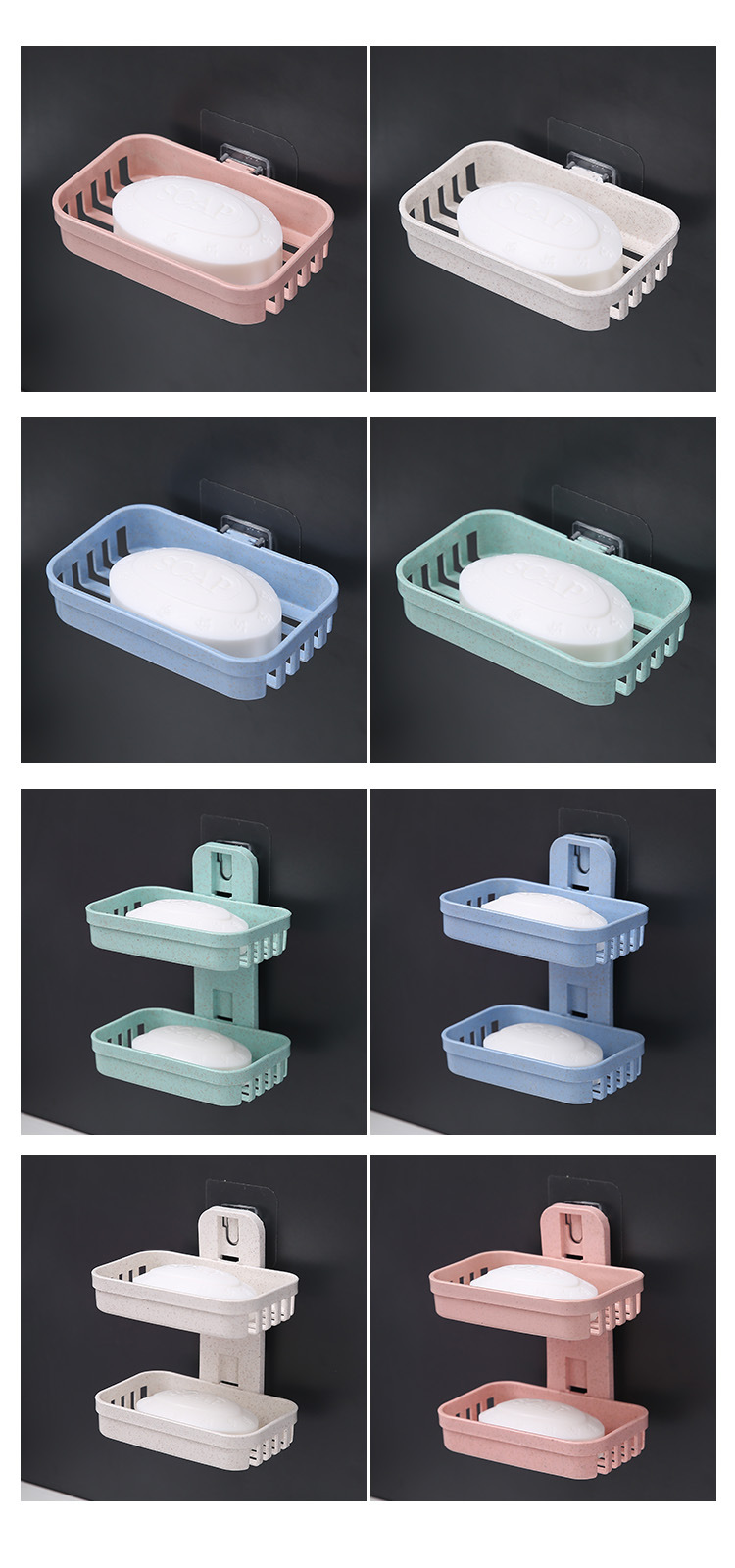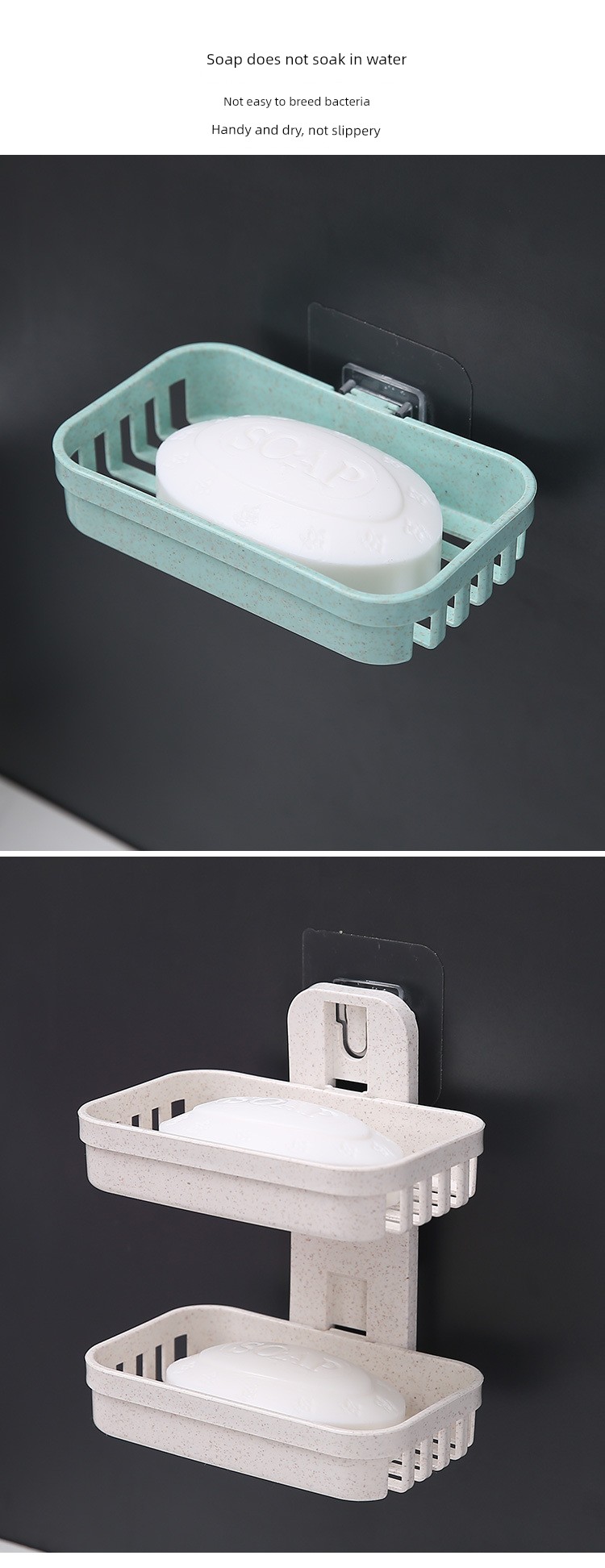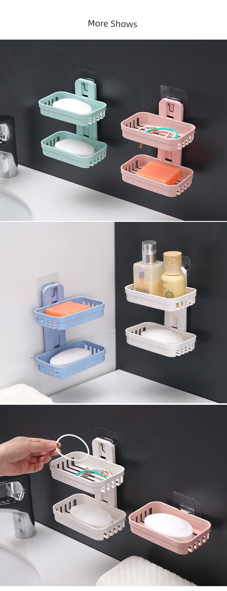 Creative Punch-Free Soap Dish Bathroom Draining Wall-Mounted Soap Box Bathroom Storage Rack Suction Cup Double Layers Soap Holder