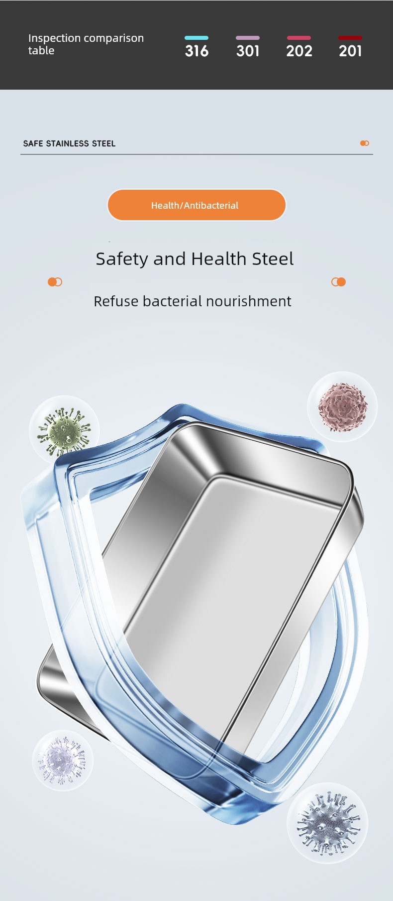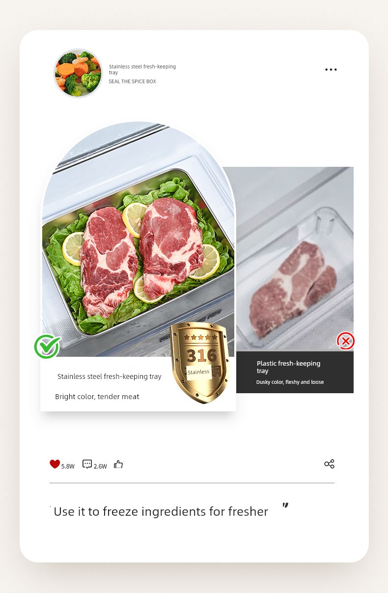 Crisper Dish Tray Rectangular 316 Stainless Steel