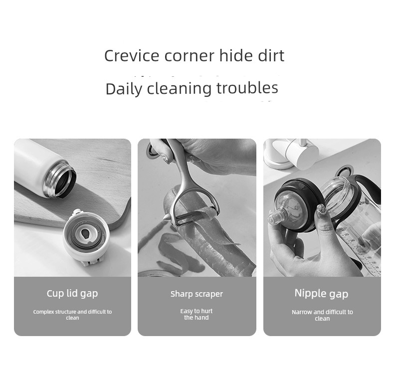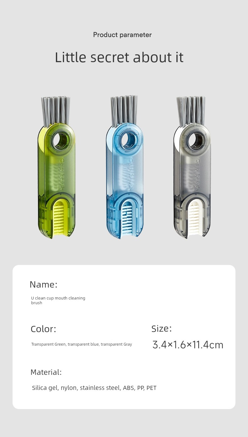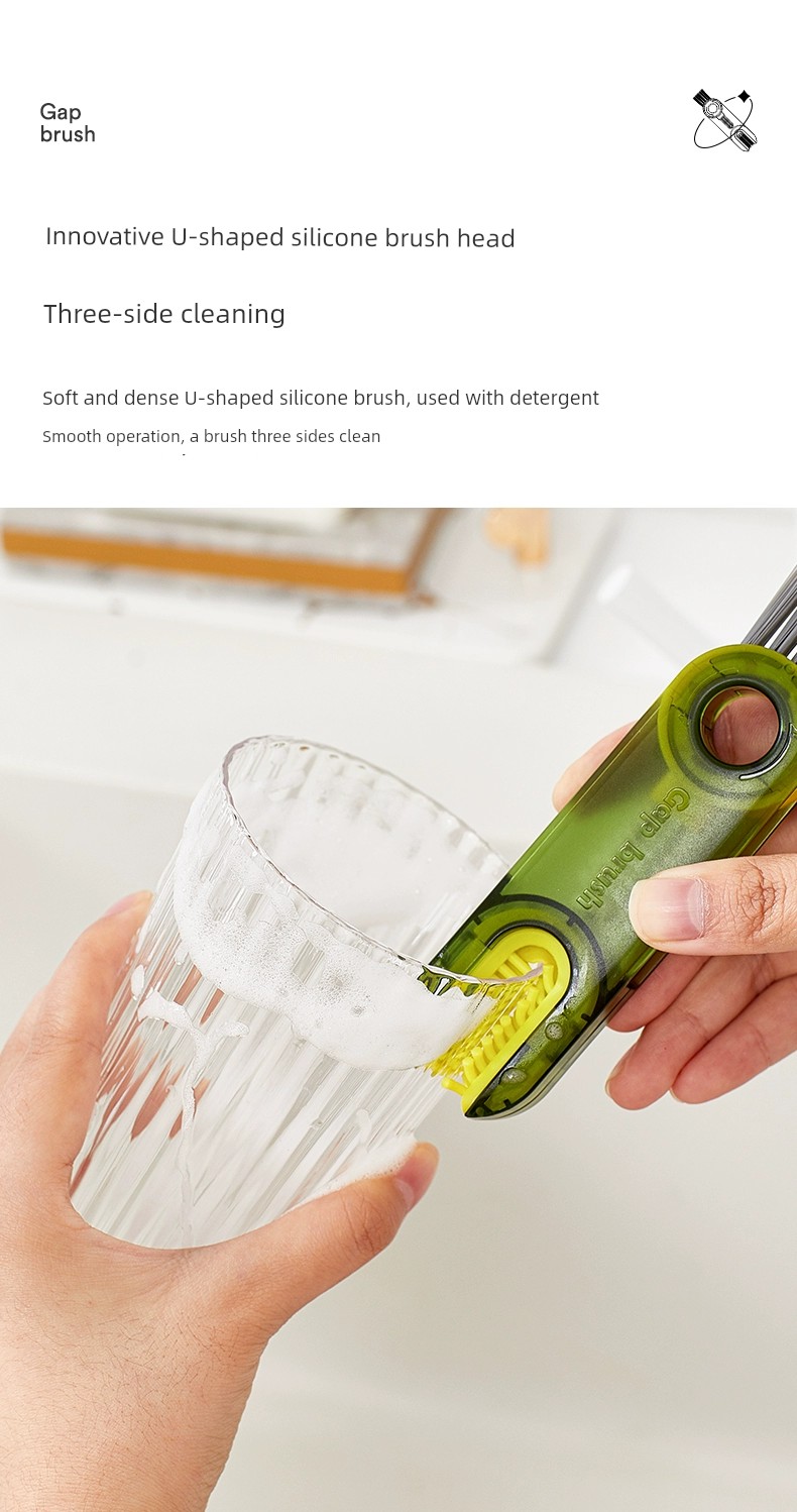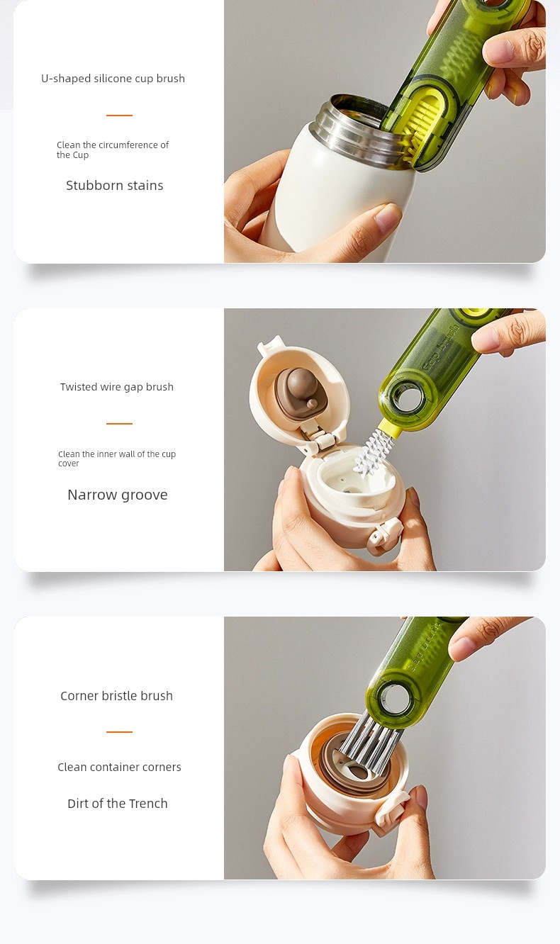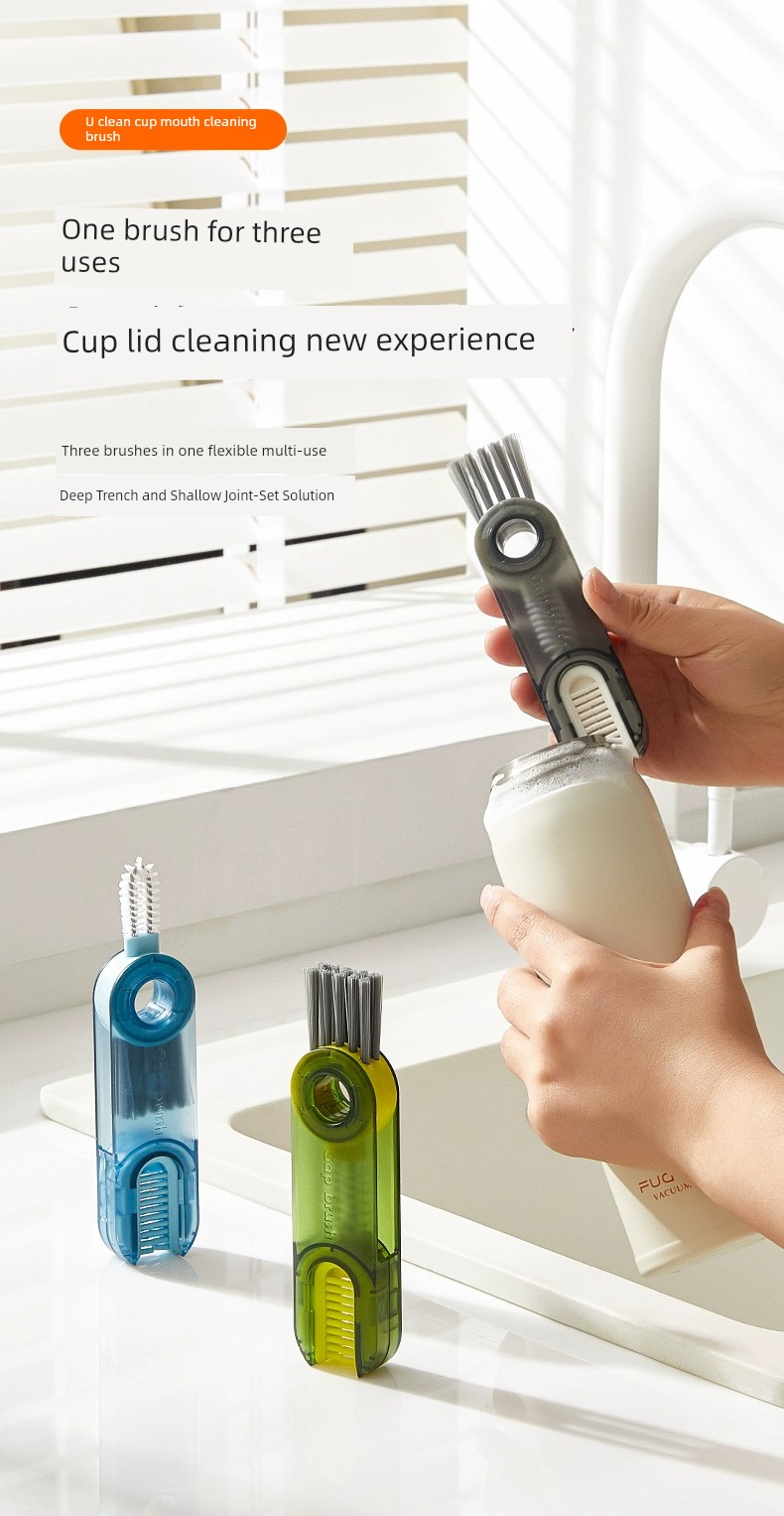 Cup Lid Cleaning Brush Vacuum Cup Gap Three-in-One U-Shaped Cleaning Cup Brush Feeding Bottle Cup Mouth Cleaning Appliance Silicone Brush