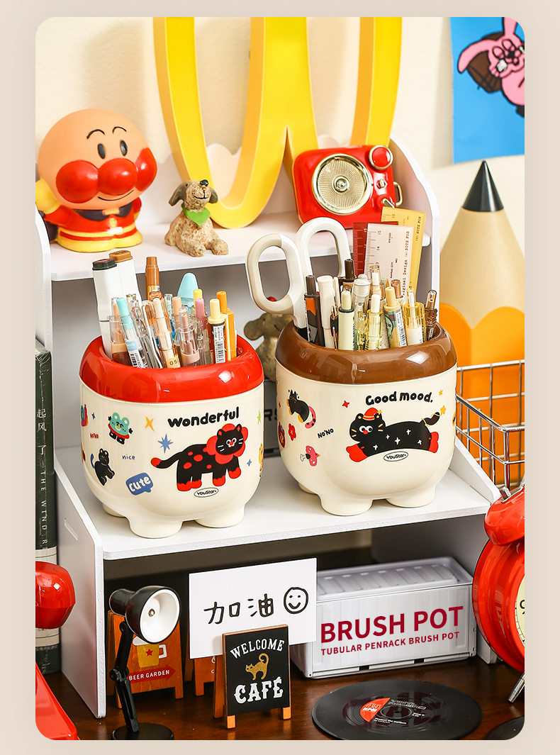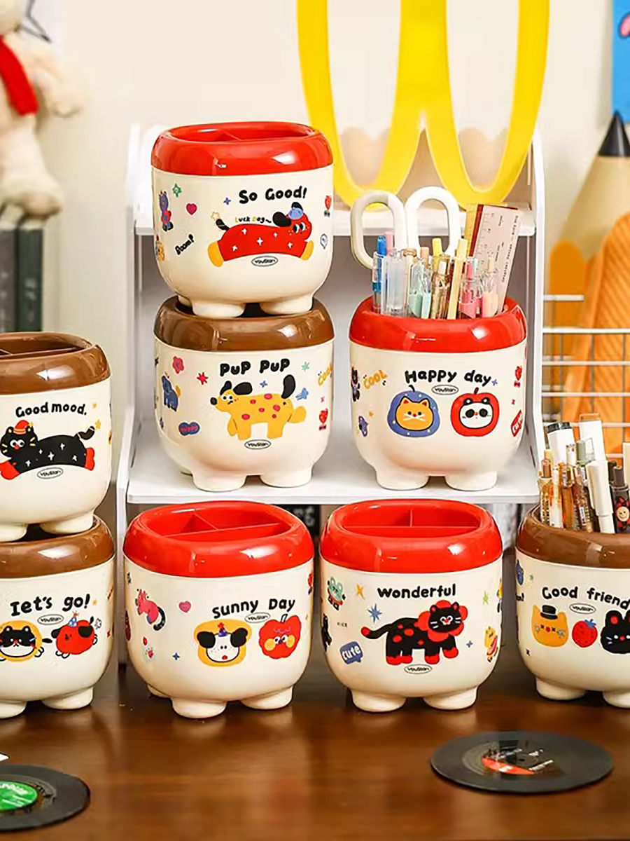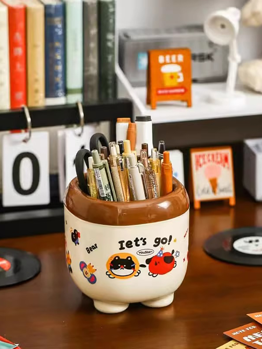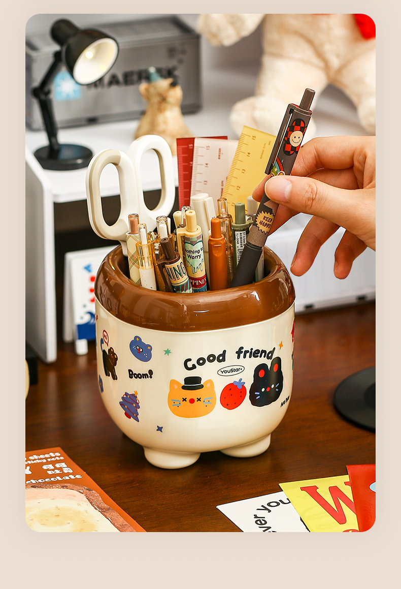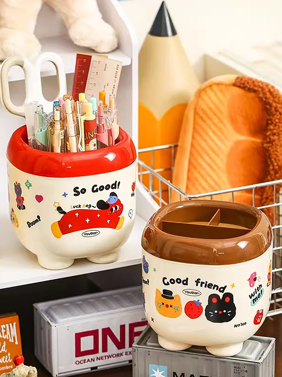Cute Cartoon Pen Holder Large Capacity Office Desk Surface Panel Storage Box Student Accessible Luxury Cultural Supplies Creative Ornaments