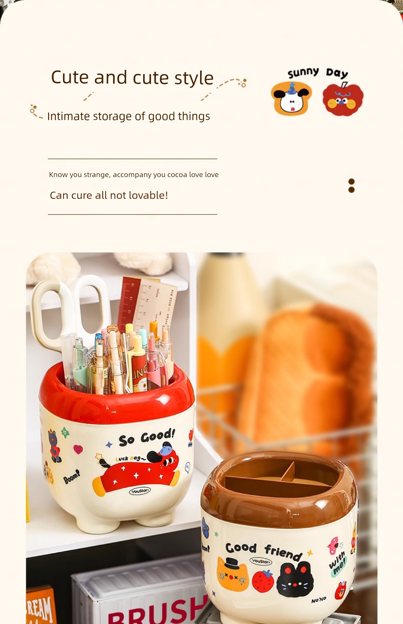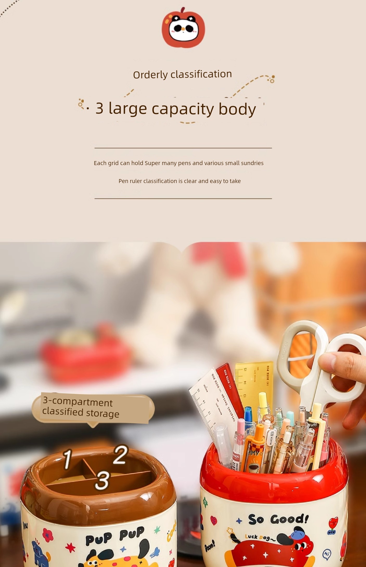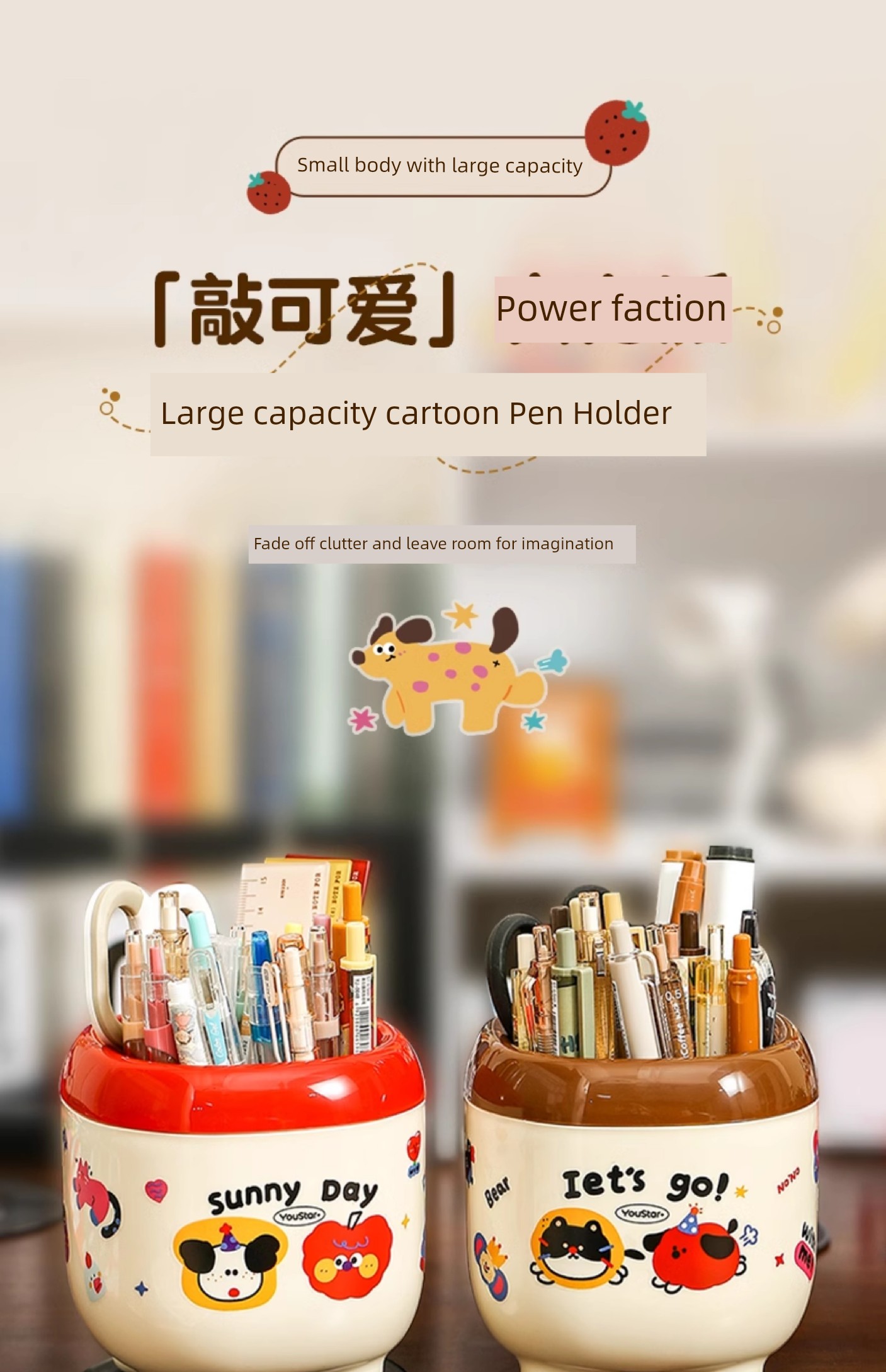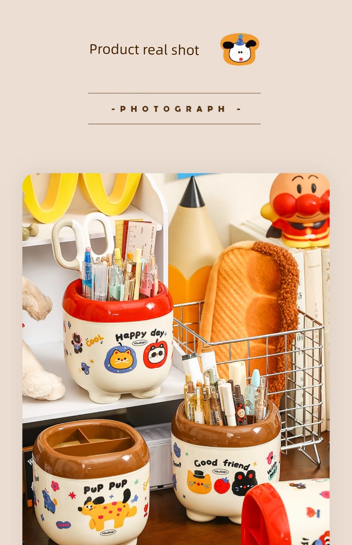 Cute Cartoon Pen Holder Large Capacity Office Desk Surface Panel Storage Box Student Accessible Luxury Cultural Supplies Creative Ornaments