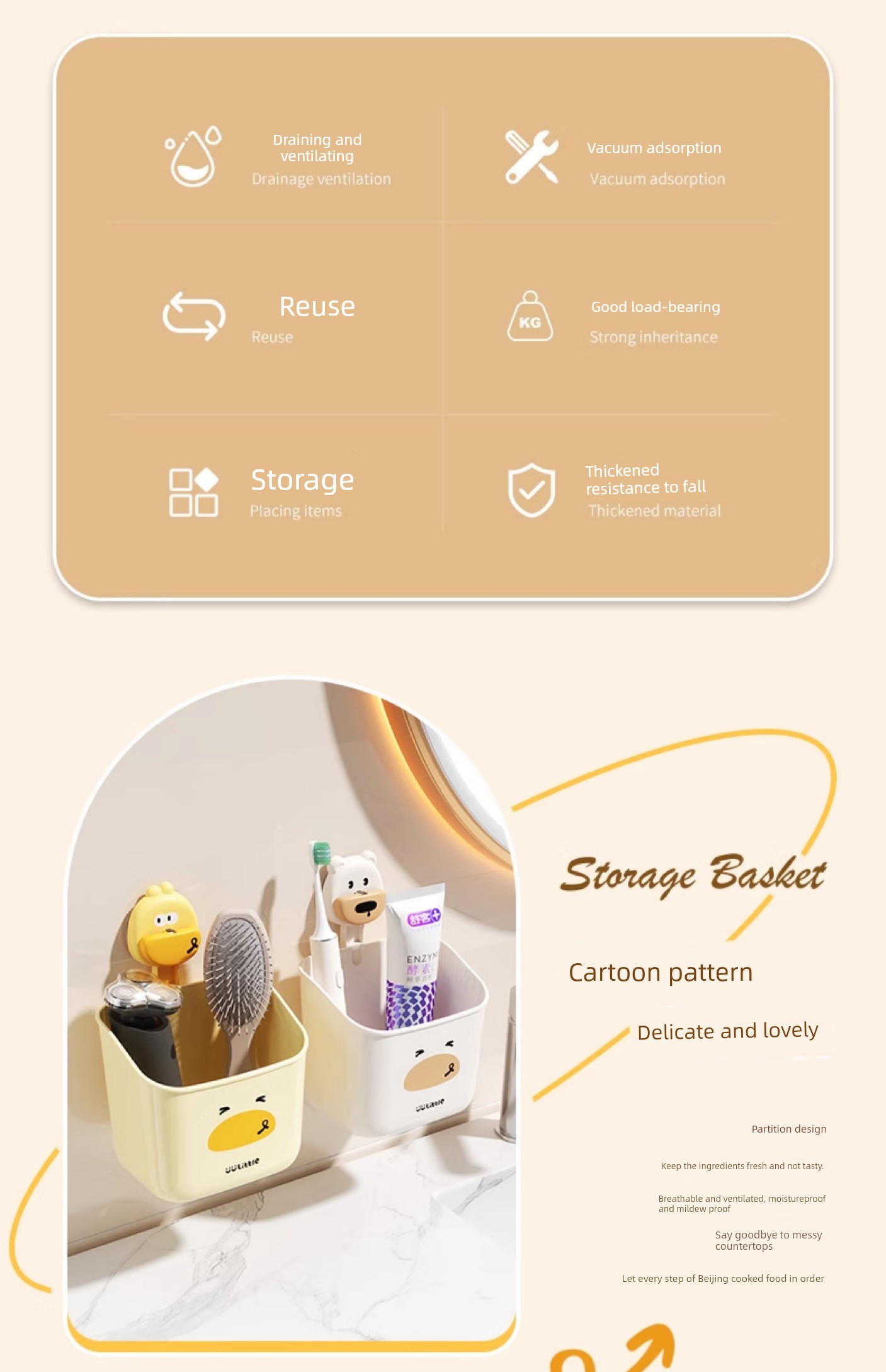 Cute Suction Rack New Arrival Home Storage Appliances Wall-Mounted Punch-Free Good-looking Bathroom Storage Fantastic