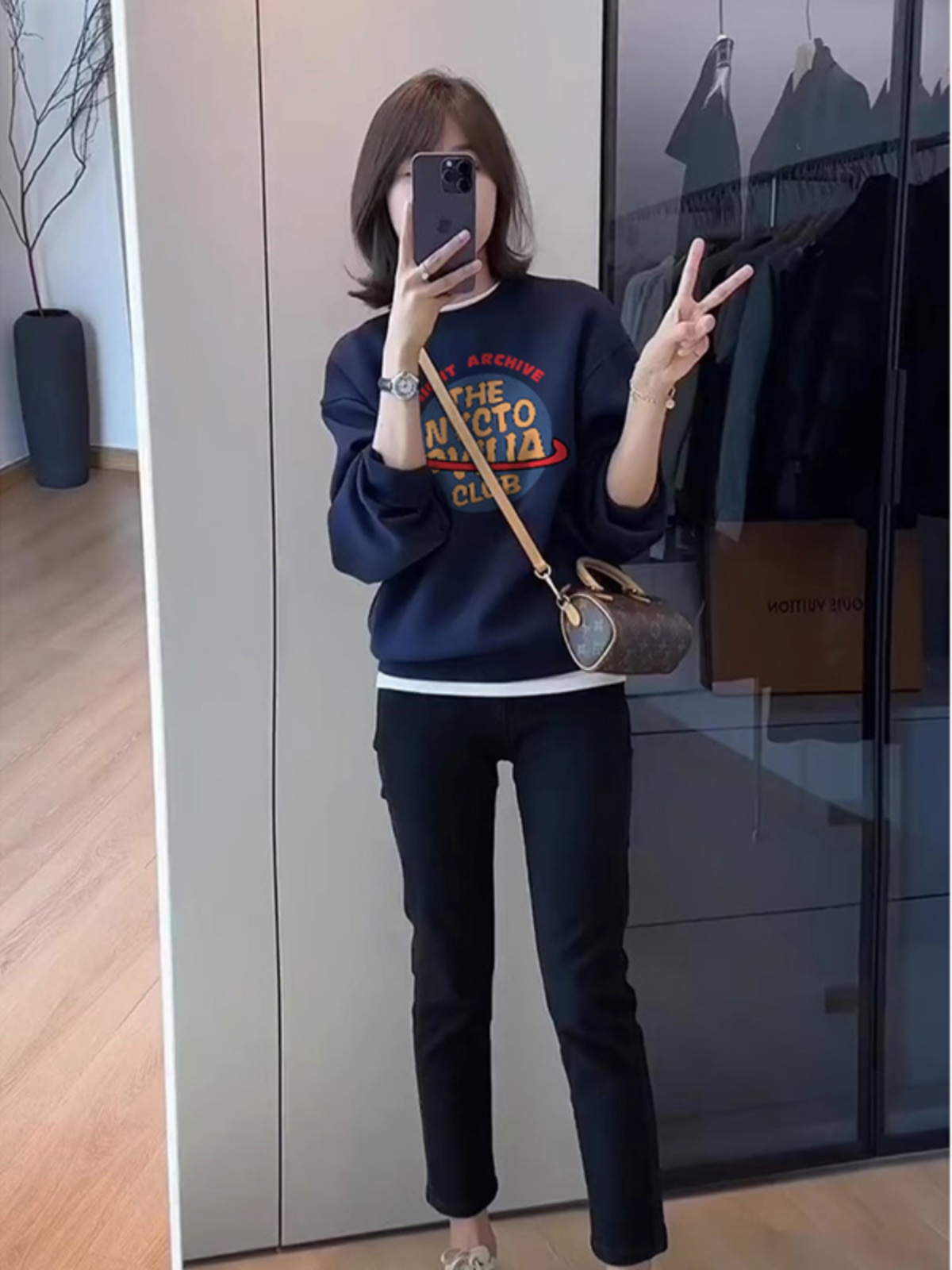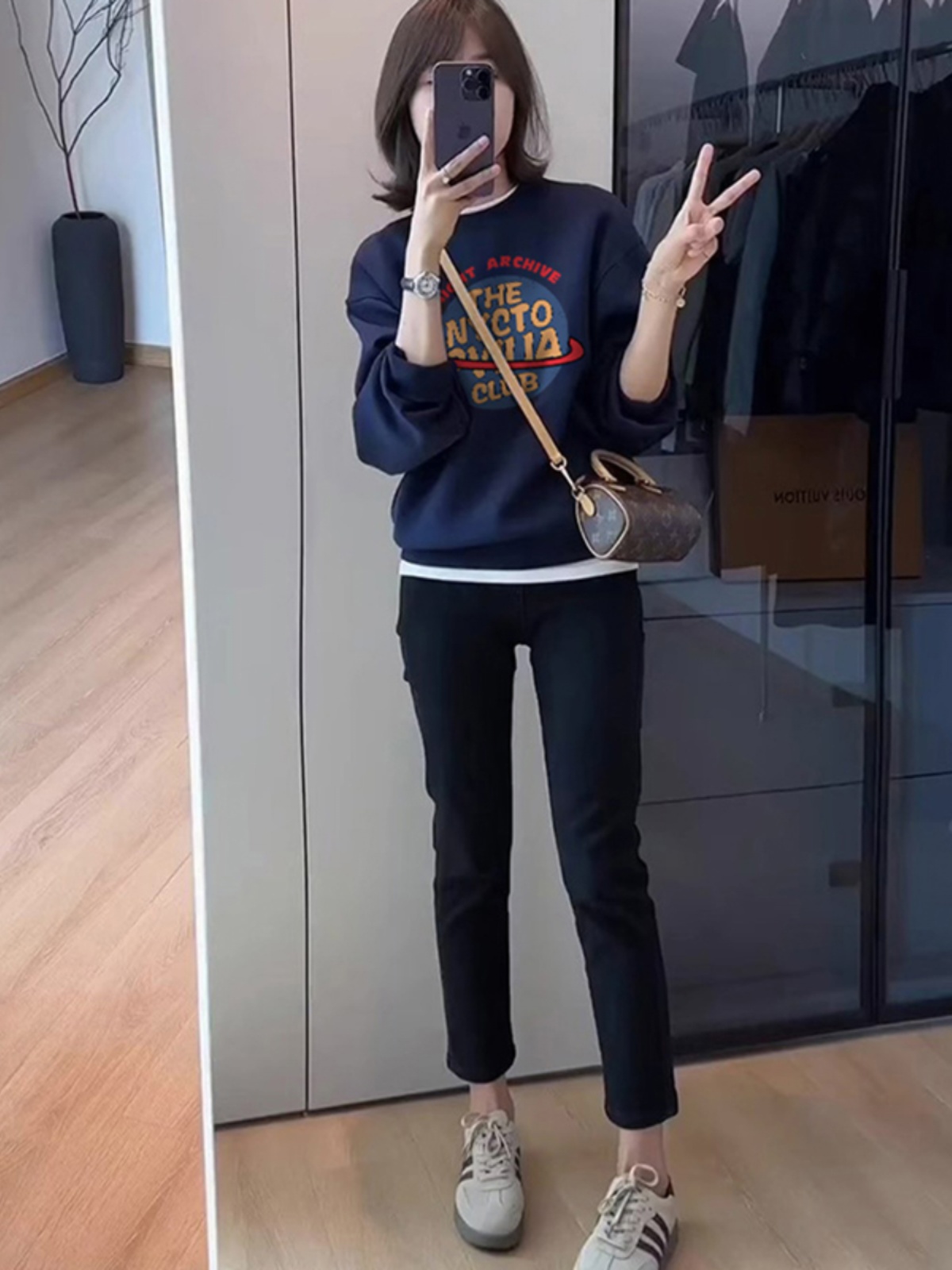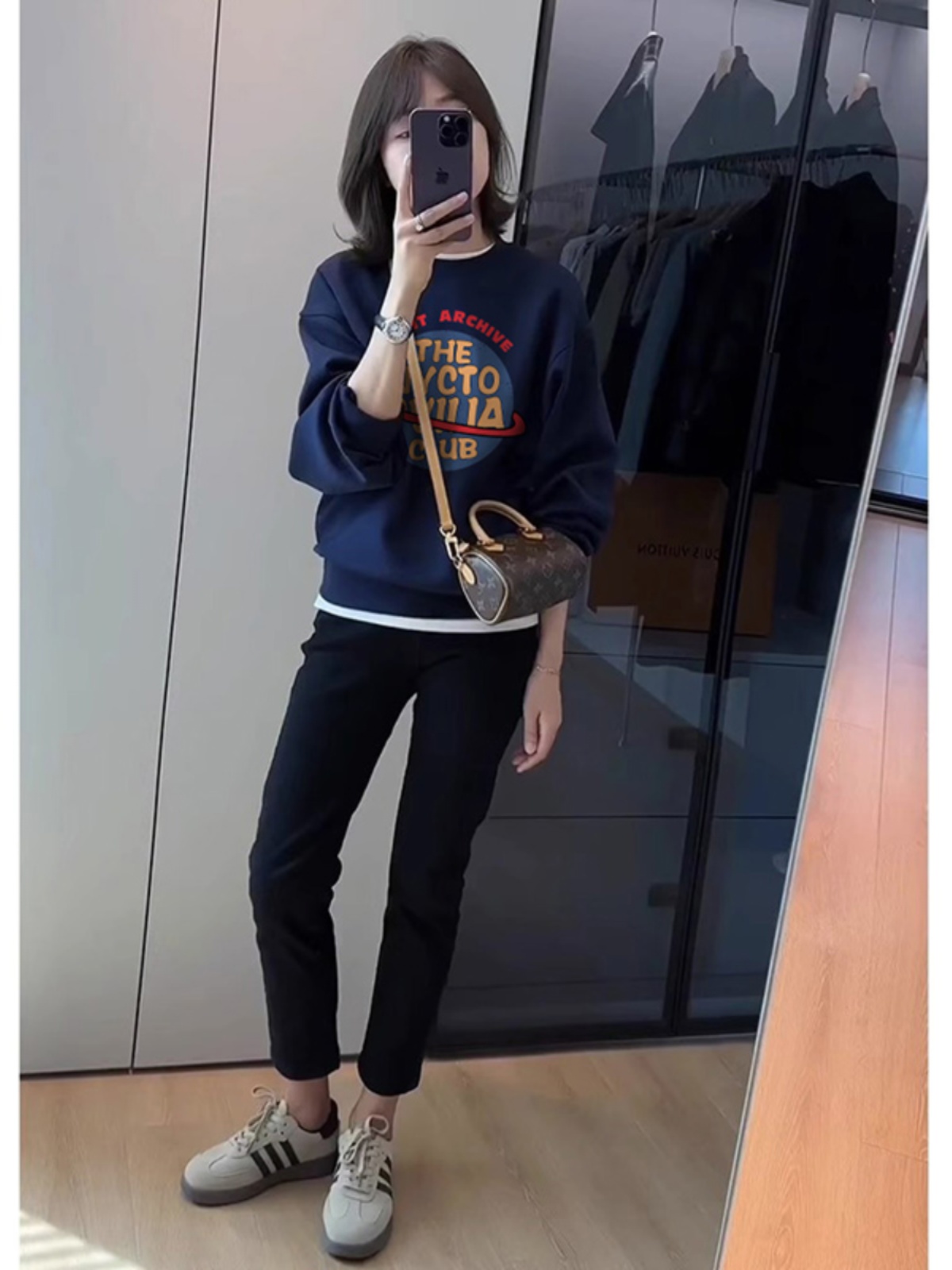 2025 Spring New Arrival: Women's American Vintage Round Neck Print Hoodie - Versatile Creative Letter Design
